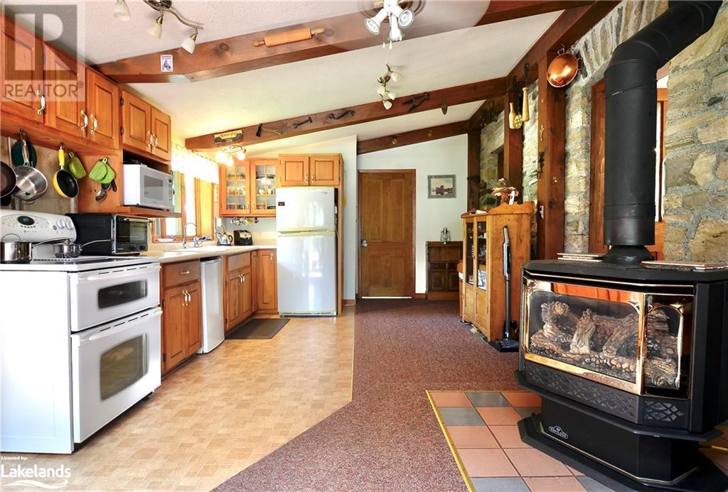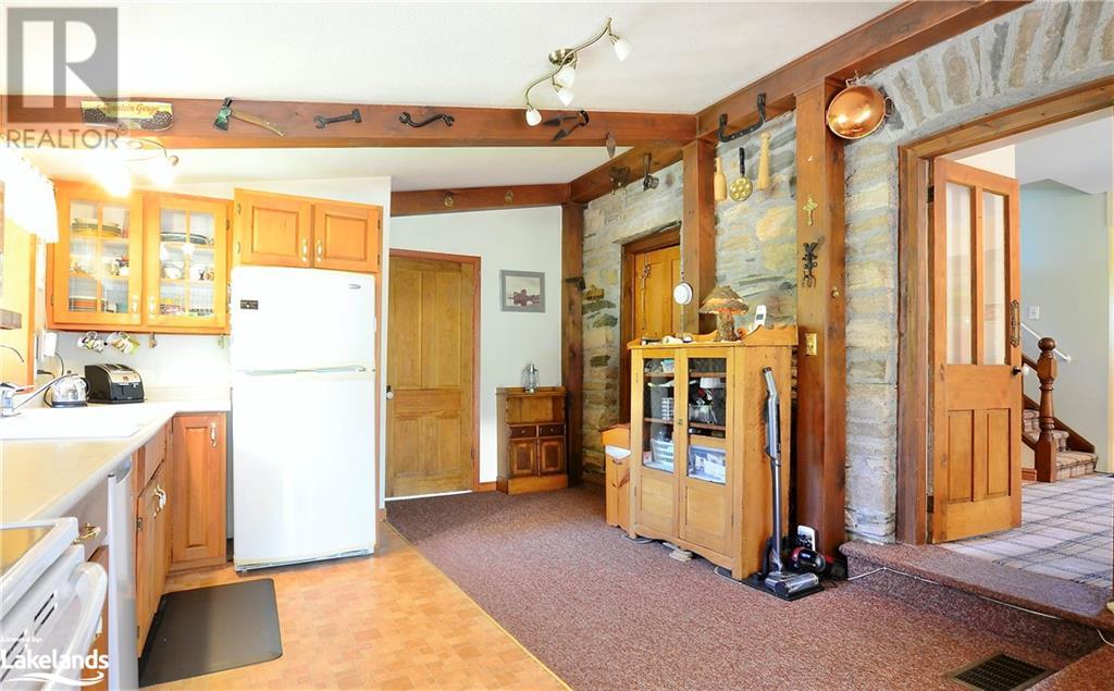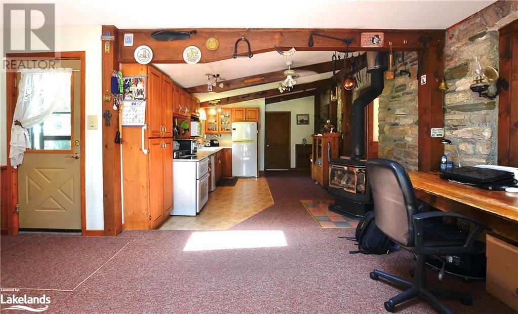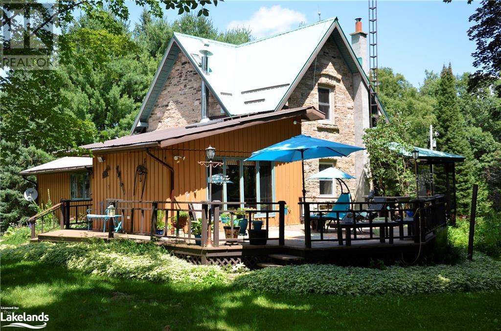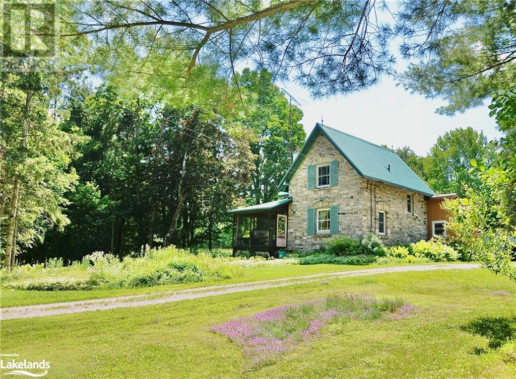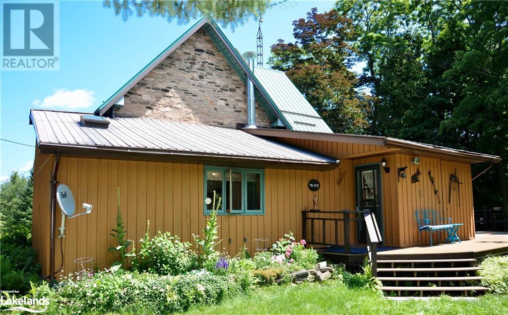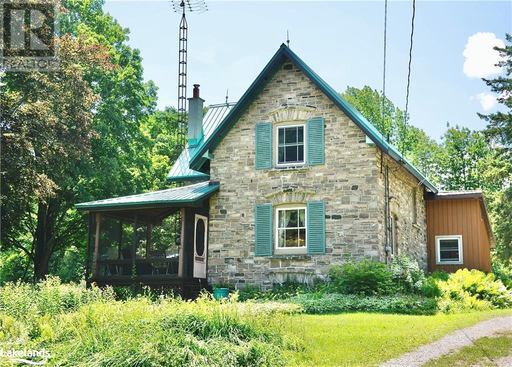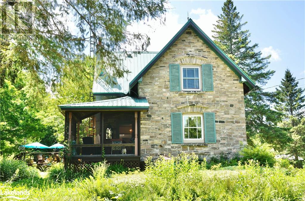 HALIBURTON - As you travel up the private laneway you are greeted by the charming stone farmhouse which was built by the same builder as St. Peter’s Church. Entering through the front door you are immediately captivated by the same stone that surrounds the exterior of the home, wooden beams, bright window with a view of the spacious deck and a large foyer/sitting room highlighted by a propane stove to curl up next to with a good book. The foyer leads you into the spacious kitchen then through to the open concept dining and living room. Finishing off this level is a 3 piece bath which also includes the laundry and an inviting screened in porch to sit and enjoy a glass of wine or play board games on a rainy day. On the second floor you will find two bedrooms, one with a walk-in closet and another 3 piece bath. The property features 792’ of frontage on a year round road, 36.58 acres with possible severance potential, plentiful apple trees that attract deer in the fall, lilac trees, beautiful perennial gardens, open pastures, hardwood bush, trails and your own personal gravel supply. Also included is a detached garage, oversized shed and barn. This whole package is located within 5kms of many lakes with public boat launches, great restaurants and convenience store/LCBO outlet for the essentials. Book your appointment today to view this stunning property. (id:22211)