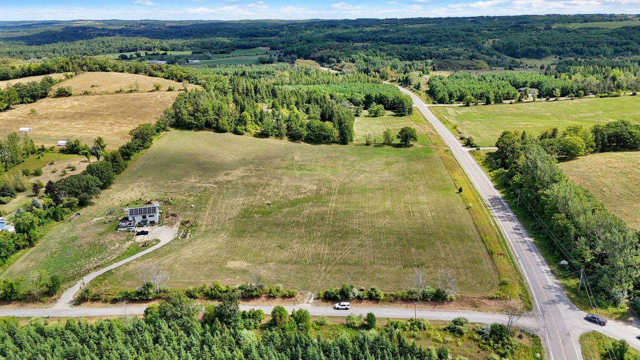 Click on video button to watch fabulous drone video. With frontage on Goose Creek Rd and Rice Lake Scenic Drive, this is a rare 17.44-acre parcel offering panoramic views of Rice Lake and the rolling Northumberland countryside. This exceptional property combines accessibility with privacy. Goose Creek Road is a small enclave of private upscale homes. A large portion of the land has been professionally cleared and prepped for your dream build, complete with a temporary construction entrance, site plan, septic and entry permits already in place. Drafted bungalow plans available as well. Approximately 12 acres are currently rented to a local farmer for hay, ensuring low-maintenance land stewardship while you plan your future home. Mature pines and a gently elevated building site ensure year-round scenic vistas and a tranquil, private setting ideal for peaceful country living. Just 15 minutes north of Cobourg and an easy commute to the GTA or Peterborough, this is a big, beautiful piece of land where you can create the lifestyle you've always imagined. Be sure to watch the spectacular drone video to fully appreciate this one-of-a-kind offering.