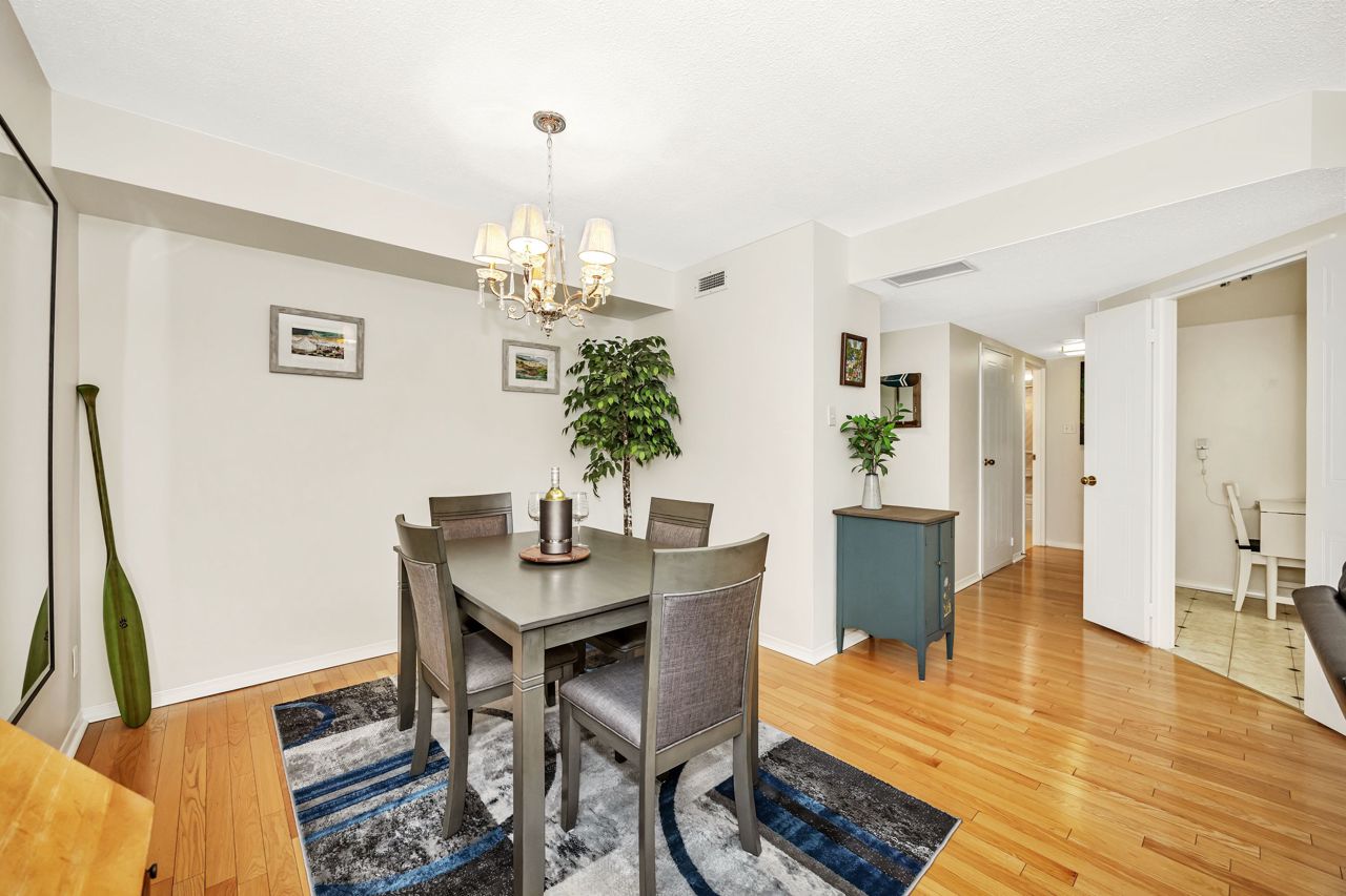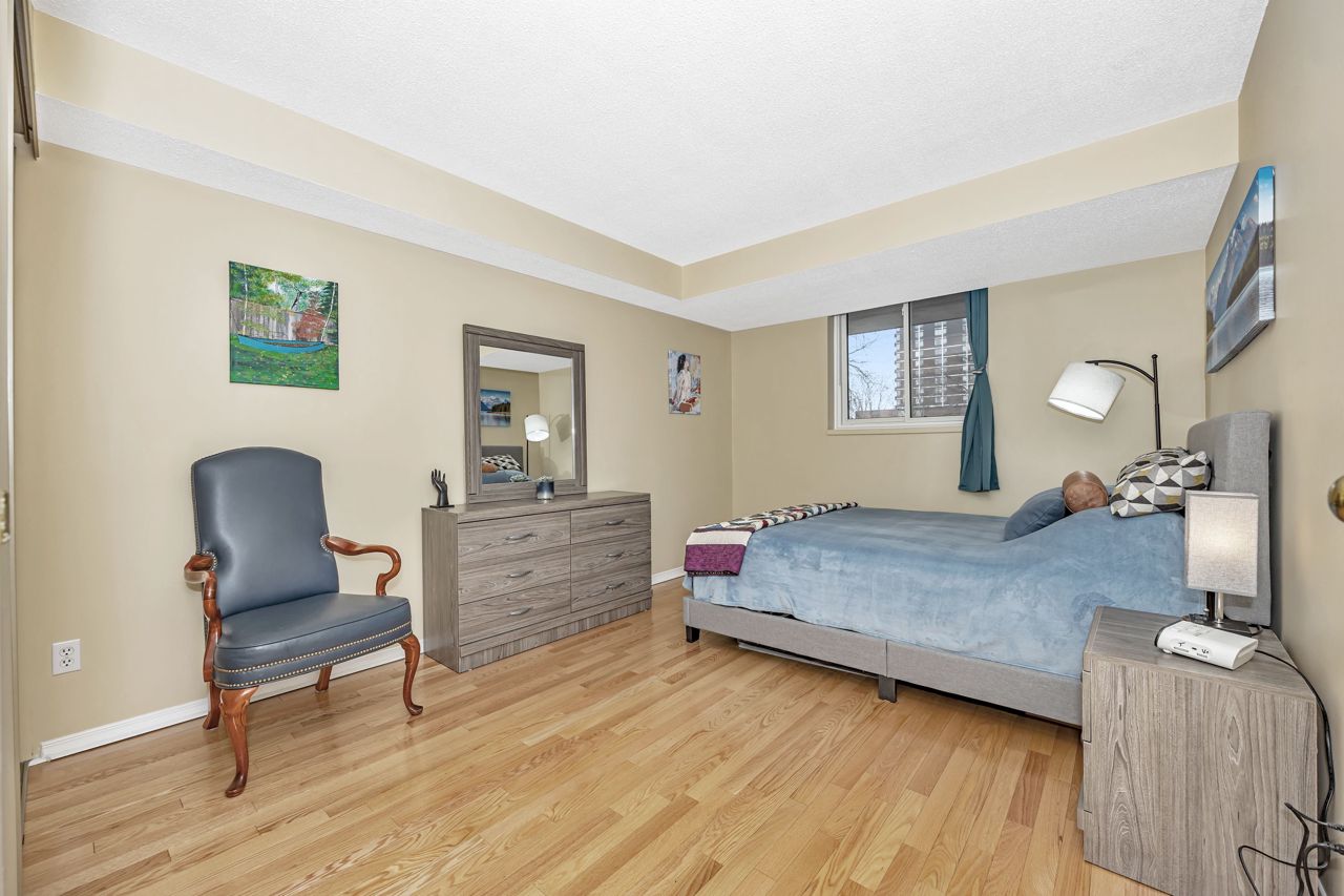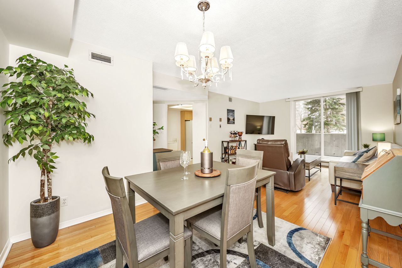 This rarely offered 1-bedroom, 1-bathroom condo offers convenience and comfort in an unbeatable location. Situated within walking distance to The Ottawa Hospital General Campus and CHEO, it's perfectly positioned near parks, transit, and a serene walking trail. Located on the main floor of a secure, meticulously maintained building, this unit features a raised open balcony overlooking a fenced green space, exclusive to Vista on the Park owners, providing ample natural light indoors and bright sunshine outdoors. The condo boasts gleaming oak hardwood floors, an open-concept living and dining area, and a spacious kitchen with abundant storage, ideal for downsizers or professionals seeking a stylish yet functional home.The generously sized primary bedroom includes ample closet space and a large window, across from a 4-piece main bathroom and conveniently situated near the in-suite laundry. Additional conveniences include underground heated parking and a storage locker. Enjoy an array of amenities, including a gym, yoga studio, saunas, BBQ area, library, and workshop, making it easy to embrace a well-rounded lifestyle. Condo fees cover central air, water, and concierge services, adding to the ease of ownership. Don't miss this exceptional opportunity!