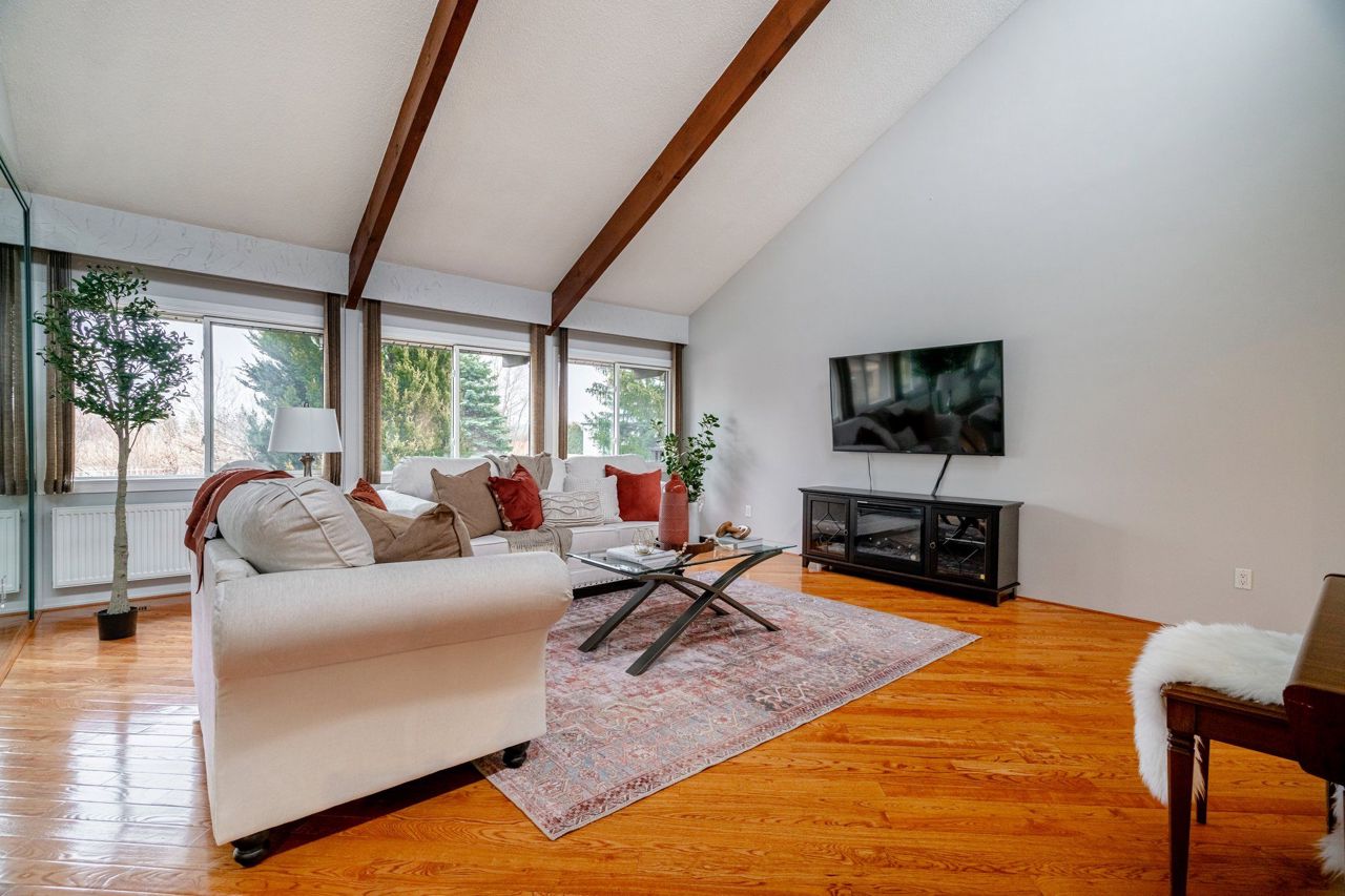 Hardwood Floor O/Looks Backyard Vaulted Ceiling