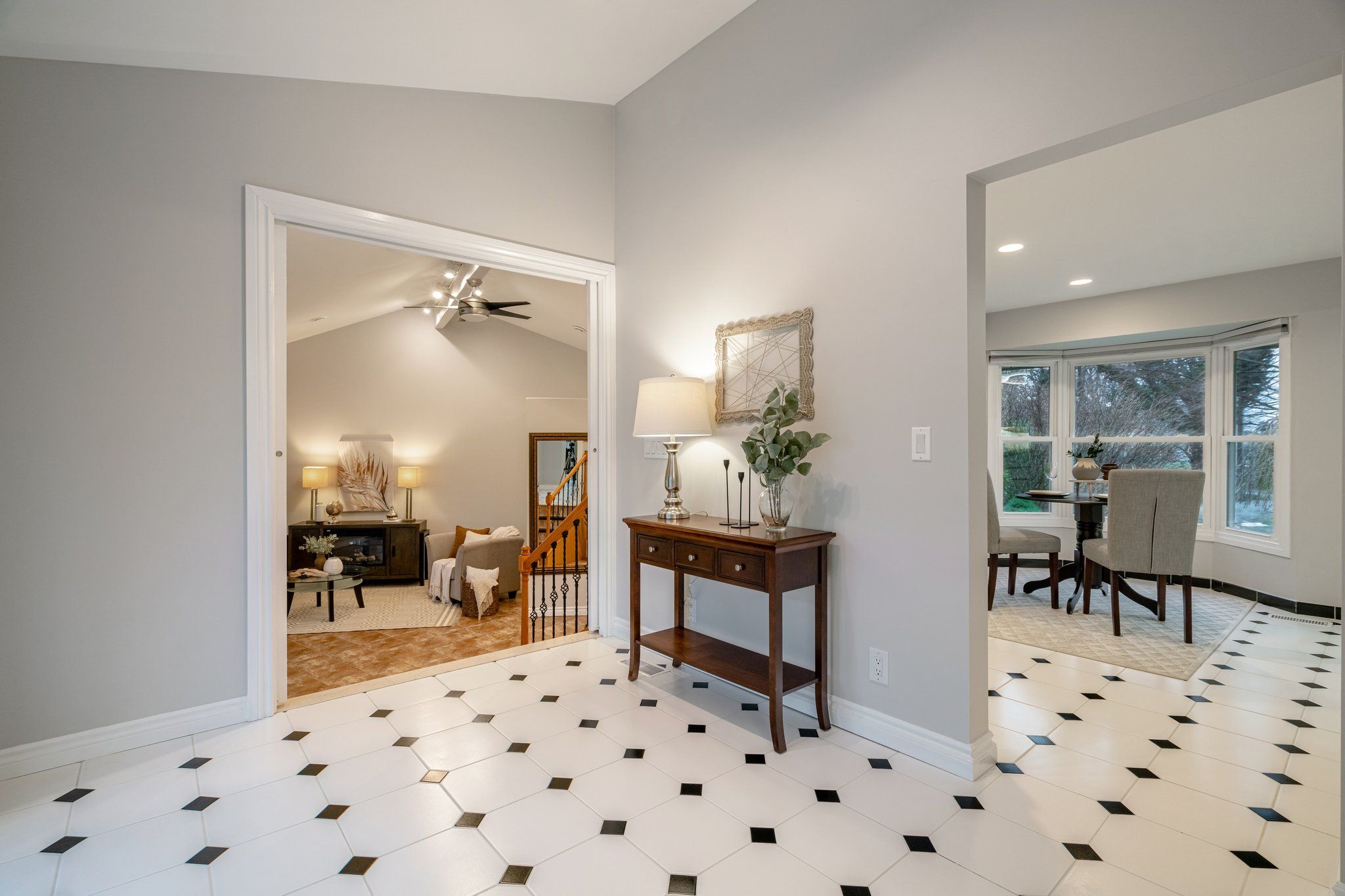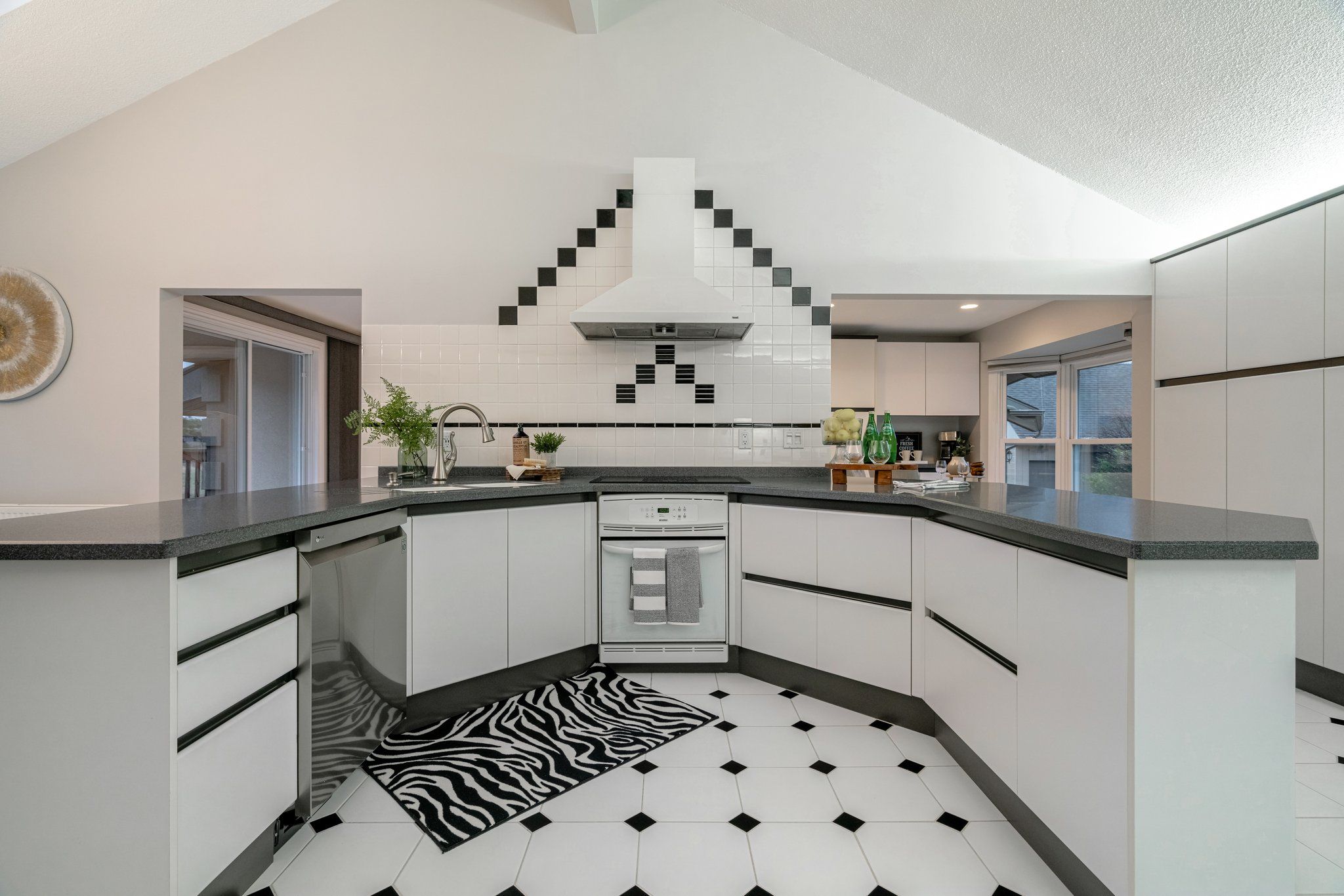 Ceramic Floor O/Looks Frontyard Vaulted Ceiling