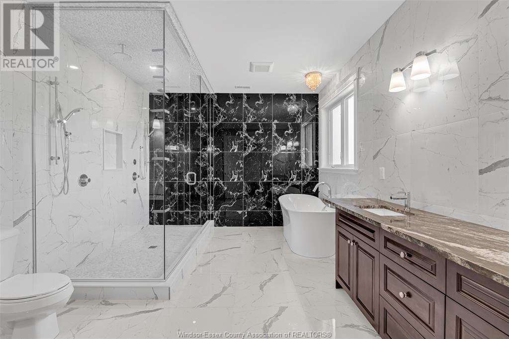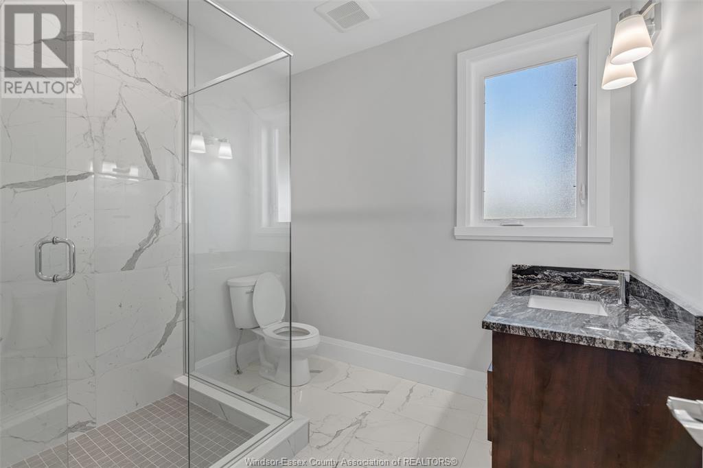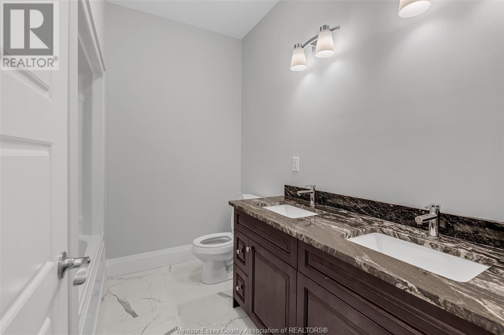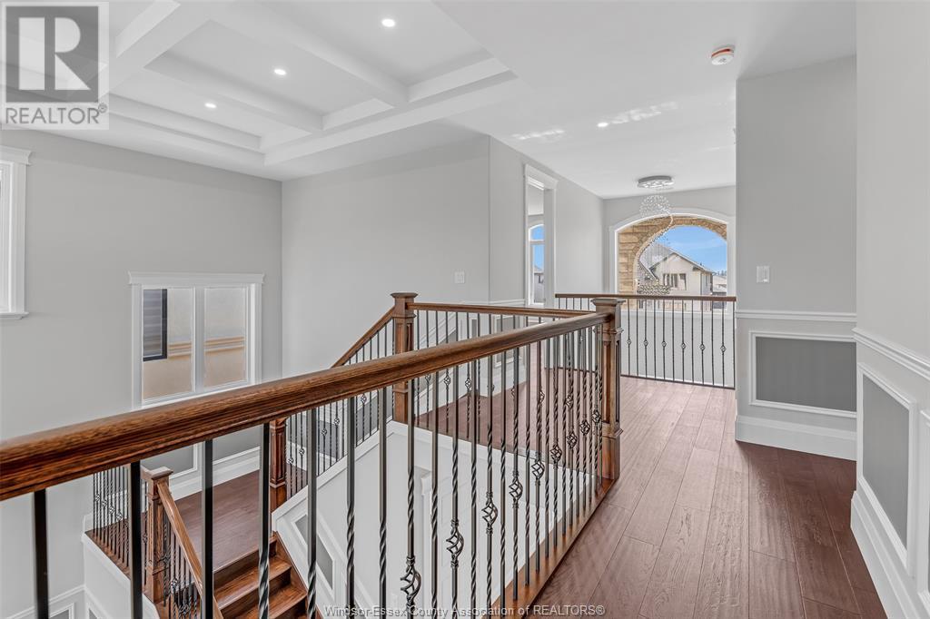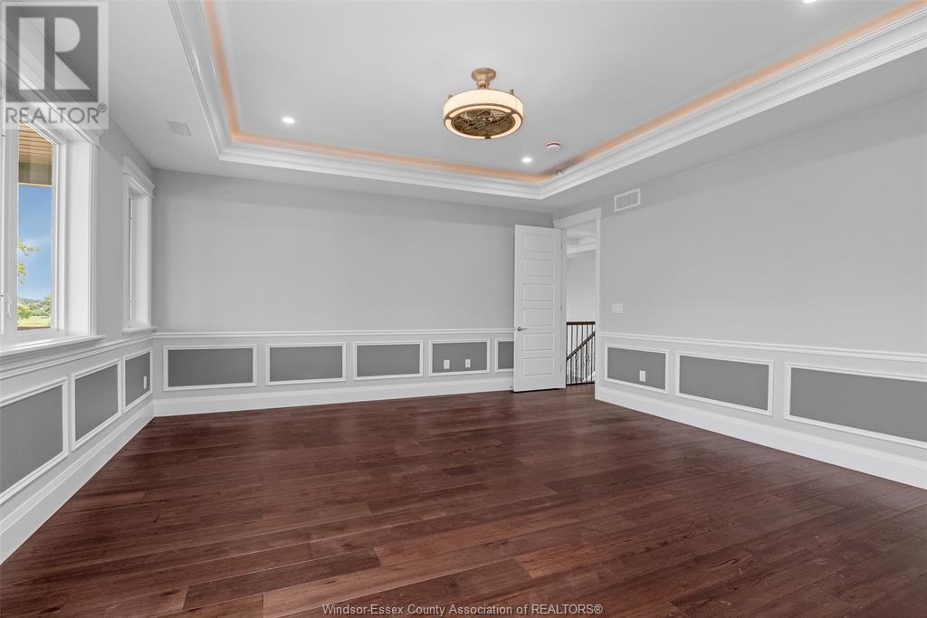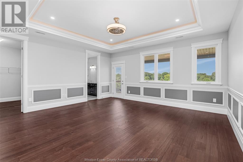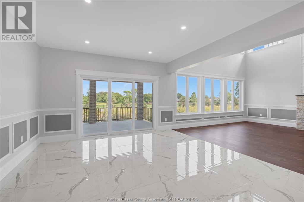MUST SEE ABSOLUTELY STUNNING HOME IN A PRESTIGIOUS NEIGHBOURHOOD IN AMHERSTBURG. THIS BEAUTY OFFERS HIGH END FINISHES SUCH AS; 9FT CEILINGS ALL AROUND, HARDWOOD FLOORING & WAINSCOTTING THROUGHOUT THE HOME. THE MAIN FLOOR INCLUDES SPACIOUS 26FT CEILING LIVING ROOM, BEDROOM/OFFICE SPACE, OPEN CONCEPT DINING ROOM WITH ACCESS TO THE BACK, AND KITCHEN WITH GRANITE COUNTER TOPS, HUGE CENTRE ISLAND & A PANTRY. THE UPPER LEVEL INCLUDES A A MASTER SUITE W/ PRIVATE BALCONY, WALK IN CLOSET & 6 PCS ENSUITE, PRIMARY BEDROOM W/ WALK IN CLOSETS AND 6 PCS ENSUITE + 2 SPACIOUS BEDROOMS, 4 PCS BATH & LAUNDRY ROOM. THE LOWER LEVEL FRAMING AND INSULATION DONE, COULD BE CUSTOMIZED TO YOUR LIKING WITH SEPARATE GRADE ENTRANCE, INSIDE ENTRY TO 3 CAR GARAGE. PROPERTY BACKING ON GOLF COURSE. (id:22211)