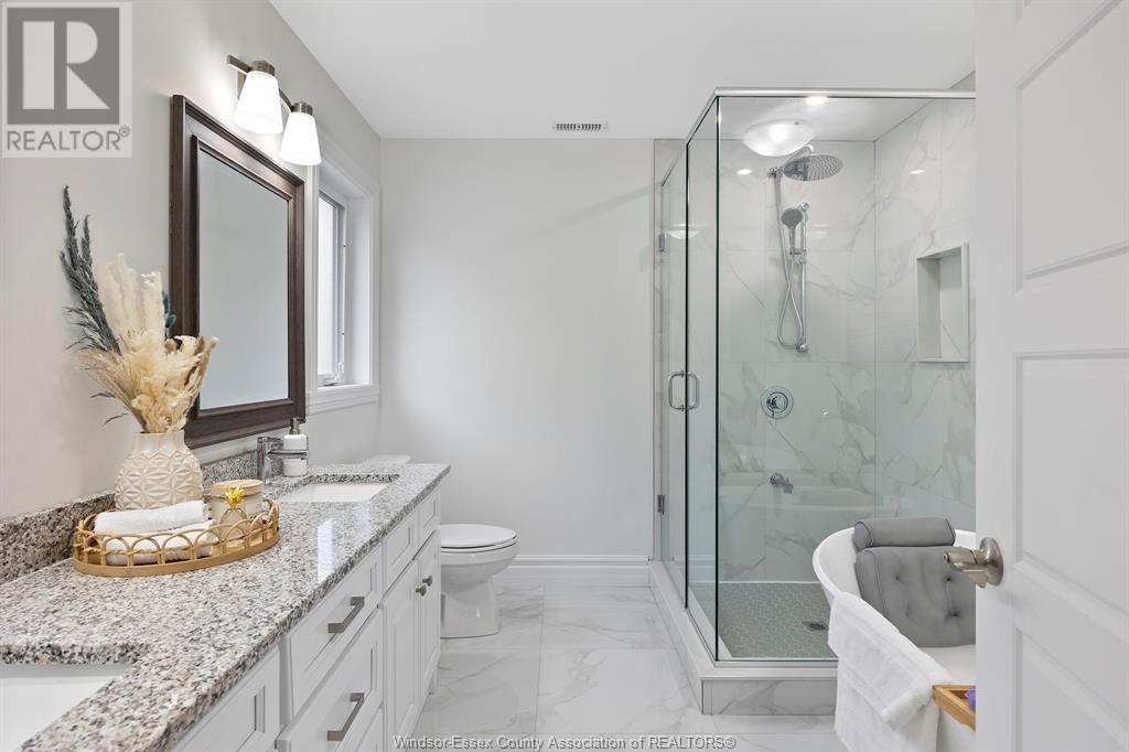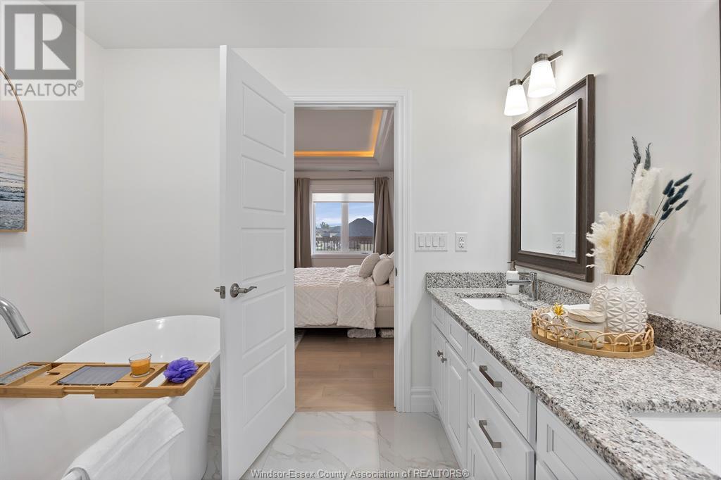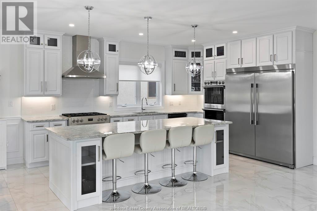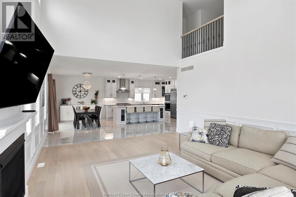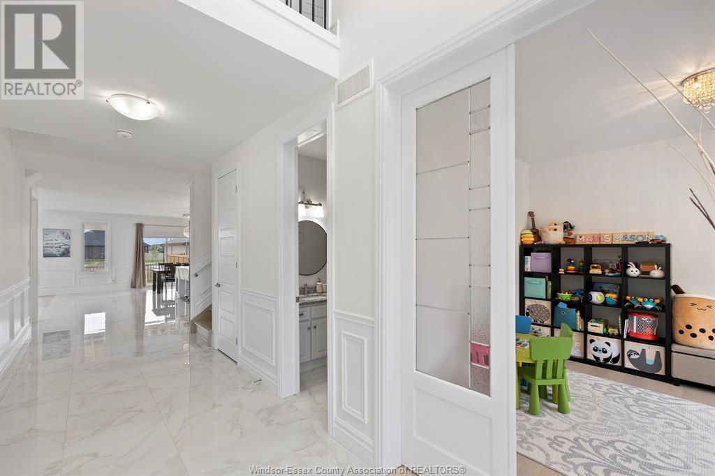 Excellent opportunity to move into this spacious turn key home situated on huge corner lot in popular Kingsbridge of Amherstburg. Loaded to the Nines, this home features an open concept floor plan with soaring ceilings, custom trim and superb finishes. Massive kitchen with huge island and stainless steel appliances, grand great room with loads of windows and natural light. Mudroom with side entrance and main level den. 4 large bedrooms on 2nd level, 2 with ensuite baths, luxurious primary suite with custom ceiling detail and west facing balcony. Open to below views make this home feel very inviting. Partly finished basement includes walk out grade entrance, 3 pc bath and large windows. Complete exterior with concrete side driveway leading to 3 car garage, raised back patio off kitchen and fully sodded lot. Lots of value here for your money. (id:22211)