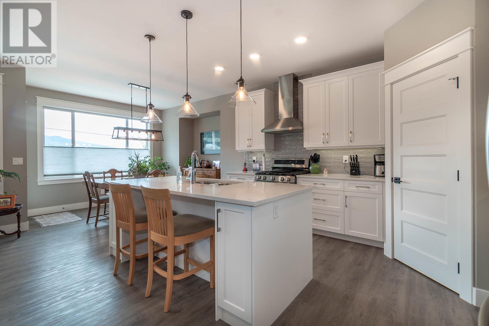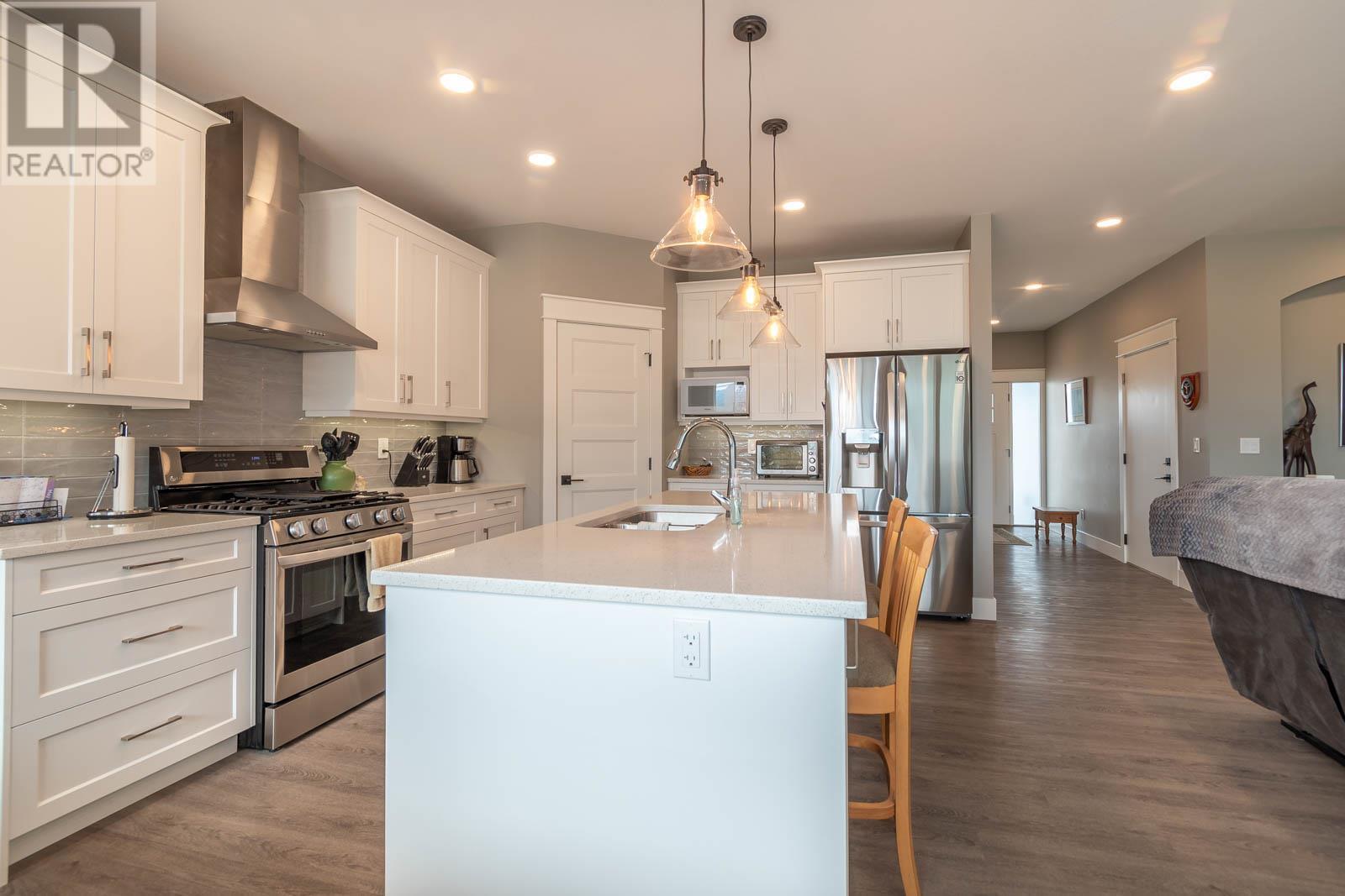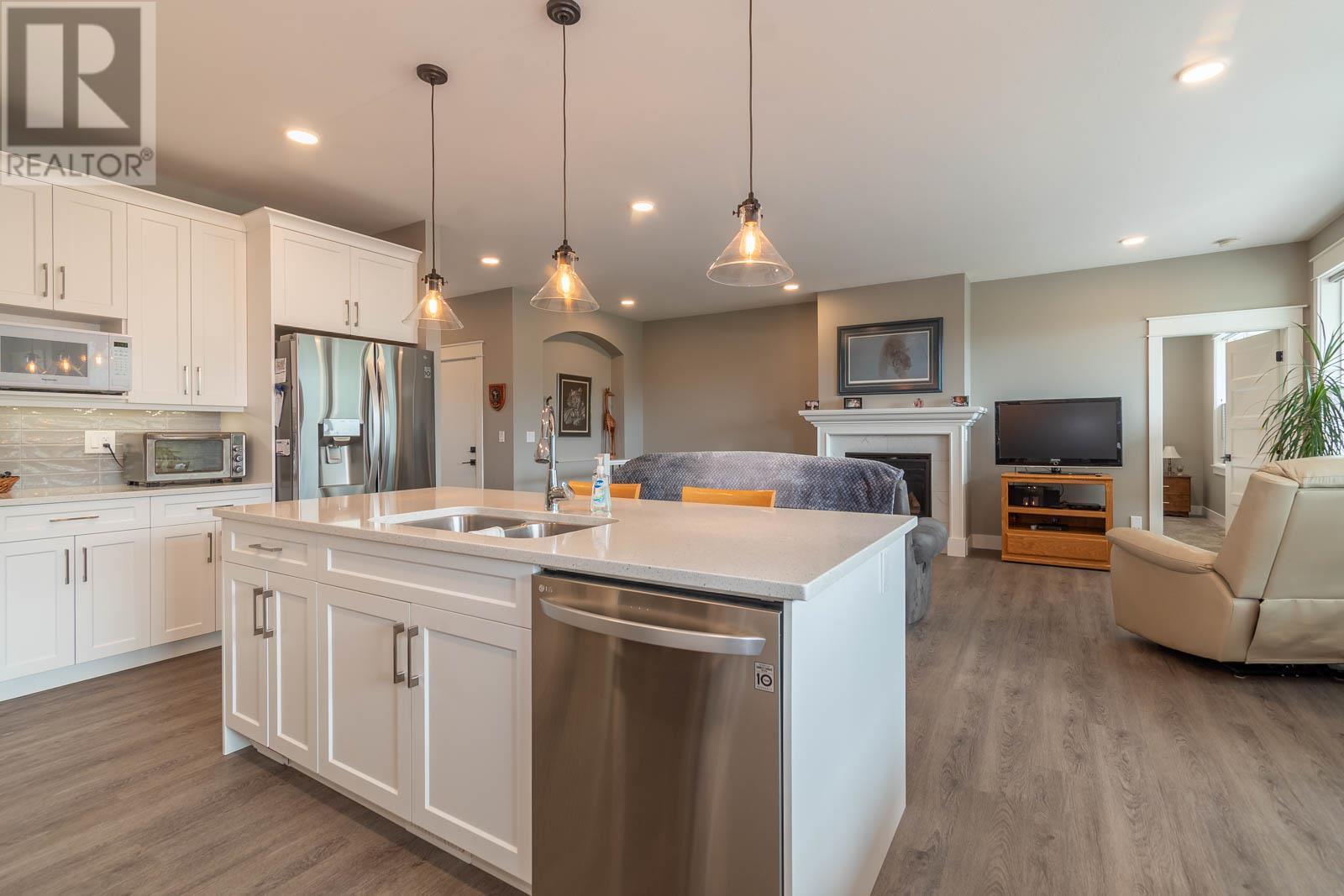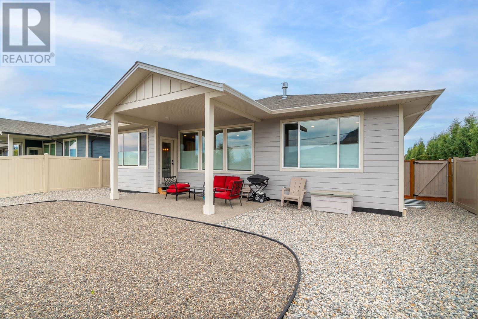 Fabulous Armstrong Rancher home with basement in a quiet, newer subdivision. Well-appointed main floor with a bright open concept floor plan. The gourmet kitchen has quartz counters, island, stainless steel appliances, and gas range. Adjoining the kitchen is the dining room and living room with a cozy natural gas fireplace. Relax in your generous-sized Master bedroom, boasting stunning ensuite with his and her sinks and glass surround shower. The main floor offers a second bedroom/office, second bathroom, laundry, and access to an attached garage. Below is a great place for putting your feet up or perfect as a rec room for the kids. Two nice-sized bedrooms on the lower floor, a full bathroom and tons of storage space. The back yard is fully fenced with a great covered patio. This is an excellent family friendly neighborhood located in Armstrong and only a few minutes to Vernon. Close to schools, town, and Tim Hortons. Nothing to do here but move in and relax. Book your viewing today! (id:22211)