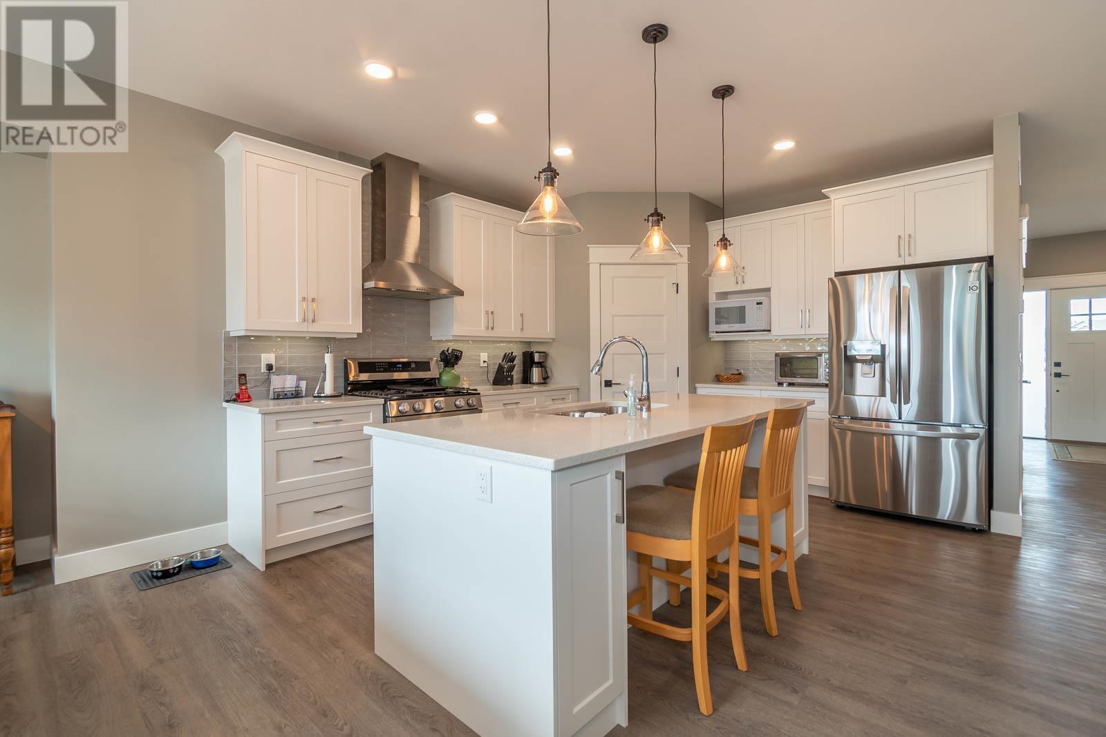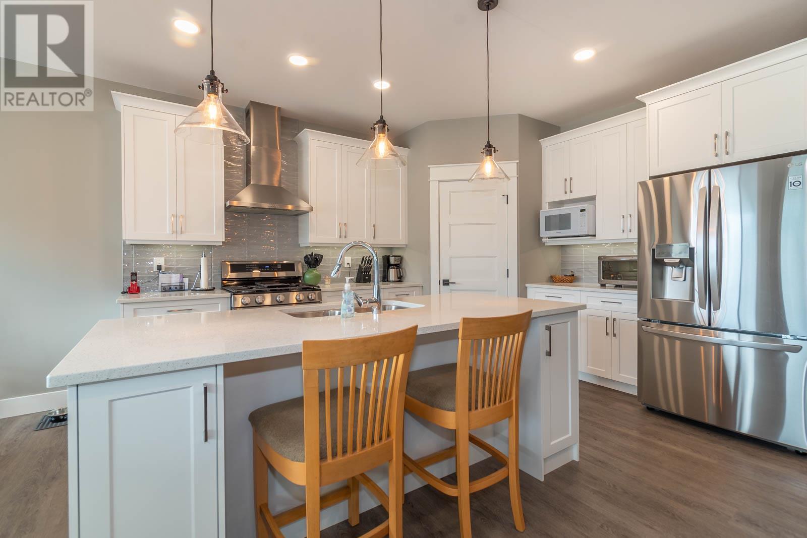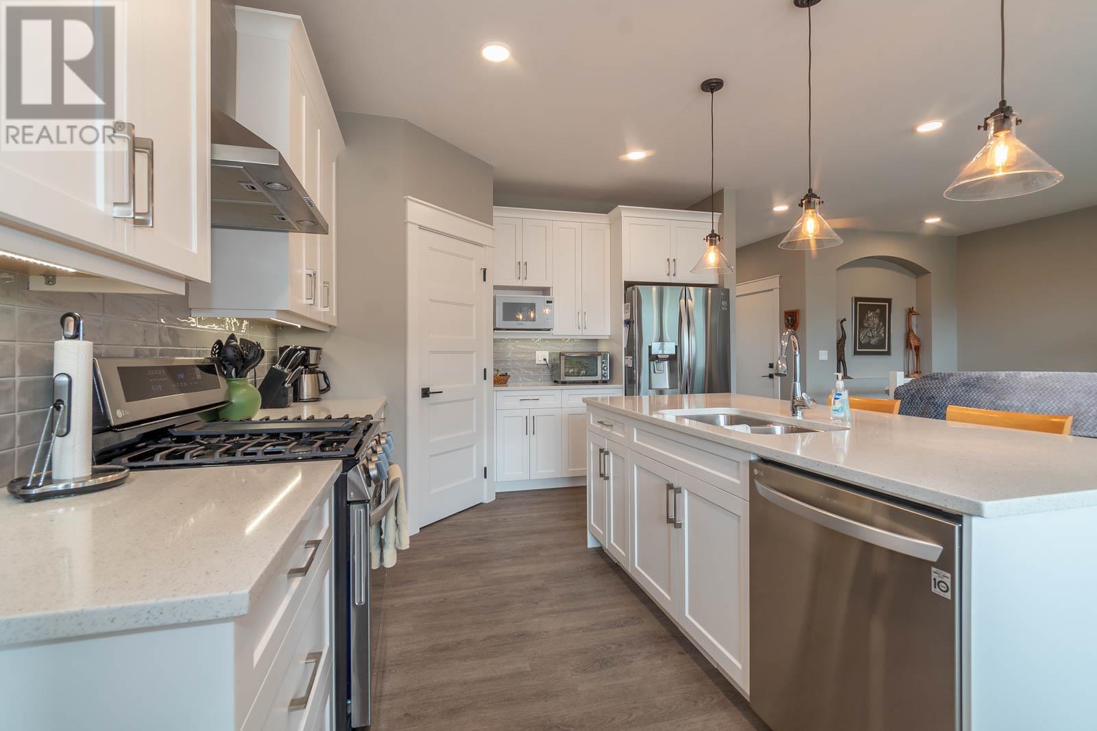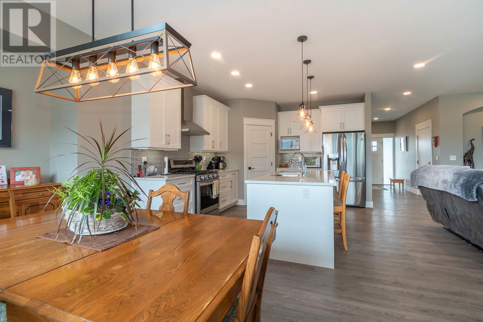 Fabulous Armstrong Rancher home with basement in a quiet, newer subdivision. Well-appointed main floor with a bright open concept floor plan. The gourmet kitchen has quartz counters, island, stainless steel appliances, and gas range. Adjoining the kitchen is the dining room and living room with a cozy natural gas fireplace. Relax in your generous-sized Master bedroom, boasting stunning ensuite with his and her sinks and glass surround shower. The main floor offers a second bedroom/office, second bathroom, laundry, and access to an attached garage. Below is a great place for putting your feet up or perfect as a rec room for the kids. Two nice-sized bedrooms on the lower floor, a full bathroom and tons of storage space. The back yard is fully fenced with a great covered patio. This is an excellent family friendly neighborhood located in Armstrong and only a few minutes to Vernon. Close to schools, town, and Tim Hortons. Nothing to do here but move in and relax. Book your viewing today! (id:22211)