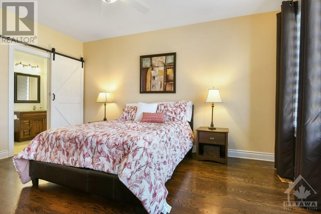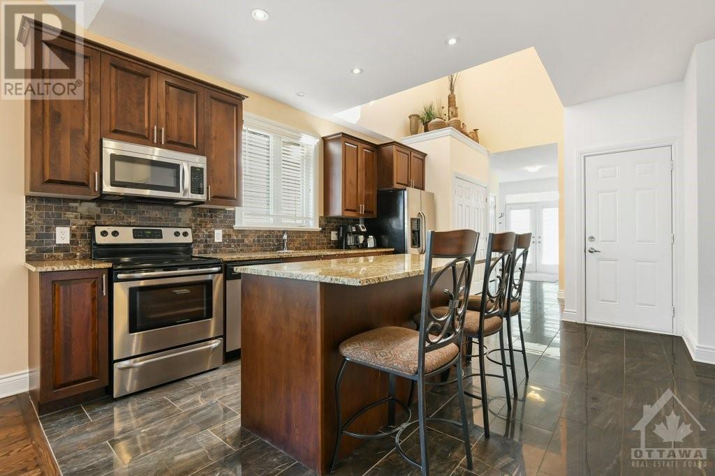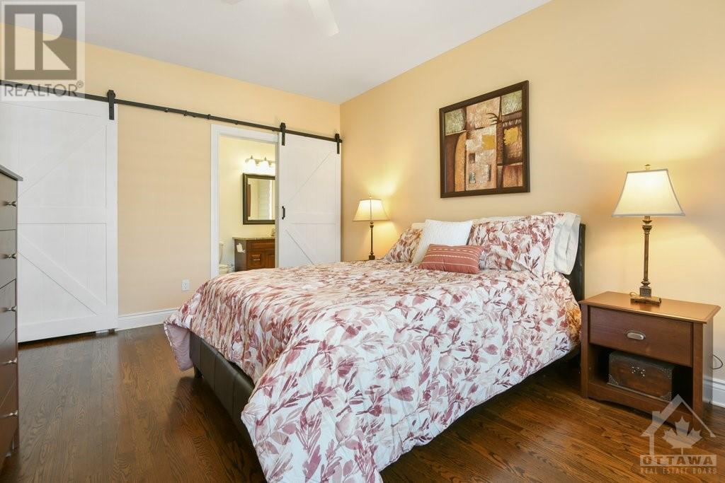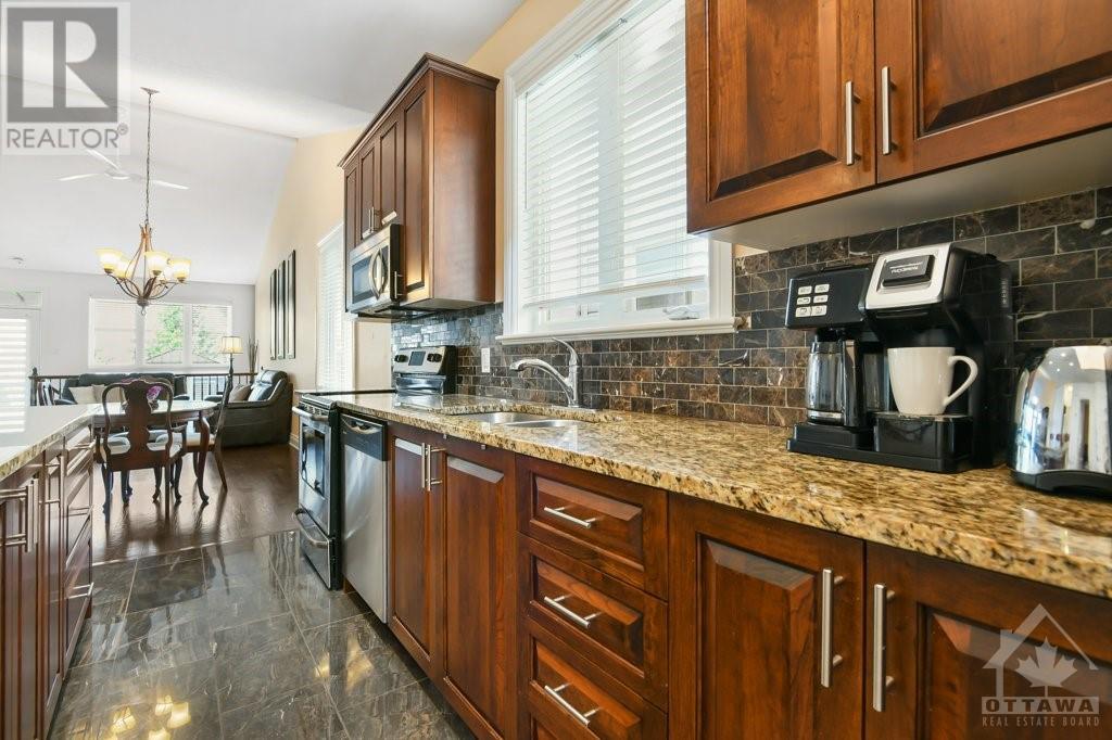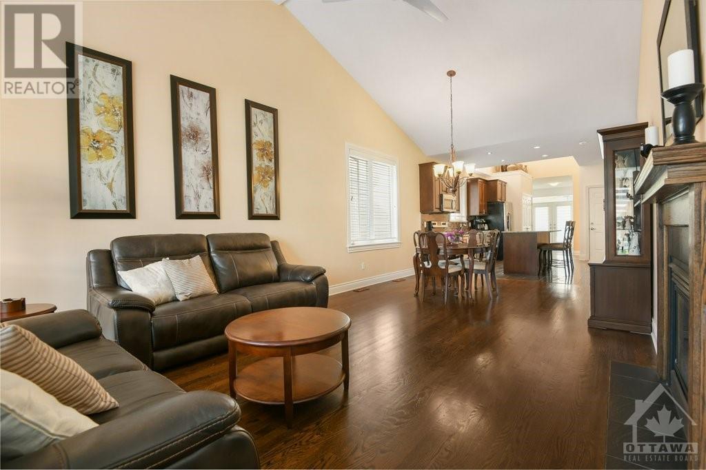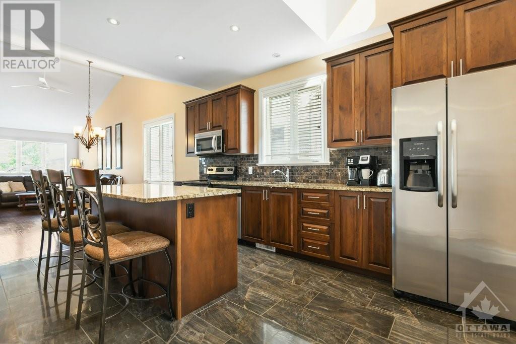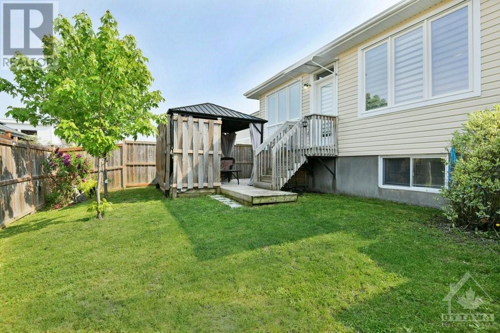 Sun-filled 3+1 bedroom bungalow with soaring cathedral and vaulted ceilings that stretch across the expanse of the open concept main level. Upgraded & meticulously maintained throughout, featuring a gourment custom kitchen with oversized island/breakfast counter, rambling granite counters, wood cabinetry, SS appliances & ceramic flrs. Rich hardwood floors & big bright windows in the LRM, large primary BDRM with walk-in and 4pc Ensuite. The prof. Fin. basement has a Fam.Rm., 4 th BDRM & 4pc bath. The private fenced yard has a large deck, gazebo, trees & shrubs. The front interlocking walkway provides extended parking and a warm approach to the home. Ideally located close to amenities & easy access to HWY 417. No conveyance of offers without a 24 irrevocable period. (id:22211)