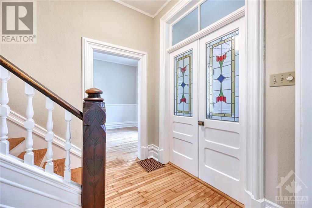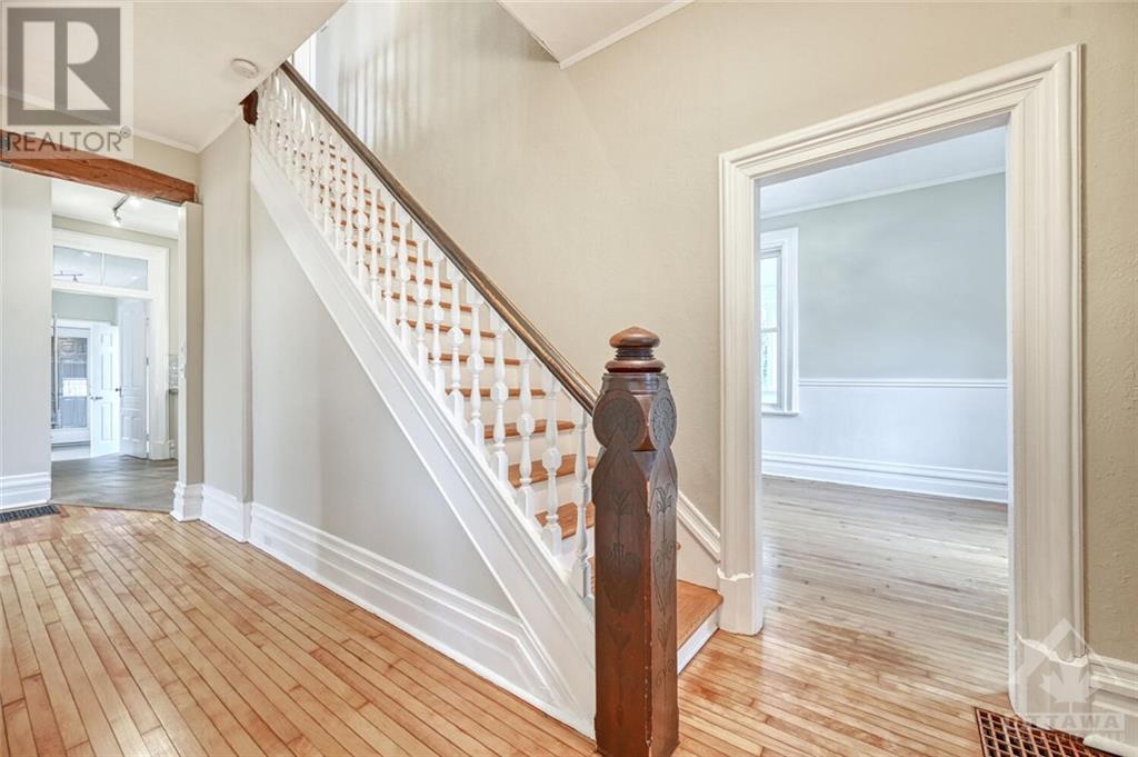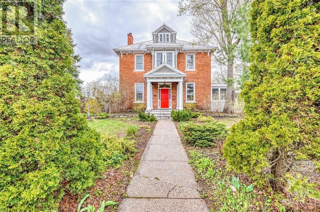Fabulous Location, Lot and Home in historical part of Arnprior with short walk to schools, beach/park, marina, downtown. This distinguished 4 bedroom brick heritage home boasts architectural features expected of a home of this stature along with convenient modern amenities. The main floor has 10ft ceilings and 9ft on 2nd and 3rd levels. HW Floors, tall wood baseboards, wrought iron grates and large windows (lots of natural light) throughout. Large principal rooms, including an elegant LR opening to DR, updated kitchen and FR with access to screened in porch. Powder and laundry rooms also on main floor. Take the back or front stairs up to 4 spacious bedrooms, an office, 1 full bathroom and a 2nd bathroom that is fully plumbed waiting to be finished. The unfinished 3rd level has great potential and sq footage. The huge yards feature beautiful trees, mature gardens and lots of grass space to play in the fenced backyard. This is a very special property! Furnace 2019, AC 2021, Painted 2023. (id:22211)