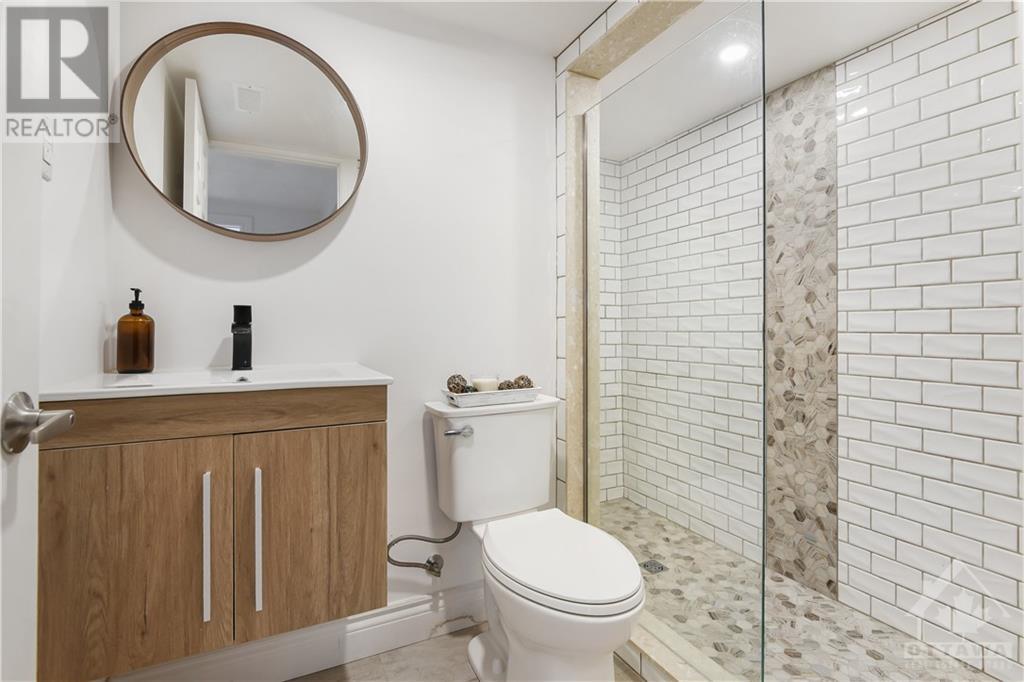 Stunning! No rear neighbours - backs onto the Village Creek community park! Bungalow row unit with a walk-out lower level. Spacious front entry, separate mudroom entry from garage. Entries have great closet space. Main floor open concept with gleaming hardwood & ceramic flooring. Kitchen with room for your culinary creativity. Living room with gas fireplace & wall of windows/terrace door to balcony. Primary bedroom with large walk-in closet and 4-piece ensuite bath - twin sinks & large tiled shower. Secondary bedroom also has good closet space. The lower level features a finished office/den with French doors, 3rd bedroom, fabulous 3rd bathroom with oversized shower, and family room with patio doors to the spacious ground level deck and fenced yard. Plenty of unfinished space used for laundry, storage & gym! Easy access to Highway 417 for a 25-minute drive to the city. 5 minutes from downtown Arnprior. Style, space, great location - don’t miss this one! 24-hr irrevocable on all offers. (id:22211)