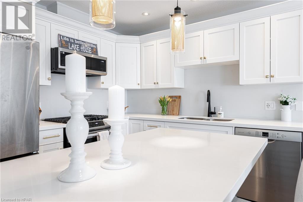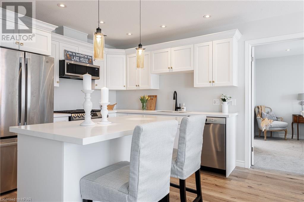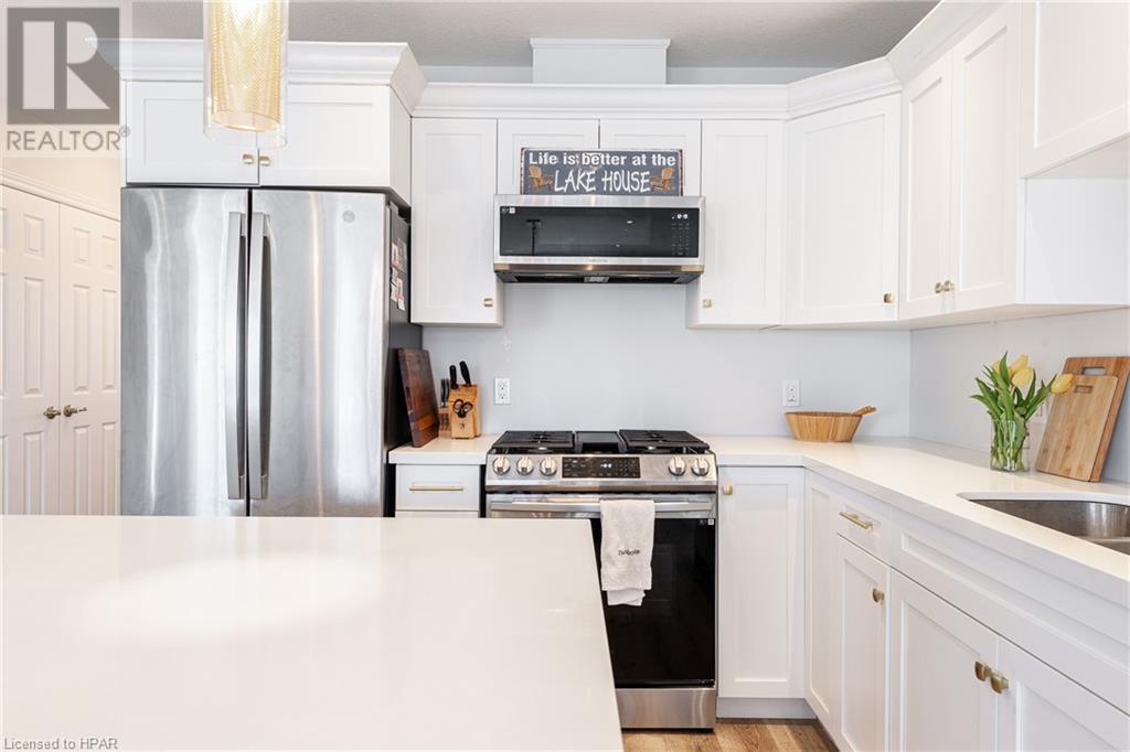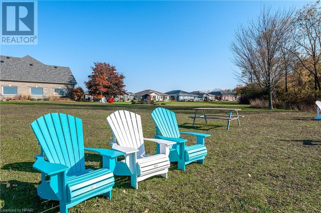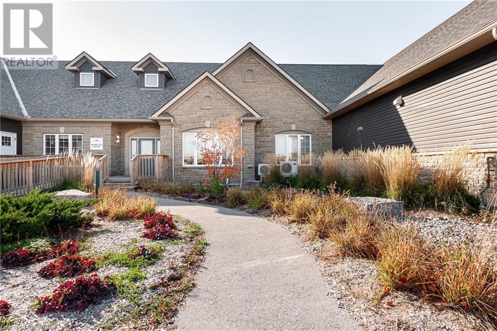 Step into this cozy Show home at The Bluffs in Canada's prettiest town Goderich ON steps away from Lake Huron. Completely turn key. This 2 bedroom, 2 bath, bungalow features quartz counters w/ undermount sinks, oversized island, SS Samsung gas stove, SS counter depth fridge GE, SS Bosch DW, Moen Faucets, 25 Pot lights (dimmers) linen draperies and custom. dining set, French chairs, sofas and bed sets. Home has crawlspace which runs the length and width of the home which is ideal for storage. This home and community is perfect for snowbirds, retirees, and empty nesters. Call today to learn more about this beautiful home and active lakeside community. (id:22211)