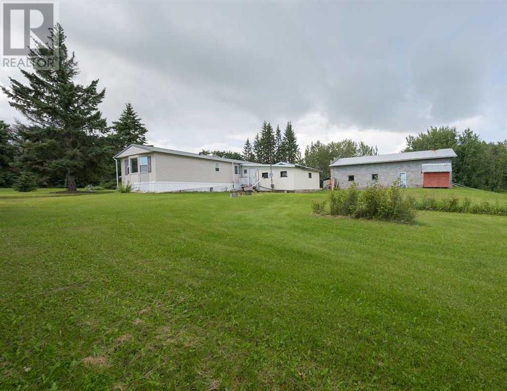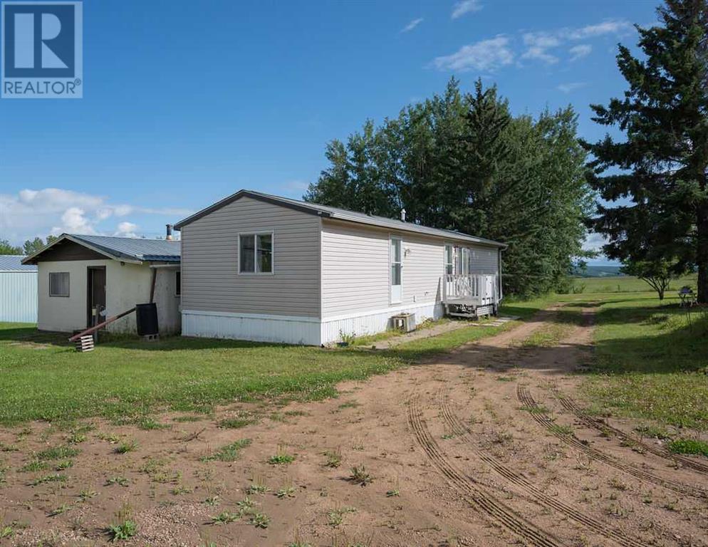 24 acres and highway frontage! Move right into this unique property and make it your own. The two bedroom mobile was constructed in 2010 and has 2 bedrooms and one 4 piece bathroom. Open concept kitchen and living room area. The hallway off the second bedroom leads to an older office space and 2 additional storage rooms, that with some imagination can be turned into a great usable space. Multiple outbuildings on the property including an older shop beside the house that is a great working space. But the newer 40'x60' metal clad shop in the back is a must have for any acreage property. It has a sealed concrete floor with sump on a cement foundation, 14' door and natural gas radiant heat. There is also a second build or RV site on the property. With so many possibilities, this property is definitely one to see. (id:22211)
