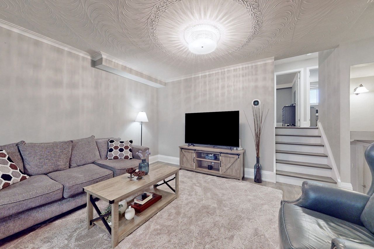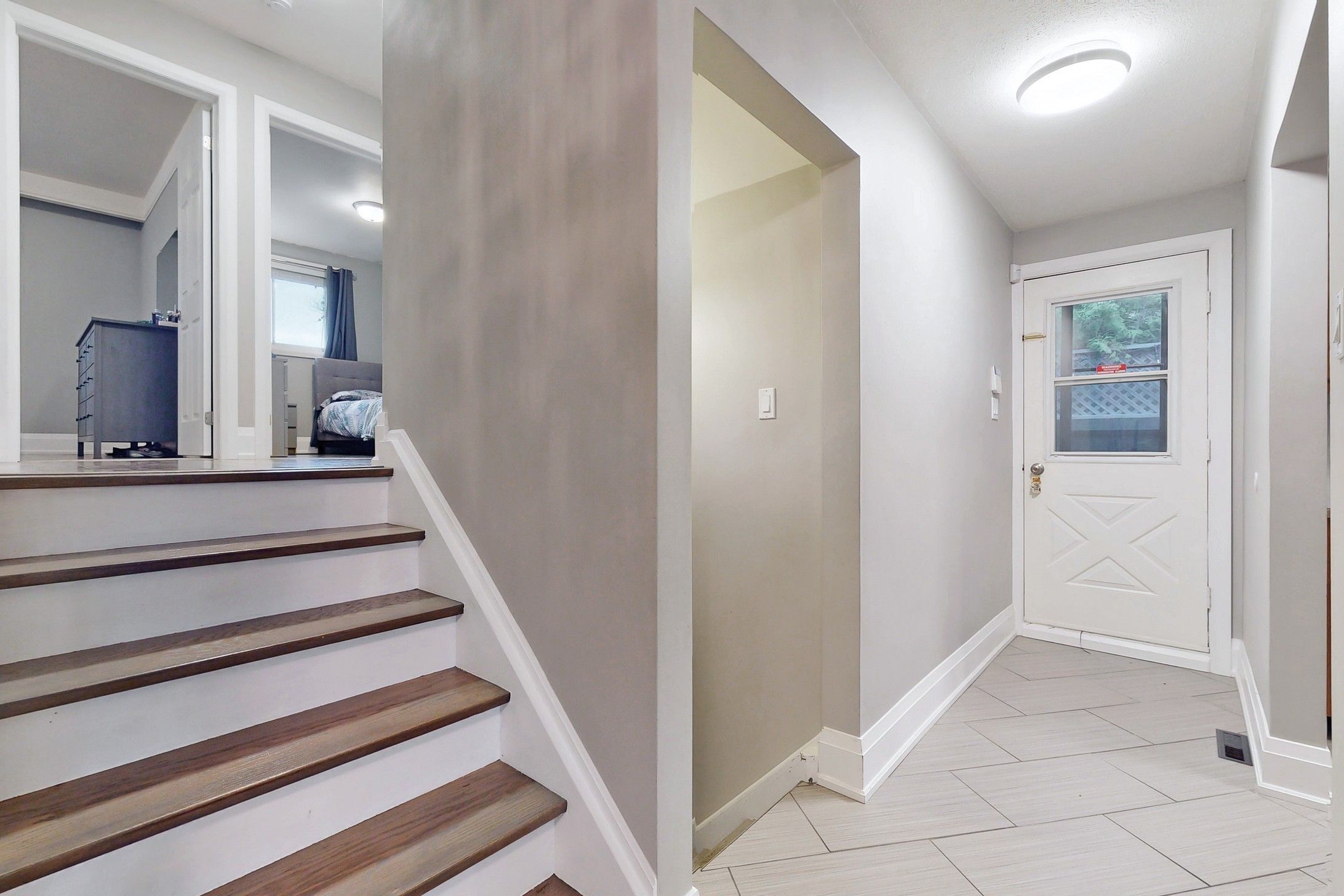 Entrances.Crown Molding,Laminate Floors & Trim Work Thru. Lower Level Cozy Rec Rm W/ 3Pc Bath.