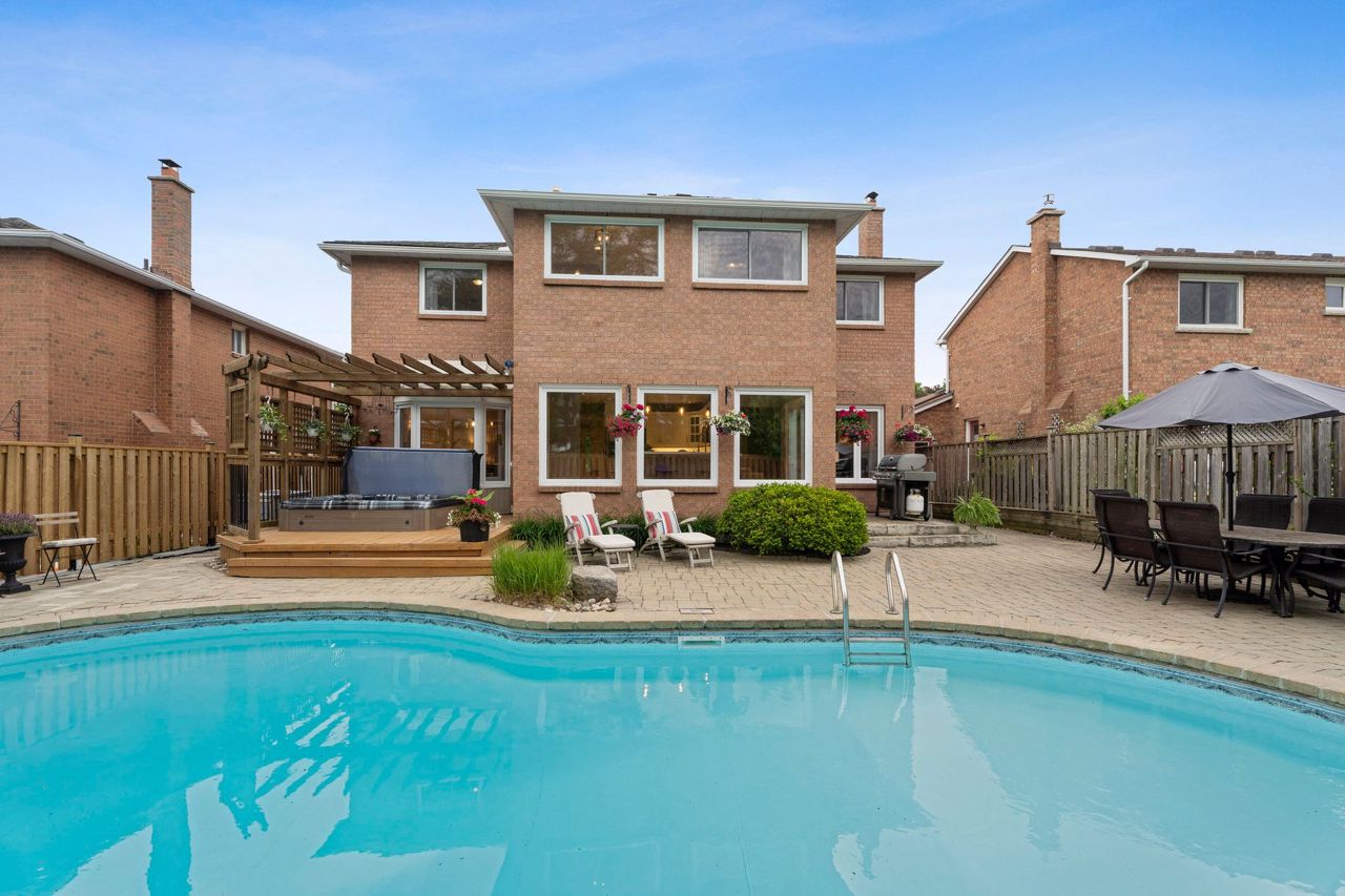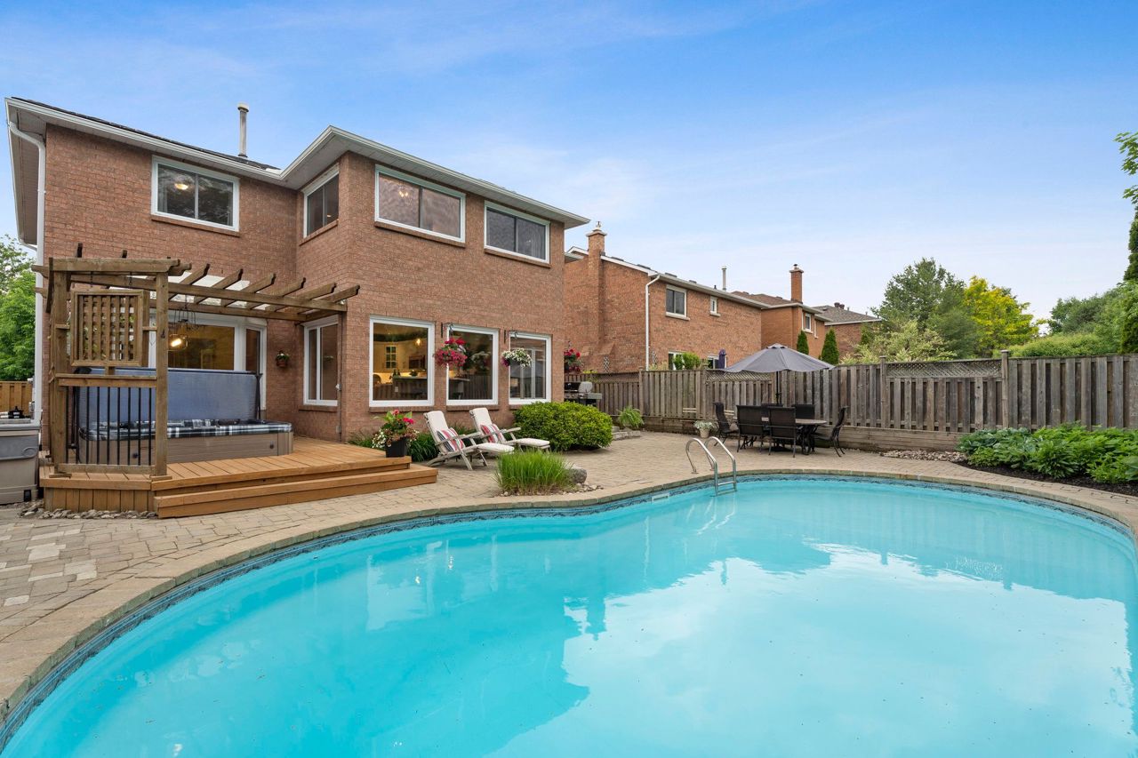 Welcome to this stunning 4 bedroom home offering over 3,500 sq ft of updated living space. In the heart of Hills Of St. Andrews, minutes away from St. Anne's and St. Andrews College. Main floor offers formal living and dining room with hardwood flooring. Family room features wood burning stone fireplace and hardwood floors. Custom designed kitchen with large breakfast bar. Mud room with separate garage entrance. Large master bedroom with newly renovated ensuite, separate sitting area and large walk-in closet. Hardwood throughout all bedrooms. Updated kids bathroom with double vanity. Finished basement includes laundry room, office, exercise room, large family area, full 3 piece bath. Backyard oasis is great for entertaining with in-ground saltwater pool and hot tub with surround deck and pergola. Underground sprinkler system in front yard. Enjoy beautiful walking trails minutes from your front door. Situated in a quiet neighborhood with easy access to 404 and 400.Ensuite Reno 2023, Air Cond and Furnace Blower 2022, Fence/Retaining Wall East Side 2022, Fence North Side 2023, Roof Shingles, Eaves, and Pool Heater 2018. Kitchen and kids bath reno 2018. All original windows have been replaced.