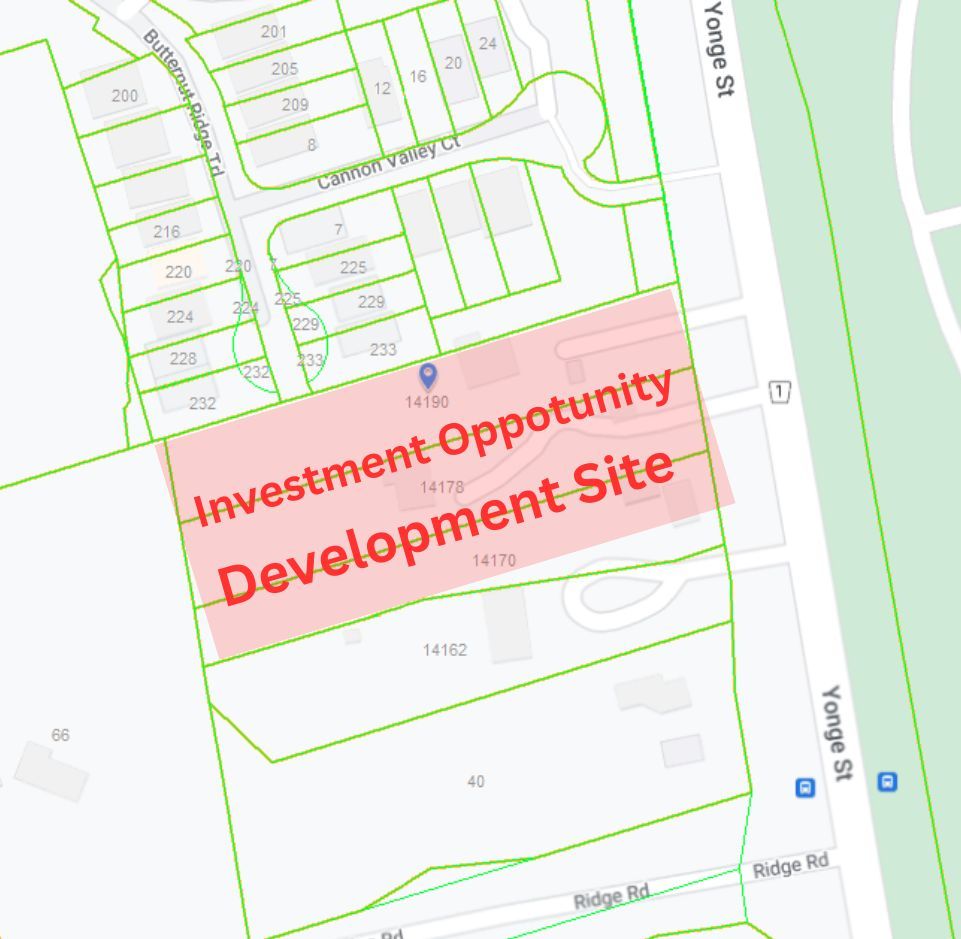 Attention All Investors, Developers, And Builders, Great Opportunity To Purchase Infill Site In The Aurora Estates Community. Total Of 3 Properties, Having Over 115,960 Sq.Ft Of Land Between The 3 Lots. This Property Is To Be Sold In Conjunction With 14170 Yonge And 14190 Yonge St. This Area Is Surrounded By Estate Homes, Tenanted Property which can be terminated or Stay till Draft Plan Approval.