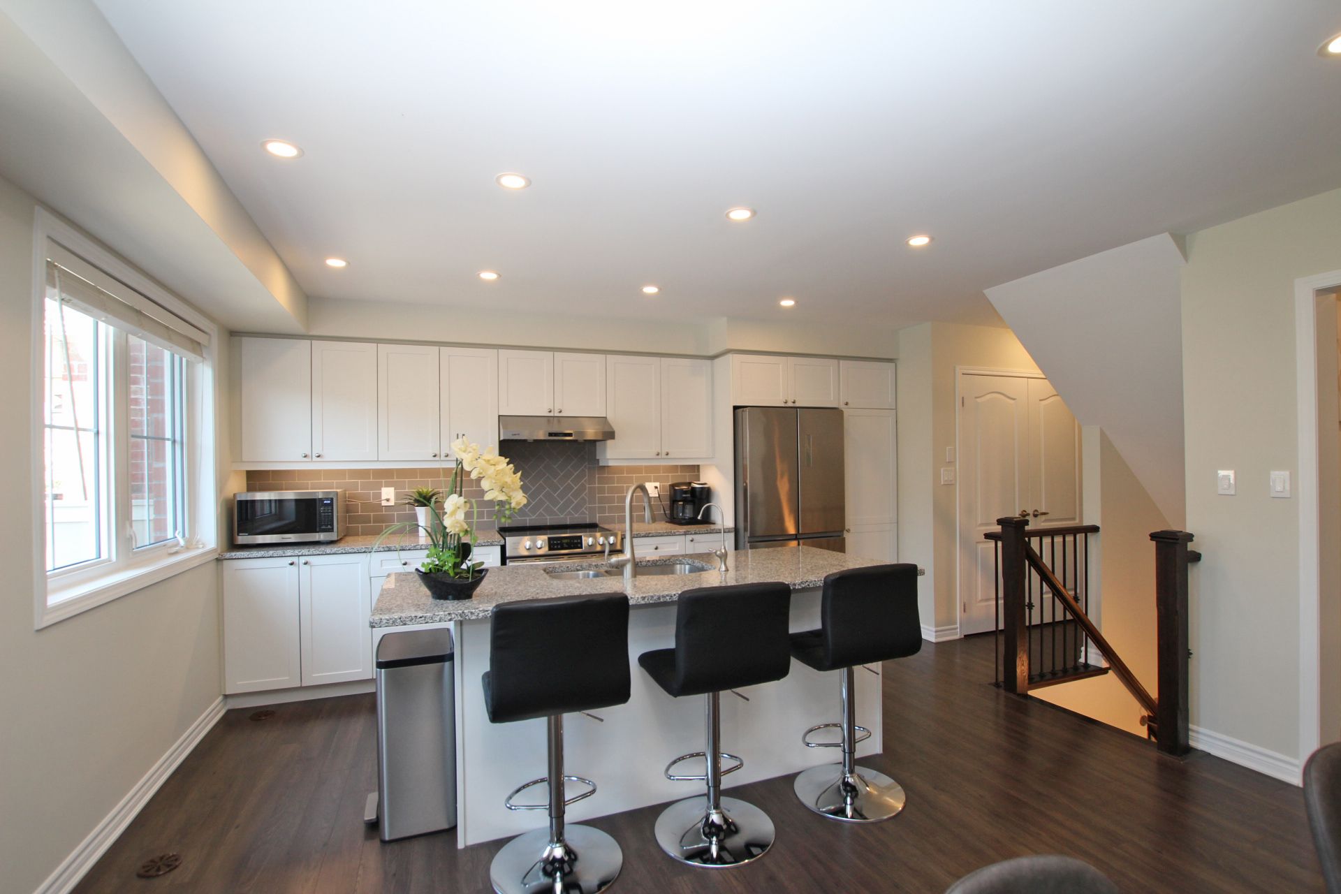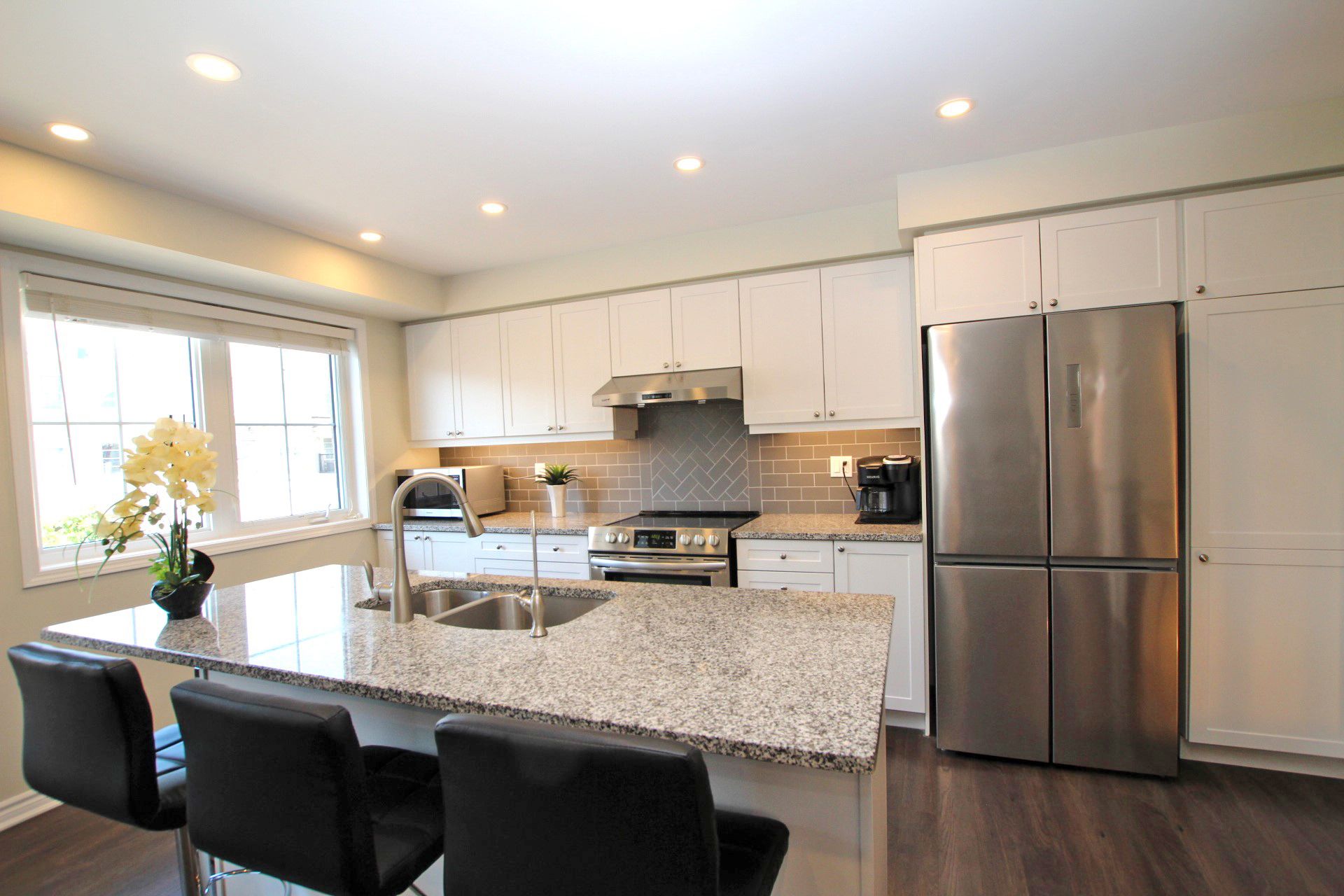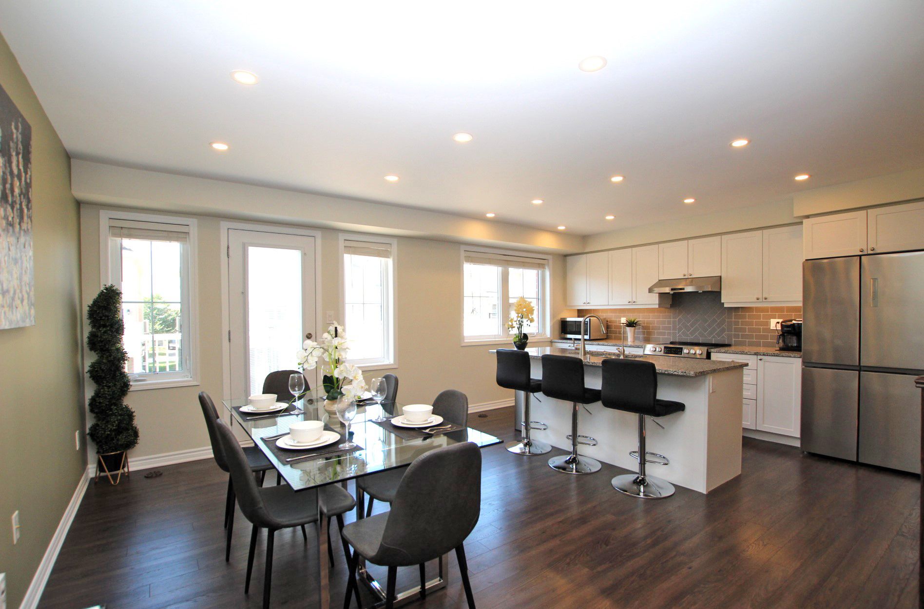 Welcome to 27 Minlow Way, a gorgeous Mattamy-built, move-in-ready end-unit freehold townhome with contemporary finishing and quality upgrades! Feels just like a Semi! Located in family-friendly, quiet neighborhood in Aurora. 9’ ceiling on main floor. Bright and spacious, 3 Bed 3 Bath, open-concept, excellent layout family home. Large foyer with flex/office space. Modern open kitchen with granite countertops, oversized center island, S/S appliances, new sleek backsplash, new under cabinetry lighting; sun-filled dining room with walk-out to large balcony; open concept living room with new pot lights; generous sized bright bedrooms with new hardwood flooring; large primary bedroom with walk-in closet and modern ensuite with granite countertop, new glass-enclosed shower; all modern bathrooms. Large garage with custom shelving storage area. Mins to Hwy 404, GO Train, shops, restaurants, parks, golf courses, high ranking schools, and all conveniences! Rare opportunity and a must see!Existing window coverings, All ELFs, S/S Fridge, S/S Stove, S/S Dishwasher, Samsung Washer & Dryer, Range Hood, Gdo, New Water Softener (July 2022)