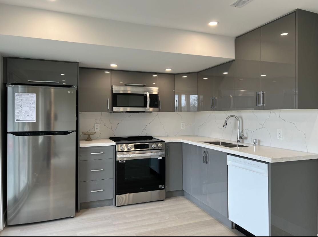 Executive townhome facing green belt! W/O basemsent with separate entrance, open concept, Newronavation, Thickened floor, upgrded model kitchen, pot light, 3 Gd size bdrms, 2 Bdrms withwindow. Safe neighbourhd, comunity ctr, walkg trail, schools, prk & Hwy404 close by.Stainless steel appliances fridge, stove, dishwasher,white washer, dryer will be ready when moving.
