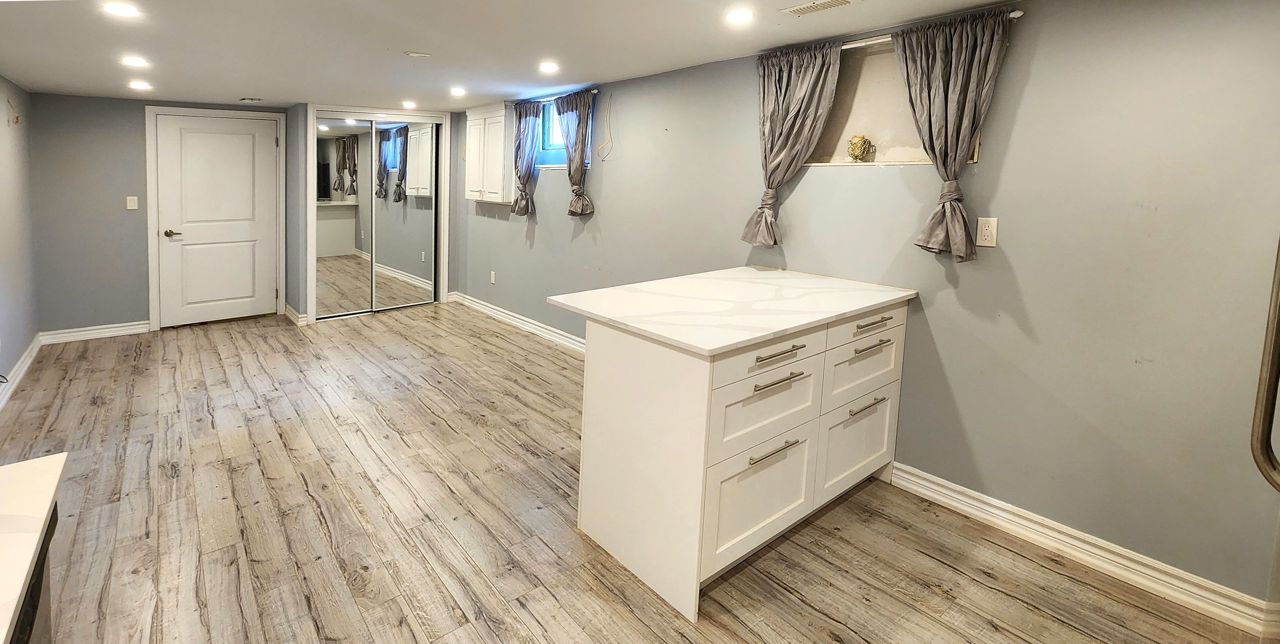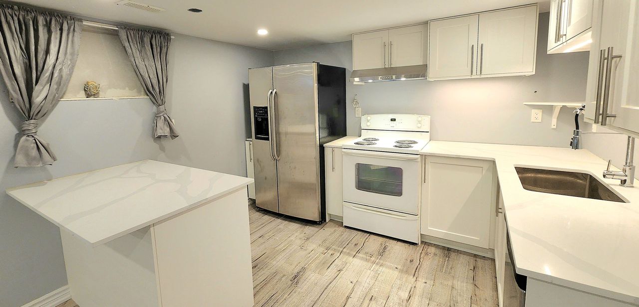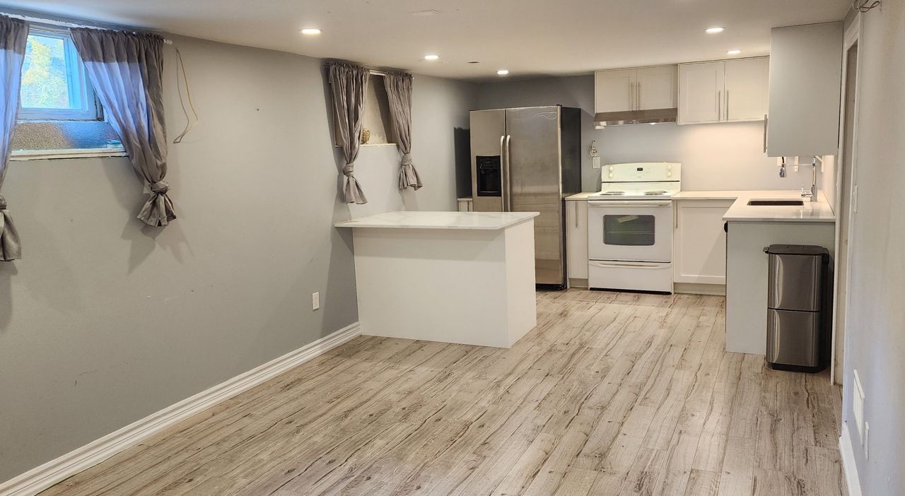 Bright And Spacious basement apartment In High Demand Aurora Highlands. Open Concept Layout... New kitchen with quartz countertops, central island and lot of cabinets. New laminate floor throughout, new pot lights. 1 Parking Included. No Smoking Or Vaping )!!!, No Pets!!! The Tenant Pays 1/3 Of Utilities. The unit for a single person.Fridge, Stove, Range Hood, Washer (shared), Dryer (shared)
