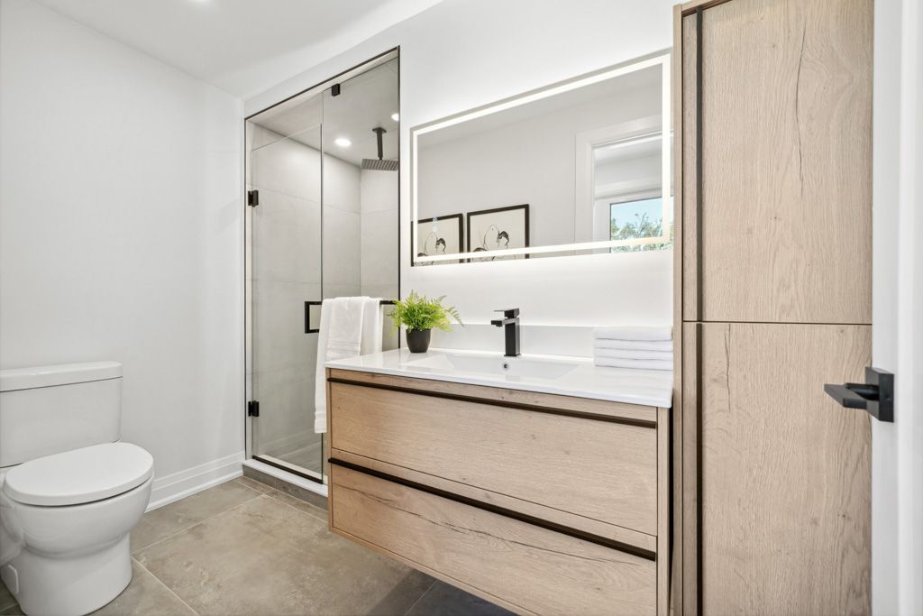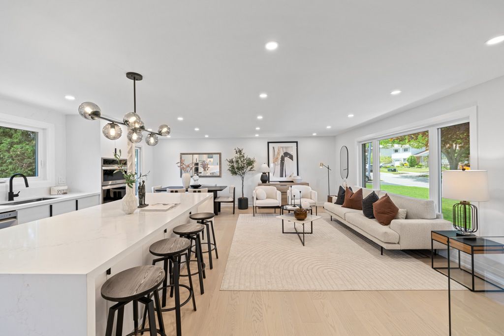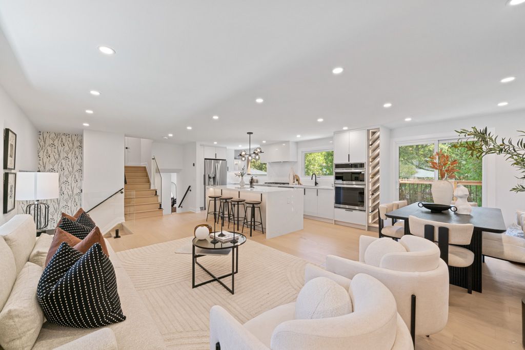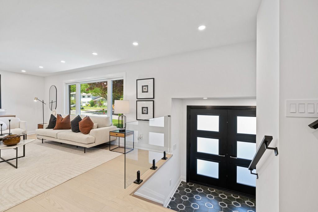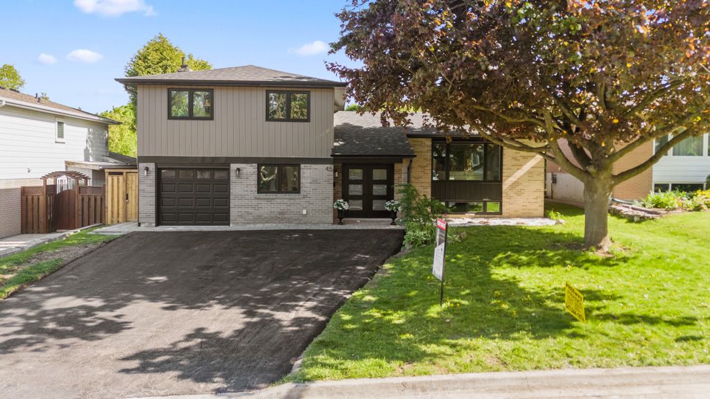 A Gem in the Heart of Aurora! Welcome to 45 Hill Drive - a stunning, fully permitted renovation, 4+1 bedroom side-split with gleaming hardwood flooring throughout, nestled on a premium 60 x 100 ft lot. Thoughtfully designed by an interior designer, this home features an open-concept main floor with a sleek, modern kitchen boasting a large stone centre island, pantry, ample cabinetry, and top-of-the-line built-in stainless steel appliances, including a wine rack. The elegant dining area walks out to an oversized deck, perfect for entertaining. The upper level offers a spacious primary bedroom with his-and-hers closets, a conveniently located laundry area, and two additional sun-filled bedrooms. The lower main level includes a bright and inviting family room with a custom fireplace feature wall, direct garage access, a walkout to the backyard, a fourth bedroom, and a beautifully finished full bathroom featuring a customized tub and stunning wallpaper finishes. The fully finished basement features a private separate entrance, a full second kitchen, a stylish bedroom with frosted glass barn doors, and a full bathroom ideal for in-law living or rental potential. All major systems upgraded in 2025: Electrical (200 Amp), Plumbing, Insulation, Furnace, Tankless Hot Water Heater, Roof, Windows, Doors, Deck, Asphalt, and Interlock.