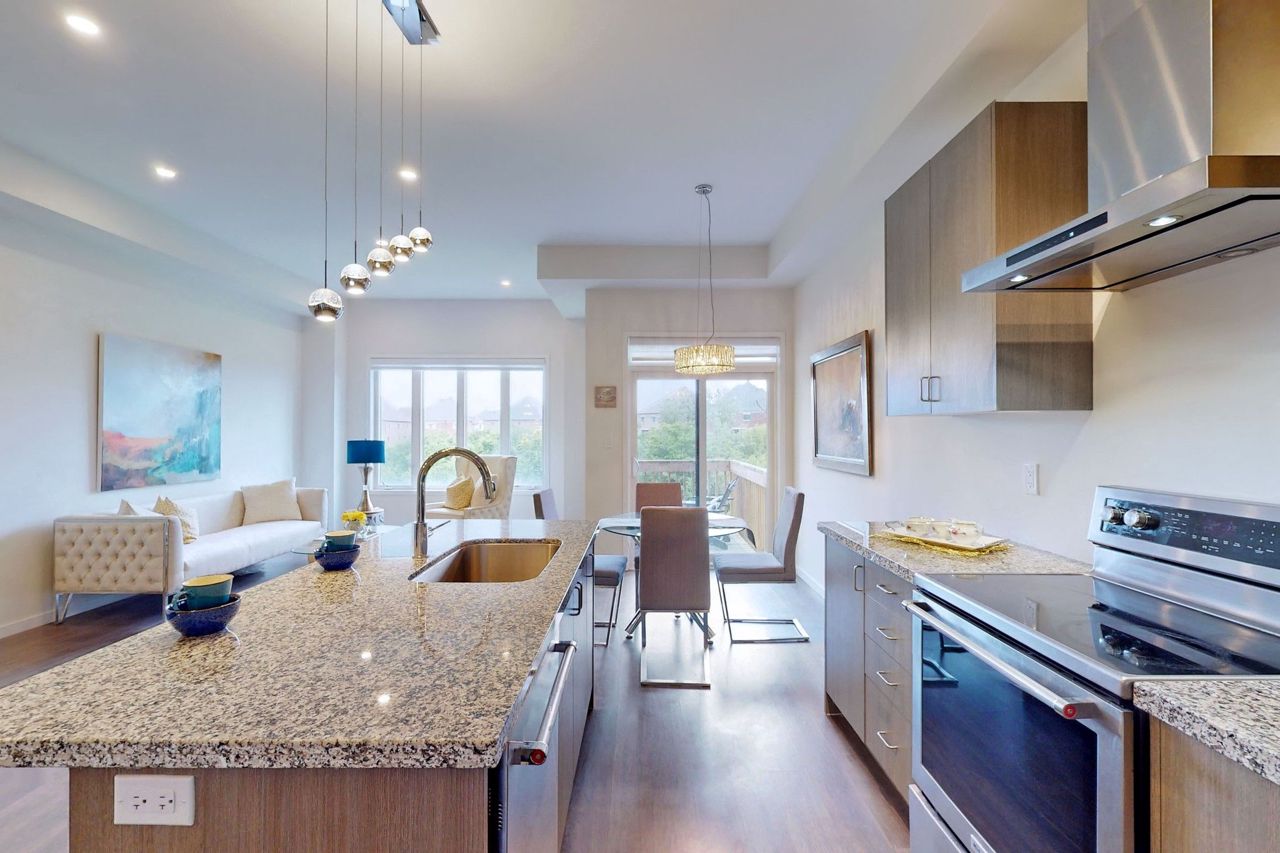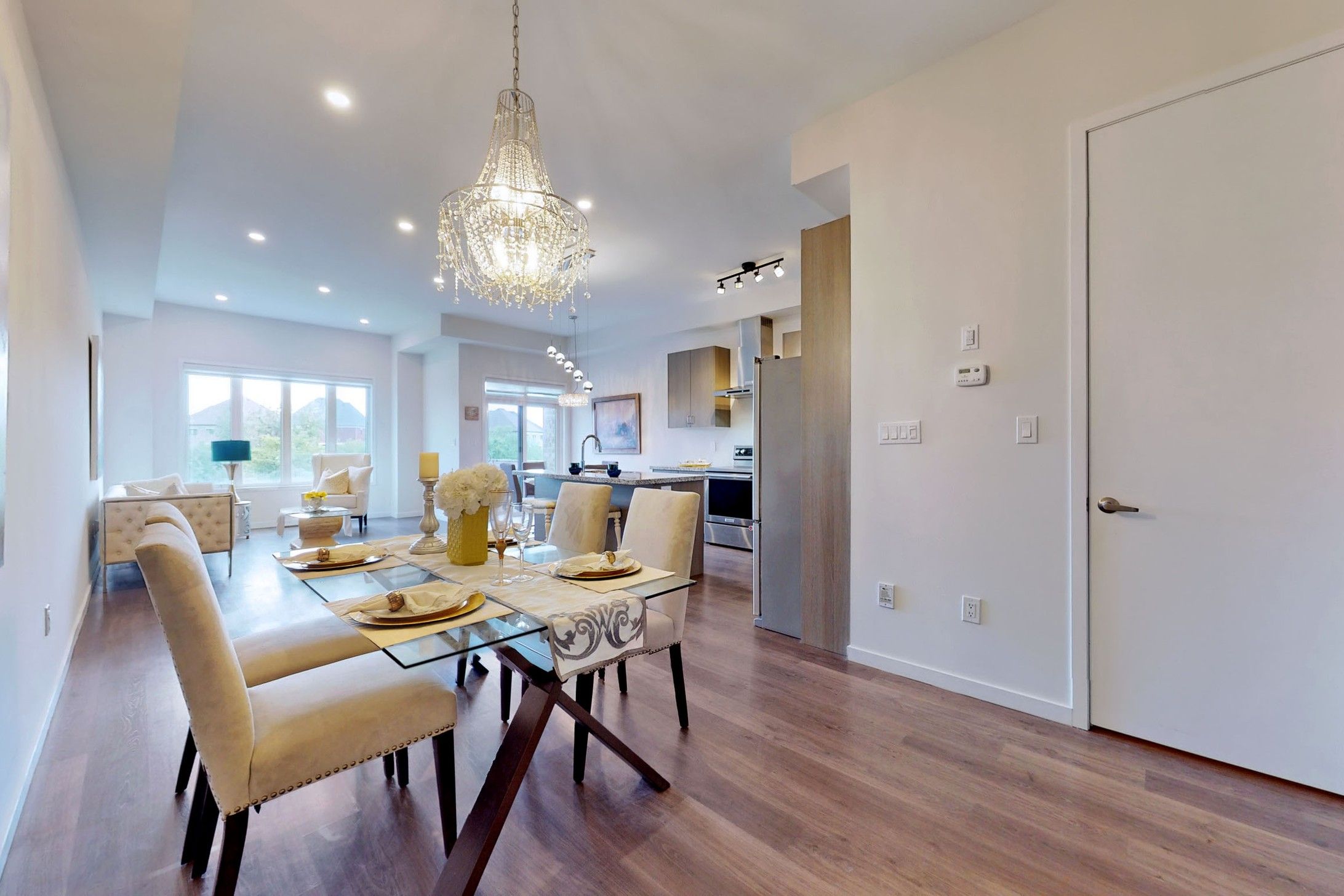 Do Not Miss This One Of The Best Town House In The Neighbourhood, Total 2470 Sqft Excluding Basement As Per Builder, With Walk Out Basement, Soaring 10 Ft Ceiling On Main, 9 Ft On 2nd Floor, Thousands In Upgrades:Flooring,All Chandeliers,All Window Blinds&Drapes, Steps To Shopping,Restaurants,Parks &Hwy 404.