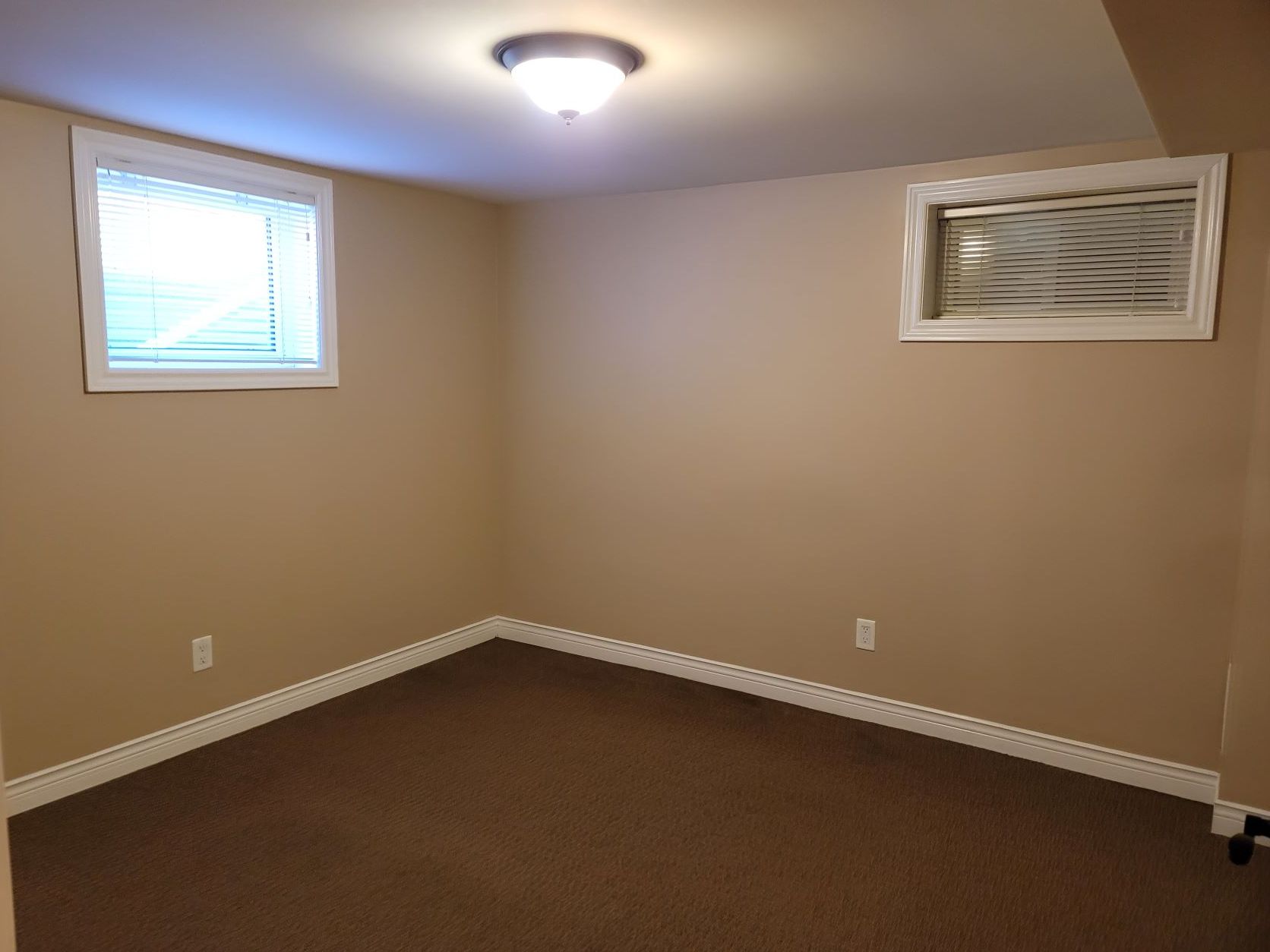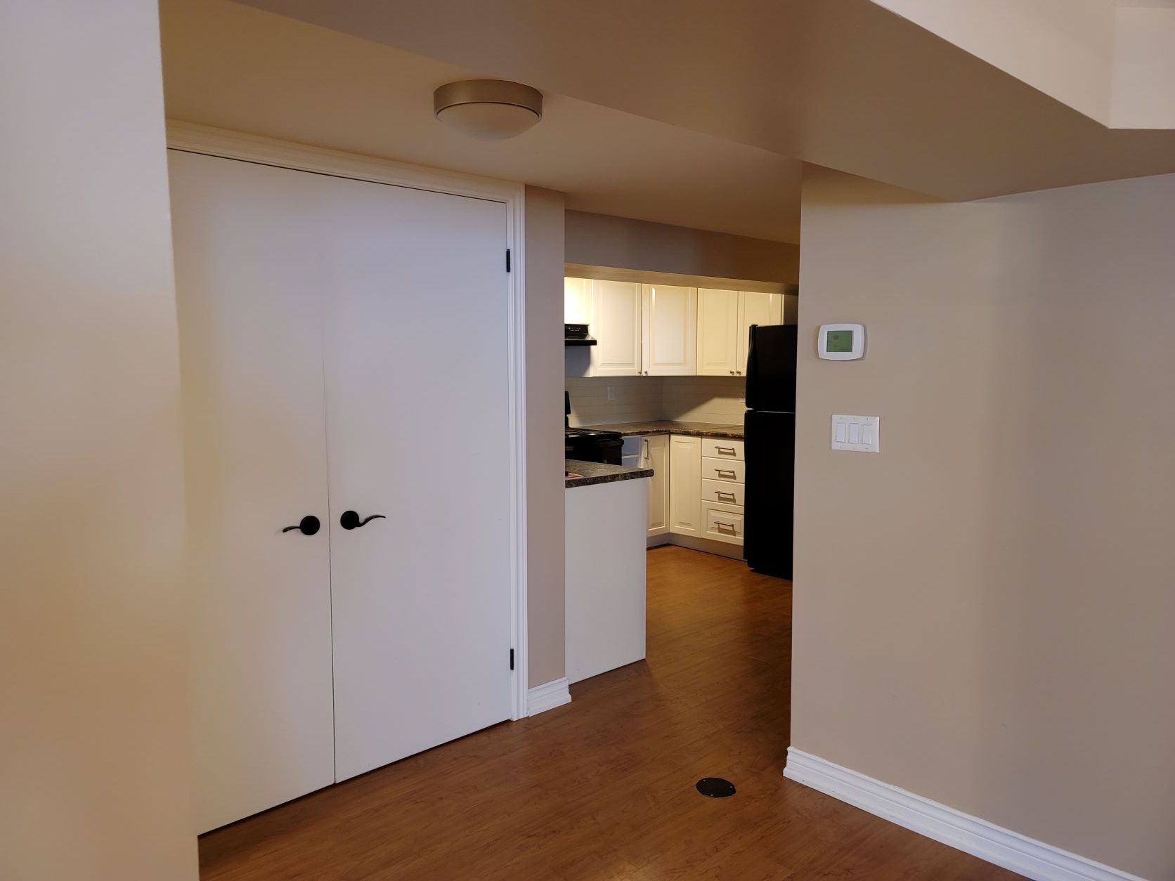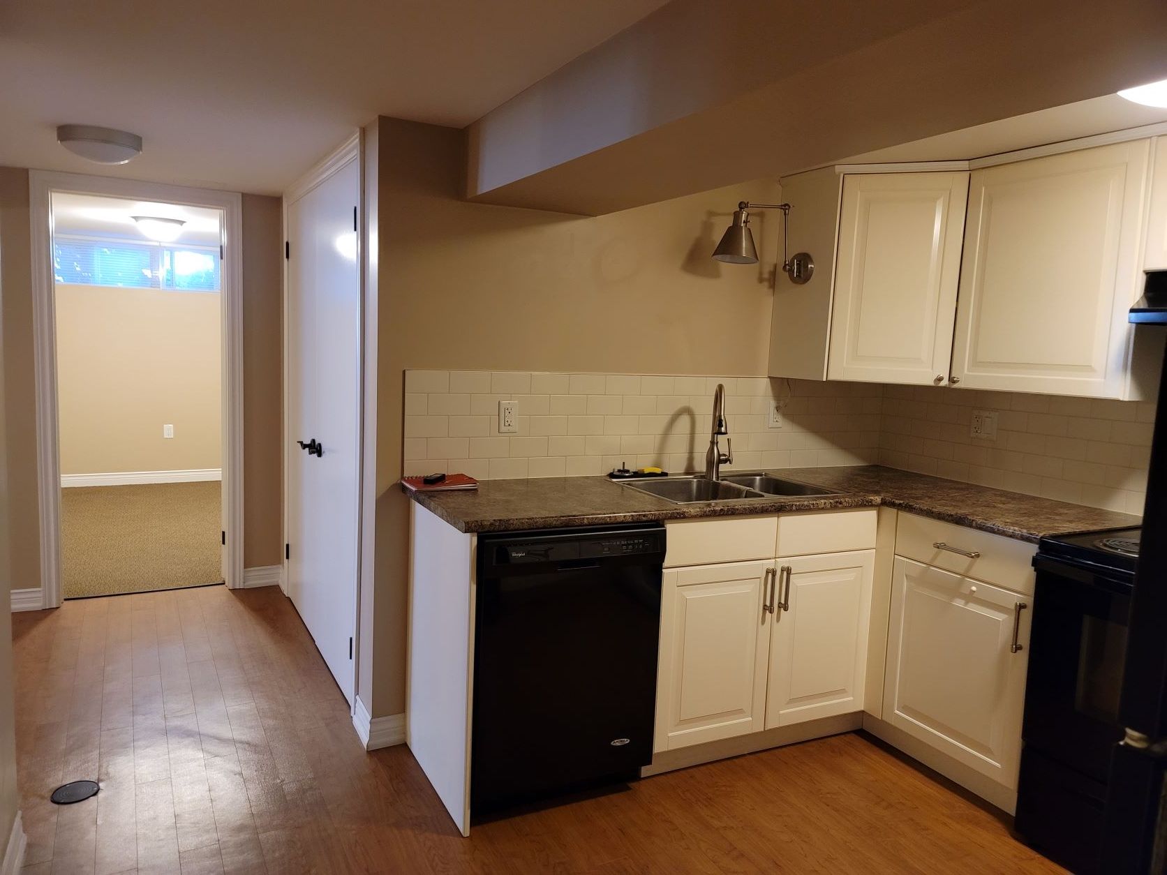 Bright, well maintained, spacious basement apartment includes 1 large bedroom, 1 den, private side entrance with deck, shared laundry, parking on west side of driveway, includes water, hydro & gas. Tenant responsible for phone, TV & internet. Great location close to shopping, parks, transit.Includes water, hydro & gas. For tenants use fridge, stove and dishwasher. Shared washer and dryer. No pets due to allergies & no smoking.