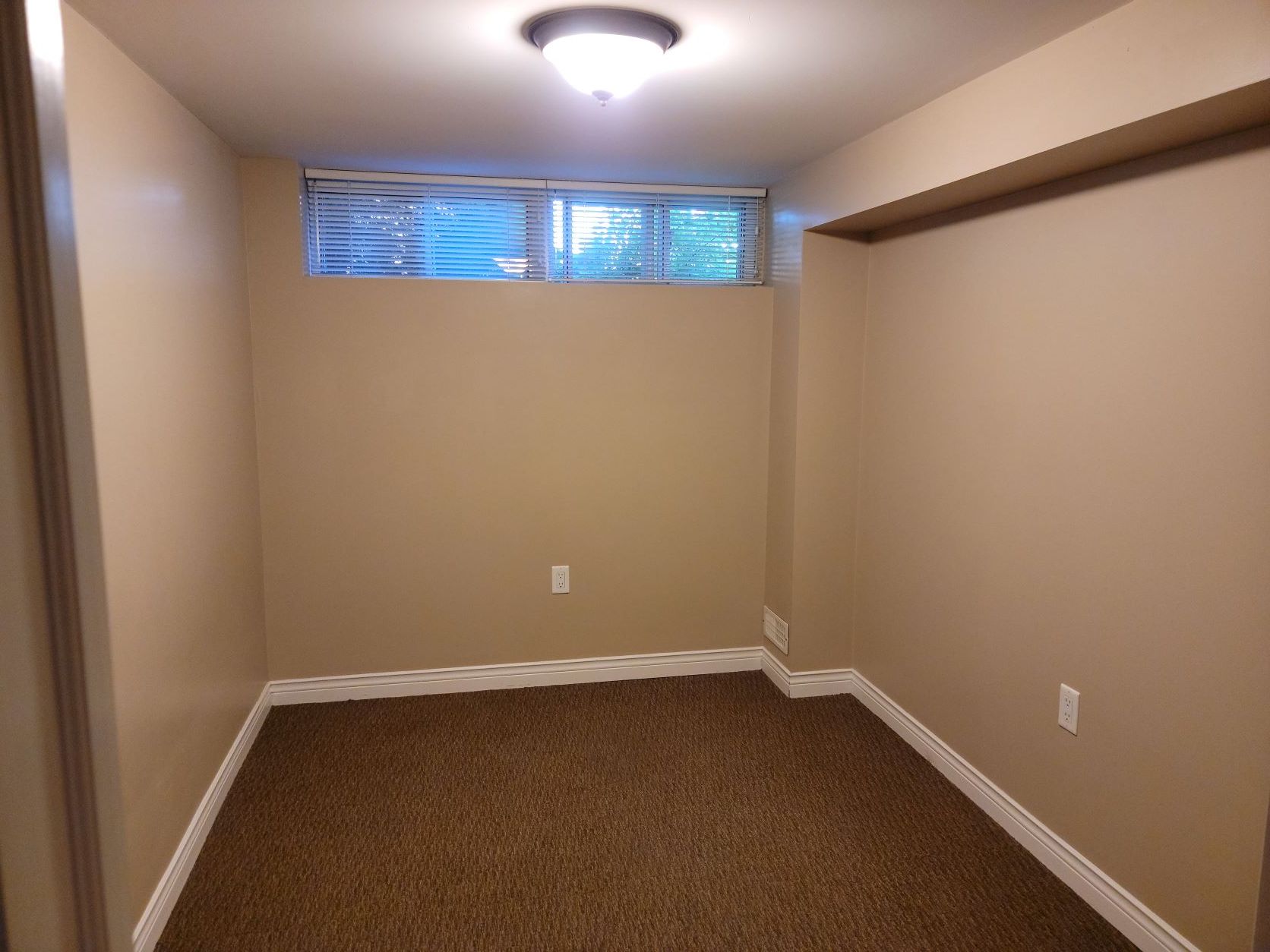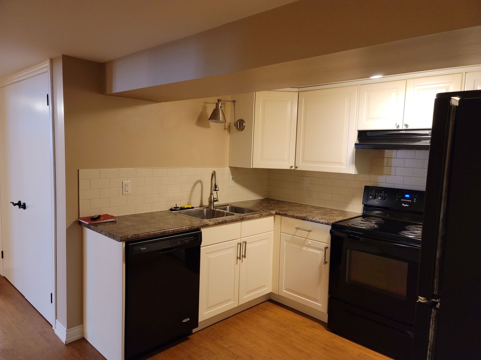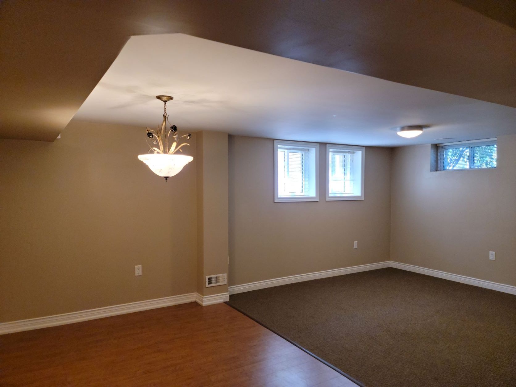 Bright, well maintained, spacious basement apartment includes 1 large bedroom, 1 den, private side entrance with deck, shared laundry, parking on west side of driveway, includes water, hydro & gas. Tenant responsible for phone, TV & internet. Great location close to shopping, parks, transit.Includes water, hydro & gas. For tenants use fridge, stove and dishwasher. Shared washer and dryer. No pets due to allergies & no smoking.