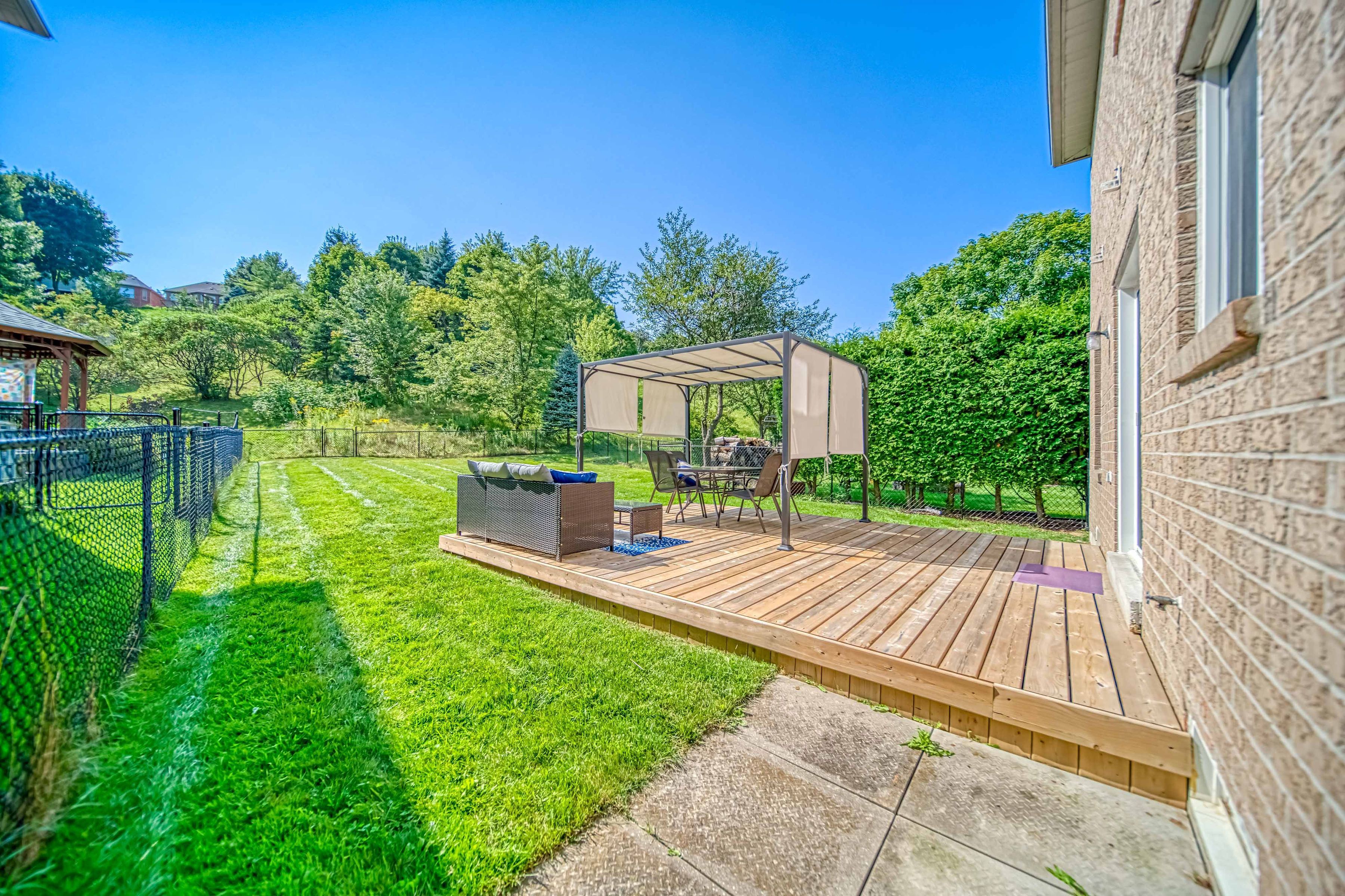 Welcome to 87 Stemmle Drive, a beautifully upgraded 4-bedroom, 3-bathroom detached home located on a quiet, family-friendly street near a cul-de-sac ensuring minimal traffic and a peaceful living environment. This stunning property features a super deep 150-foot lot backing onto lush green space, offering unmatched privacy and natural beauty. Inside, you'll find modern touches throughout, including quartz countertops in the kitchen and bathrooms, along with upgraded flooring that adds a touch of luxury to every room. The open-concept kitchen is perfect for hosting, and the finished basement provides ample space for family activities or a home office. The exterior is equally impressive with a long driveway that can park up to 5 cars, complemented by a 2-car garage. The absence of a sidewalk enhances the driveway's utility, making it ideal for multiple vehicles. Located in the desirable Aurora Highlands community, this home is just minutes from shopping at Aurora SmartCentres, Metro for grocery needs, and some of the area's top-rated schools. This is not just a home, it's a lifestyle in a prime location, perfect for families looking for a blend of convenience and tranquility.Some furniture including the Dining table and bed in the Primary bedroom can be included in the sale. Details to be discussed.