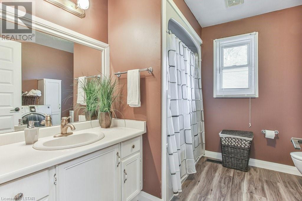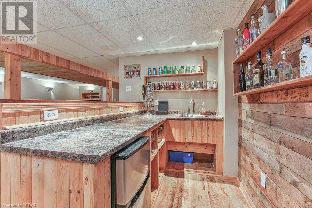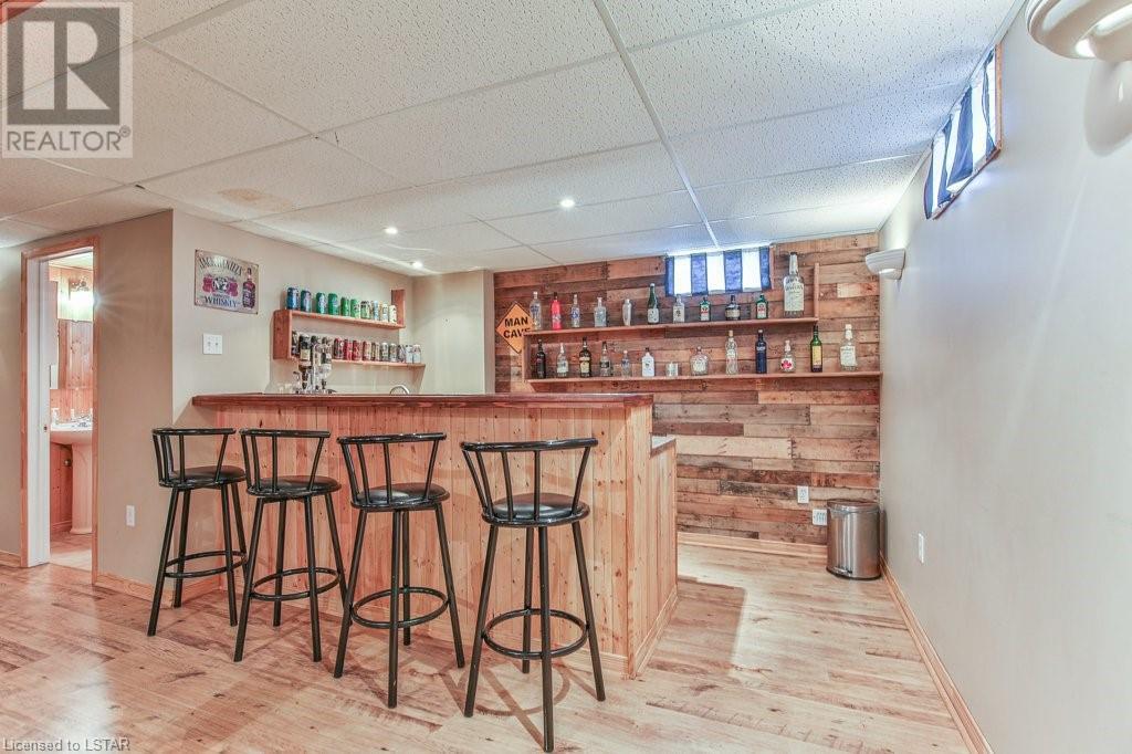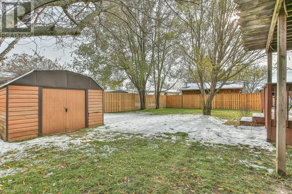 Beautiful 3+1 bed, 2 bath brick bungalow in the quiet town of Aylmer. Move in to this clean and well cared for home and start enjoying small town life! Modern interior feels fresh with an updated kitchen and living that walks out to a fully fenced (2020) yard and deck with covered patio for those rainy days. Large 4 pc bath with gas laundry included and 3 good sized bedrooms upstairs. Downstairs you'll find a very warm and relaxing space designed to melt the day away with well laid out rec room and wet bar! A 3 pc bath and large bedroom with oversized closet would make a great man/woman cave or space for the teenagers. New furnace and central air 2018 and roof in 2015 take all the major costs away with hydro in the shed for the hobbyist. Garage and a half are insulated with a work bench and a new white marble laminate countertop will be installed before closing so it should be even nicer than pictured! Book your showings before its SOLD! (id:22211)