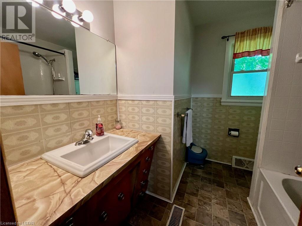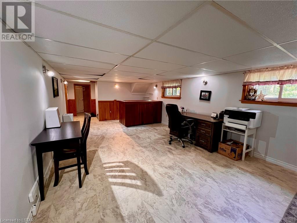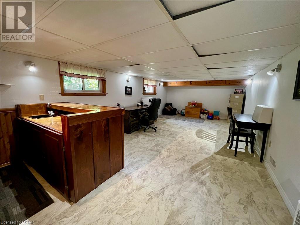 This brick ranch / bungalow style home offers 3 bedrooms, 1.5 baths, attached garage, paved driveway, full partially finished basement, and private back yard featuring storage sheds, shade and plenty of room to enjoy outdoor activities. The main level features front entrance with coat closet, a spacious living room, ample kitchen and dining area, 3 good sized bedrooms and full bathroom. The basement has finished recroom with wet bar, another finished room ideal for home office or hobby room (currently set up as 4th bedroom), additionally you will find the laundry area, 2 pc bath, large utility room (ideal for storage) and cold room. Square footage is interior area, all measurements approximate. (id:22211)