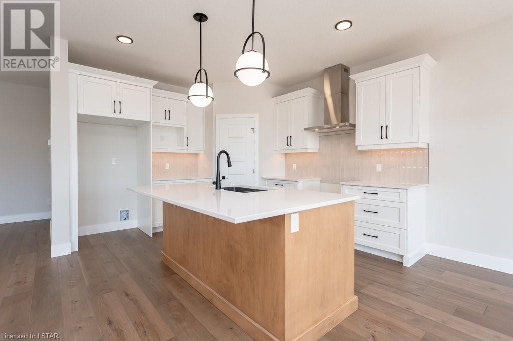 Welcome to the Bannerman by Collier Homes! Located in the quiet town of Aylmer, this brand new two storey home is nestled away from the hustle and bustle, backing onto a pond. Featuring a bright and welcoming front foyer, open concept floor plan, nine foot ceilings, transom windows, and a spacious GCW kitchen, this home is the perfect space for hosting family gatherings and entertaining your friends! On the upper level you will find four bedrooms, including the primary suite with a 5-piece spa like ensuite, large functional laundry room complete with sink, additional storage, upper cabinets and additional counter top space to make folding and ironing a breeze. The fully finished lower level offers a great space to relax with the family, an additional bedroom and bathroom, and ample storage space. Other bonus features include 2 car garage with mudroom entrance and covered back deck. This home includes the Tarion Home Warranty arranged by the builder prior to closing. Taxes are to be assessed as this home is currently under construction. HST is included in the price, to be rebated back to the builder. (id:22211)