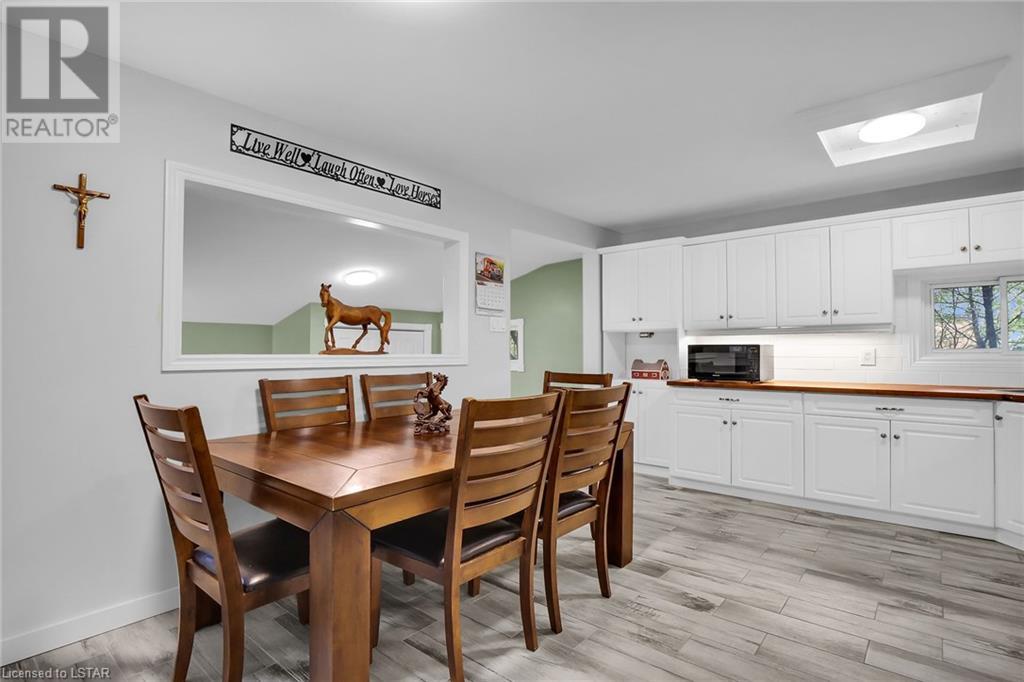 2.8 acre hobby farm zoned for all your animals. 2 fenced paddocks (2019) with 17 x 30, 2 stall run-in. Chicken coop with laying boxes. Many upgrades are apparent including kitchen cabinets with butcher block countertops, flooring, designer paint throughout the interior, Gas Fireplace in the living room professionally rebuilt in 2022, A/C installed in 2020, a 20' x 40' SHOP/GARAGE with Hydro is perfect for all kinds of hobbies or dry Hay storage. Lots of room for your own vegetable garden. Wooded and treed areas give you your own private forest. A large fenced-in dog run with more small storage buildings. Septic pumped out in 2020. Minutes to Aylmer & Lake Erie. Exterior freshly painted in summer of 2022. Basement recently professionally water-proofed including sump pump. Septic pumped out May 23rd, 2023. (id:22211)
