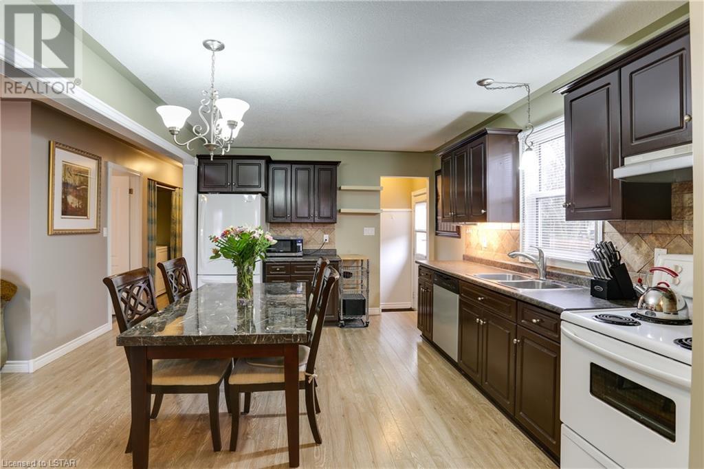 This beautiful bungalow has been completely updated with beautiful hardwood laminate flooring throughout, updated windows, granite countertops in the main floor bathroom, new, updated cabinetry in the open concept kitchen/dining area. Home has been reshingled in 2012 with Timberline shingles. Furnace and HRV and water heater(owned). Updated in 2013. The outside features 2 sheds, a patio and steel frame & a yard completely fenced for privacy. A short walk to public schools and about 4 blocks to downtown Aylmer for all amenities. This is a perfect home for a young family, a good starter home, or for anyone who wants to enjoy a little peace and quiet on a quiet cul-de-sac. You won't want to miss this one! (id:22211)