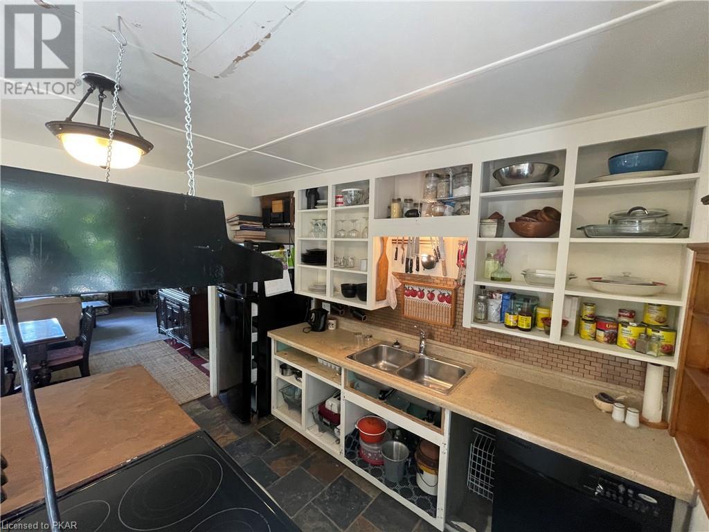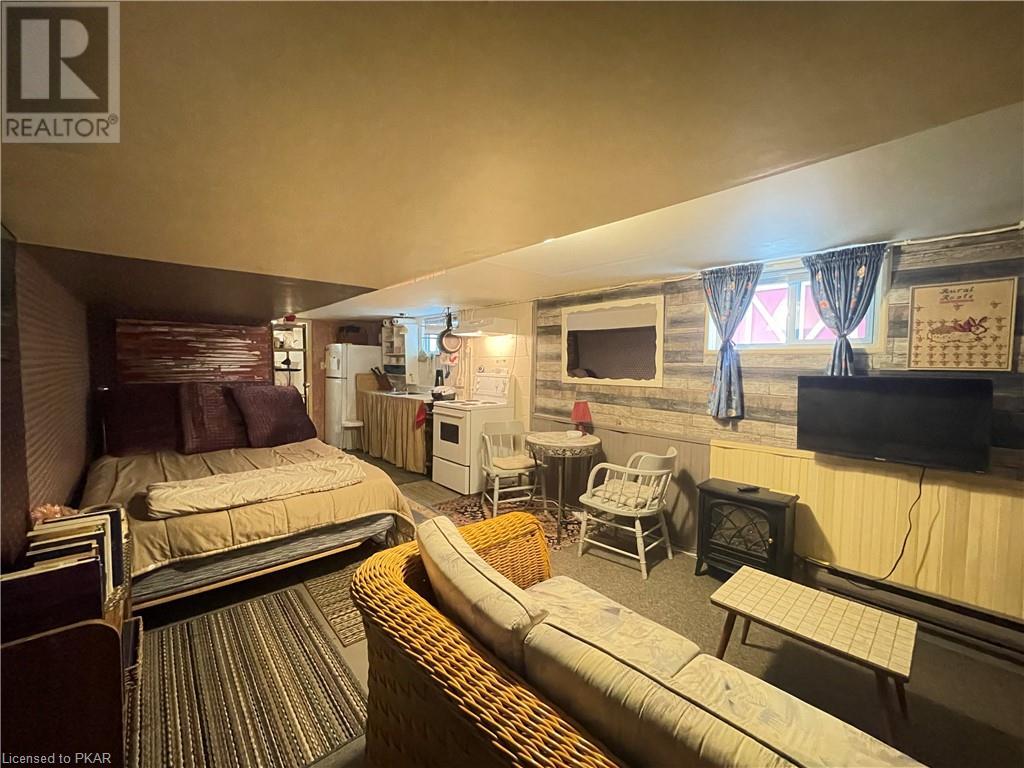 Bancroft - River front home in town within walking distance to all amenities. Main floor features the primary bedroom, bathroom, 2 living rooms and bright walkout kitchen. Enjoy the back decks that overlook beautiful perennial gardens and the York River. In the basement there’s a small studio inlaw-suite with its own entrance, kitchen and bathroom. Steel roof is new and the property has 2 driveways. Home, cottage, or potential investment? Endless possibilities await! (id:22211)