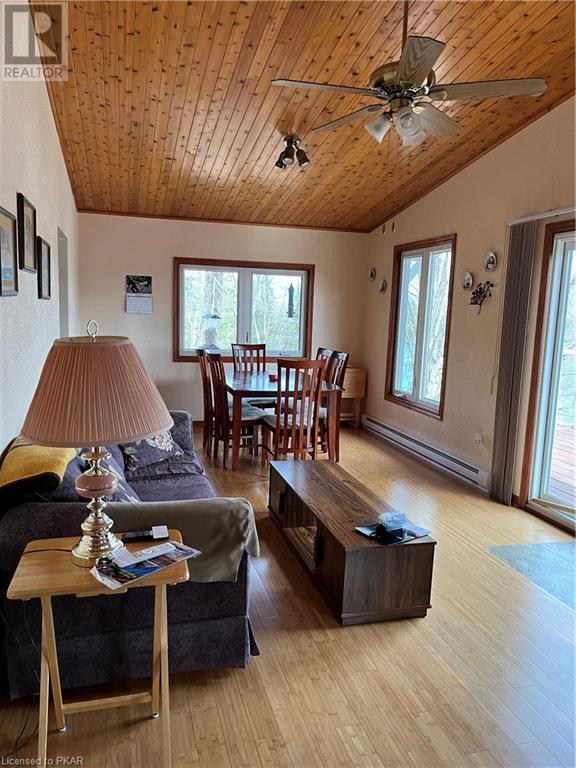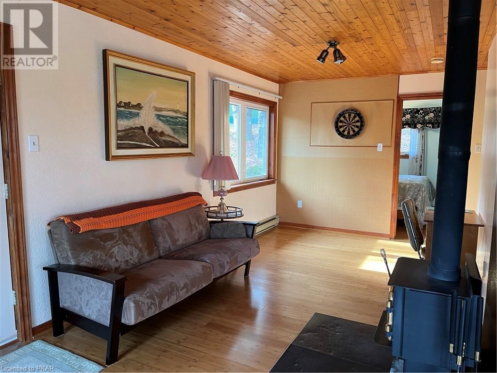 Welcome to 1105 Sandy's Lane. This 3 bedroom, 1 bath four season cottage on Paudash Lake is your playground to endless yearly memories. Just 20 minutes to Bancroft and shopping, this Kawartha-Highland getaway has over 100 feet of natural waterfront on Joe Bay. Special features and upgrades include a new steel roof in 2022 along with bamboo hardwood flooring and cedar tongue and groove vaulted ceiling in the great room. The property also has 2 outbuildings with bunkee potential. The custom built 20 X12 heated 4 season Cedar Gazebo with 360 degree views will take your breath away and be the focal point for family and friends. Best bass fishing is in this bay! This turnkey cottage comes completely furnished and a 19 ft. Doral runabout and trailer negotiable in your purchase. Book your showing today! (id:22211)