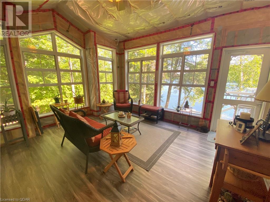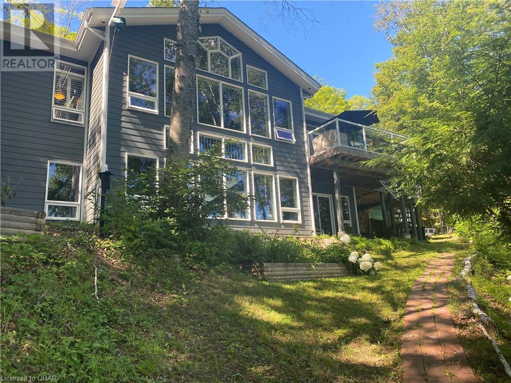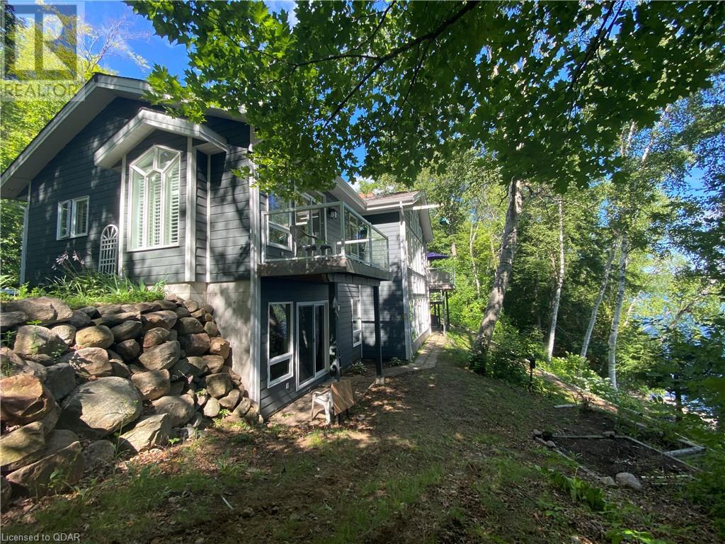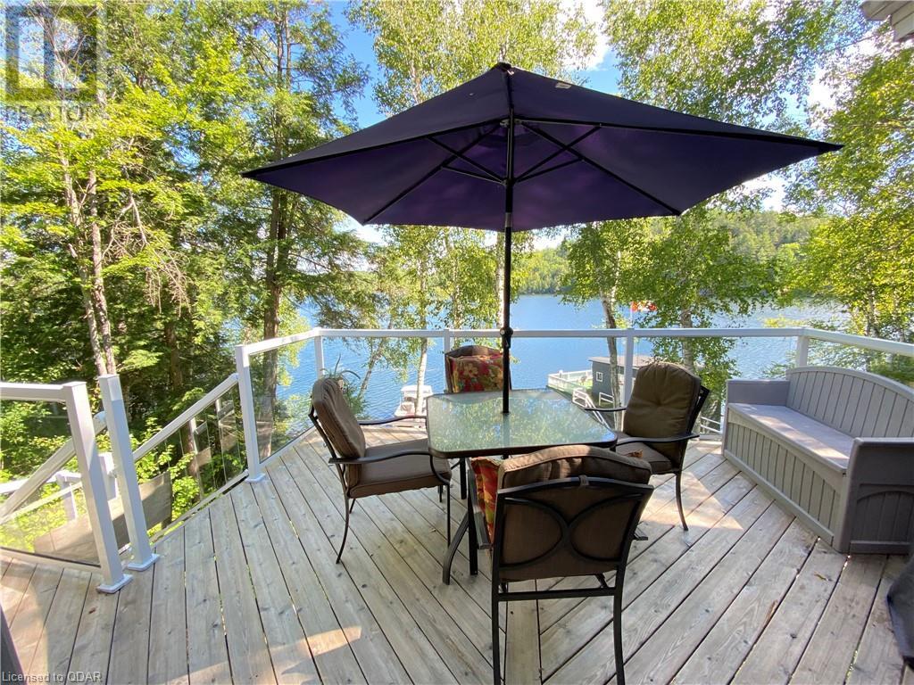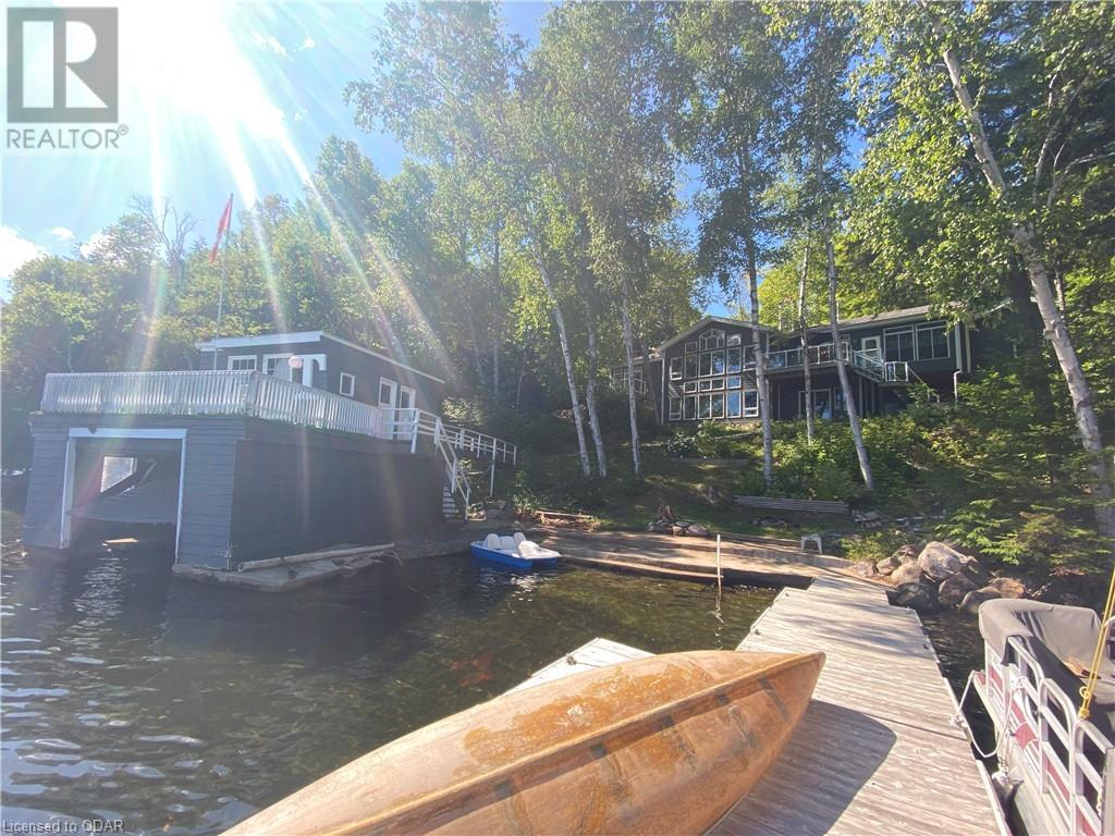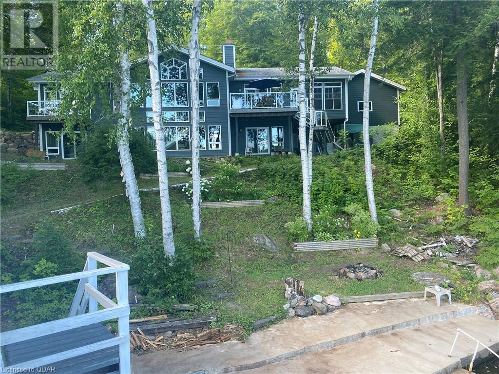 Faraday Trout Lake - Beautiful 3 bedroom Viceroy home on gorgeous lake close to Bancroft with scenic views of the lake. Main floor features vinyl plank flooring, bright living room, high ceilings, slate fireplace with 2 way insert, spacious kitchen, centre island, custom built cupboards, dining room, & patio doors leading to upper deck. Main floor laundry beside kitchen with access to attached 21 x 23' garage. Very large 3 season sun room overlooking the lake. Walkout basement is partially finished just waiting for your personal touch. It has a wood stove, is roughed in for 4th bathroom, has cold room, radiant in floor heating, & tons of storage. Geothermal heat is very economical. Waterfront has ample docking for all the toys, good swimming and a 2 story boathouse at waters edge ( needs substantial repairs) Timber frame carport for extra storage (id:22211)