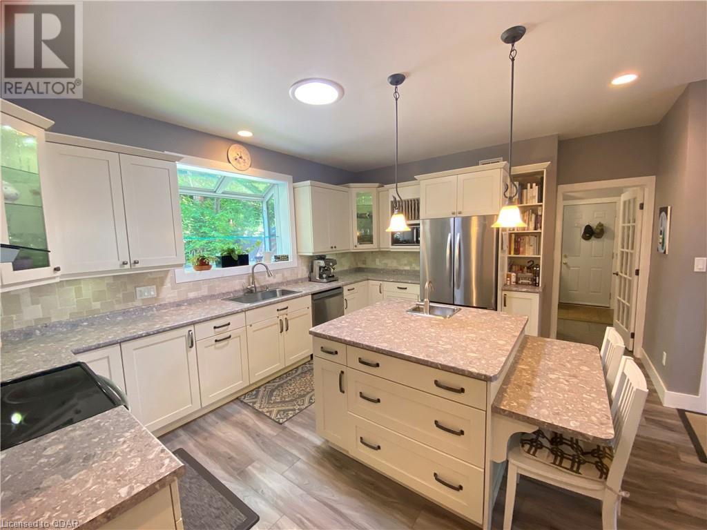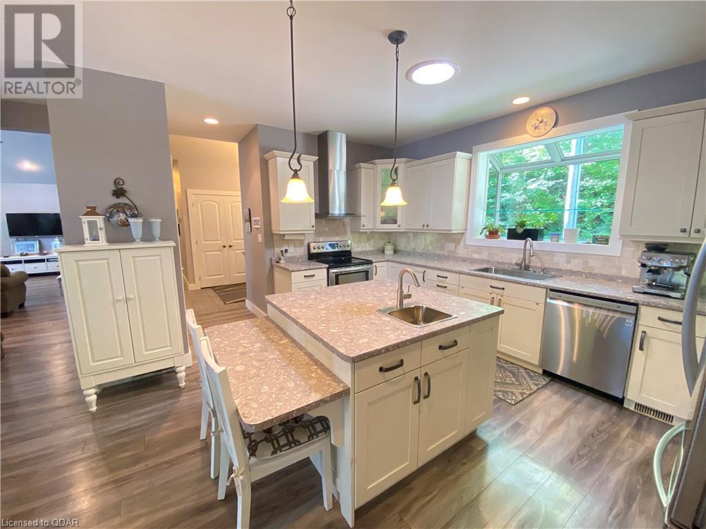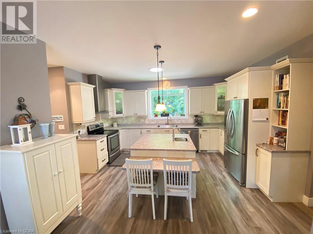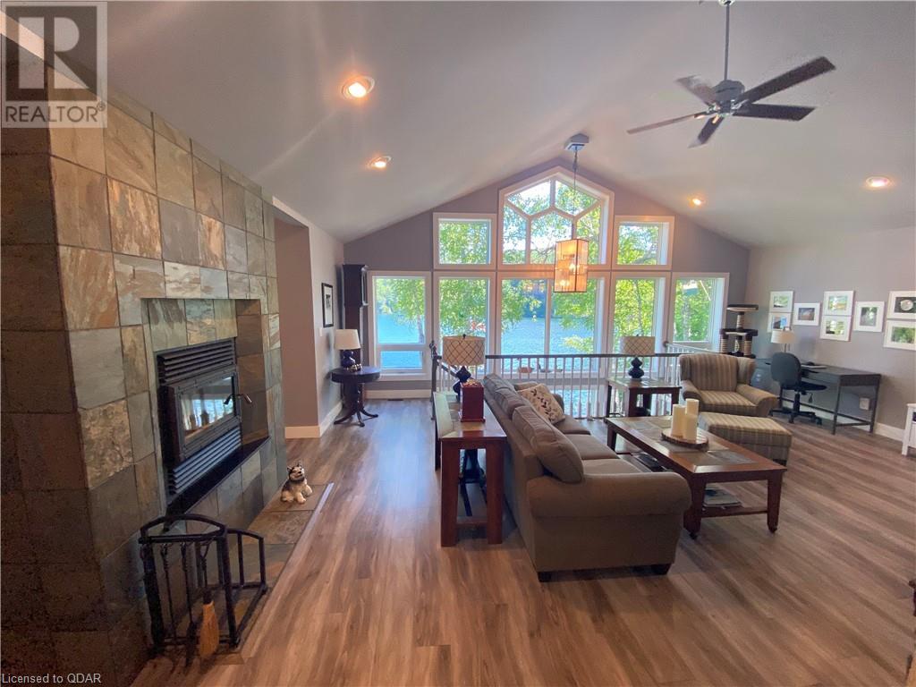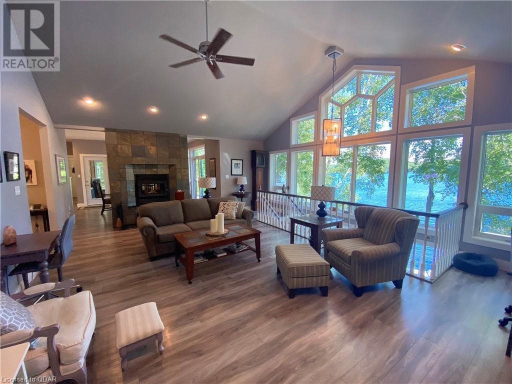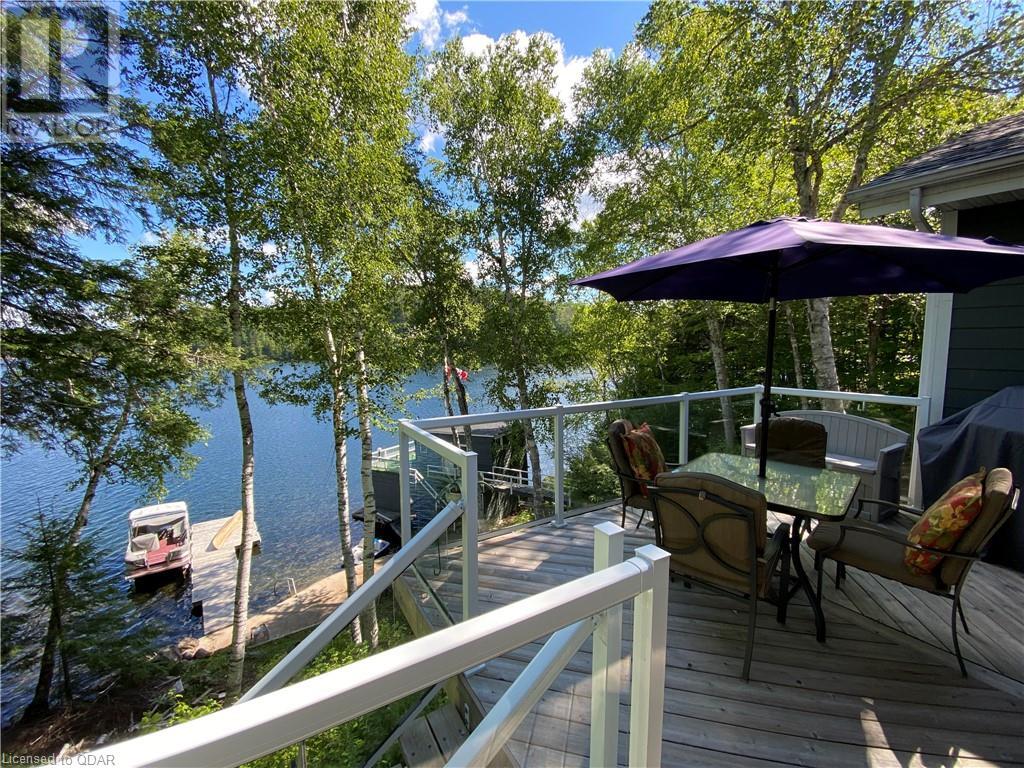 Faraday Trout Lake - Beautiful 3 bedroom Viceroy home on gorgeous lake close to Bancroft with scenic views of the lake. Main floor features vinyl plank flooring, bright living room, high ceilings, slate fireplace with 2 way insert, spacious kitchen, centre island, custom built cupboards, dining room, & patio doors leading to upper deck. Main floor laundry beside kitchen with access to attached 21 x 23' garage. Very large 3 season sun room overlooking the lake. Walkout basement is partially finished just waiting for your personal touch. It has a wood stove, is roughed in for 4th bathroom, has cold room, radiant in floor heating, & tons of storage. Geothermal heat is very economical. Waterfront has ample docking for all the toys, good swimming and a 2 story boathouse at waters edge ( needs substantial repairs) Timber frame carport for extra storage (id:22211)