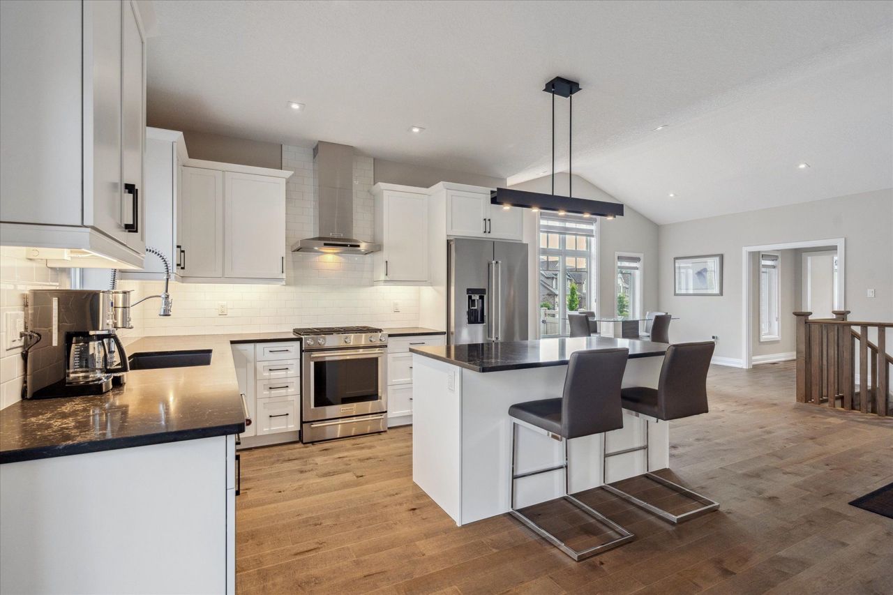 Check out this absolutely stunning bungalow with well over $100K in upgrades and high quality finishes. In the desirable Ardagh Bluffs, this Devonleigh home features a 1+2 bedroom design with an open concept main floor that has hardwood throughout, 9ft ceilings, crown moulding, loads of natural light, fully upgraded kitchen including Caesarstone Quartz, S/S appliances, and upgraded Cabinetry, great sized living room, dining room with vaulted ceilings, primary bed with walk in closet and full 4 piece ensuite with heated floors, main floor laundry and powder room. Downstairs offer a large rec room, 2 more bedrooms, another full bath, and storage room. Enjoy your beautiful wrap around front porch and fully fenced private backyard which includes a large stone patio! Upgrades: insulated garage, 200amp panel, central vac, fiberglass door, tankless HW heater, BBQ gas line, stove gas roughed in, 2 tn A/C, Maple Railings, and pot lights throughout, just to name a few! It really is a must see!
