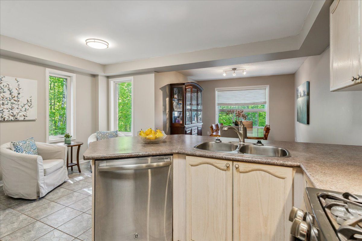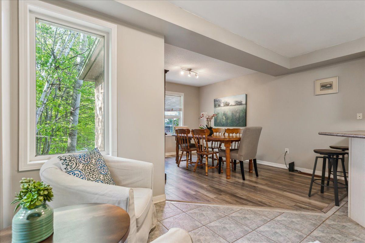 Welcome to this beautiful end unit Townhome, located in the desirable South End Barrie, backing onto trees. Home offers a wonderful main floor layout with a spacious dining/family room, & sitting nook, kitchen has S/S appliances, gas stove, double sinks, loads of cabinets, extended counter w/seating. Wonderful main floor, laminate flrs, bright living room, 2-pc powder room, main flr laundry & inside entry to the garage. The 2nd floor has a nice size primary bedroom with 3-pc ensuite & large walk-in closet, 2 additional bedrooms, full 4-pc bath with soaker tub & handy linen closet. Separate entry from walk-out basement, ready for your finishing touches, it could accommodate in-law. Extras include gutter screens on eaves, newer garage door & garden shed. Amazing, convenient location Minutes to Hwy 400, close to schools, public transportation, shopping, amenities, & a short distance to Barrie’s waterfront. You don't want to miss your opportunity to be part of this wonderful neighborhood.