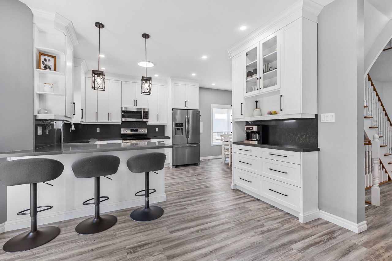 Beautifully renovated 3 bed 2.5 bath home located in popular Ardagh Bluff's neighbourhood. This home features a covered porch which leads into spacious foyer, inside entry to double garage, main floor laundry, a cozy family room with fireplace, and a bright living room. The fully renovated eat-in kitchen has been opened up into the dining room and is a show stopper with quartz counters, stainless steel appliances and a walkout to an interlock patio(2019) and fenced yard with a garden shed. Second level includes 3 spacious bedrooms, primary featuring two walk-in closets and 5pc spa-like ensuite with heated floors, soaker tub, double sinks, separate glass shower and vanity. Basement awaits your design and includes cold room storage. Kitchen and dining room renovated (2022), bathrooms (2017), shingles (2018), garage doors(2020), A/C(2021). Don't miss out on this must see home.
