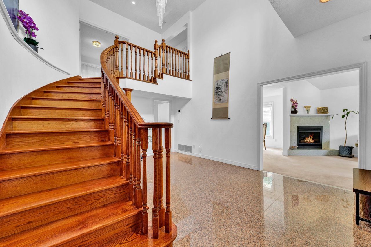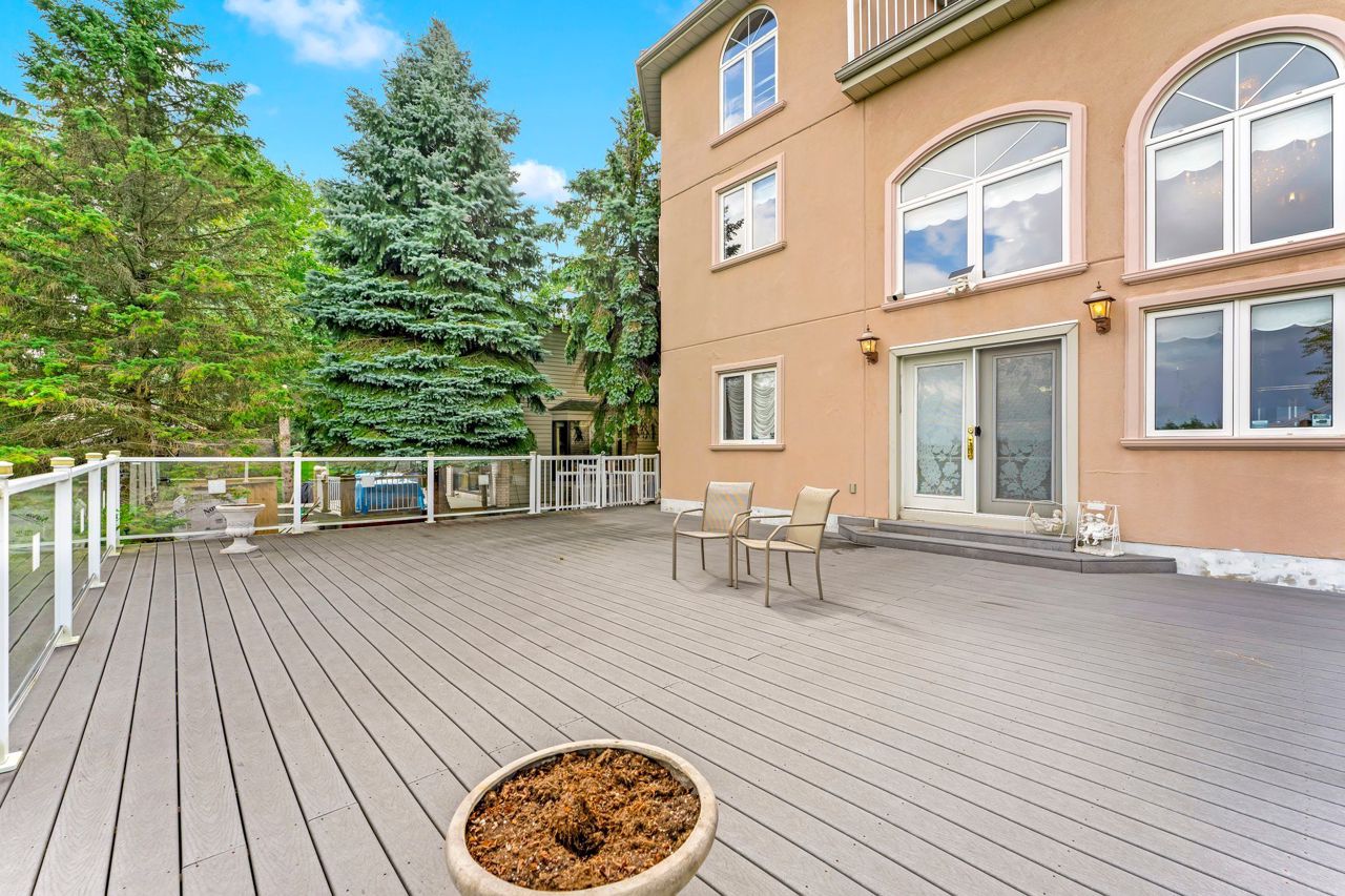Welcome to this unique and exquisite 6 bedrooms property with durable metal roof, spanning 4000+ sq ft of luxury and comfort interior living space. Imagine two houses in one large house, and two lots in one large lot. 4 of the 6 bedrooms have their own ensuite bathrooms. Two circular staircases with overhanging chandeliers, one in the front, and the other one in the back. Walking out from the sun-filled basement, you will stand on an extra large sundeck, overlooking a deep and large backyard, with a clear view to the lake. Direct access to the double garage from house. With 3 large bedrooms on the 2nd floor, and a separate 3-bedroom suite in the above ground basement, this spacious house is a perfect residence for multiple-generation families.Fridge (one in main floor, and one in basement), stove, washer, dryer and microwave. All existing drapery and electic fixtures.