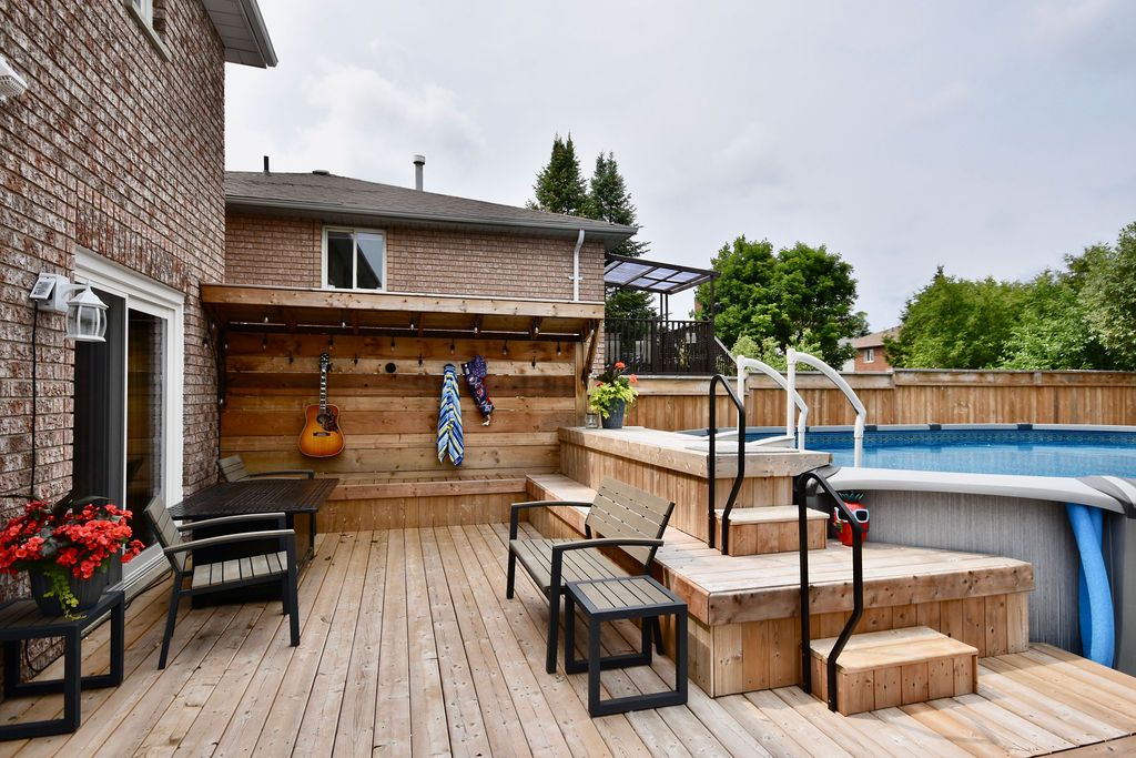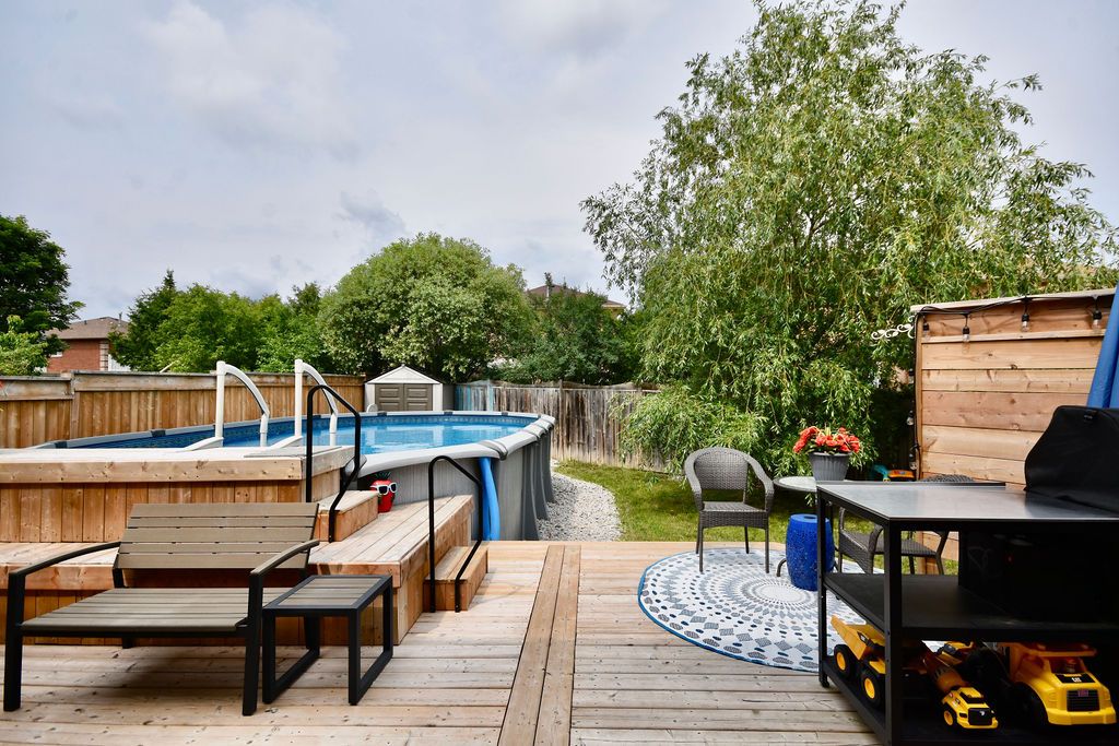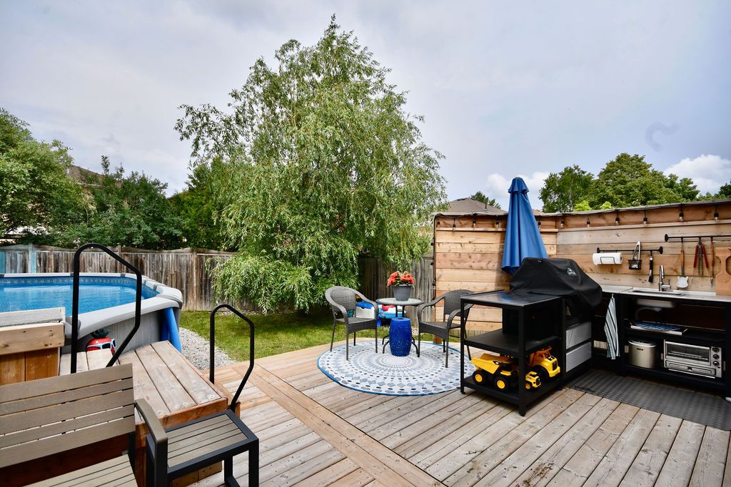 Move right in! Gorgeous 4 Bedroom with Entertainers backyard. 15x26 A/G Salt Water Heated Pool (pioneer built and serviced) 2021. 28X26 Deck with B/I Seating. Outside Kitchen Set Up. 2 Privacy Fences. Shed & Stone W/W at rear and side of house. Front 2 Tier Decking. Long Front Yard (resodded 2022) Long Driveway 4 Cars (possibly 5-6) no s/walk. Spacious Foyer with Ent to Garage. Separate Formal LR & DR Areas. Rear Open Family Room with wood fpl, Breakfast Area & Modern Kitchen with Dual Oven Gas Stove, O/S Fridge lots of counter & cupboard Space and greenhouse window (21). 2 Sliding doors new (21). Main Floor 2pc. Large Master with Sitting Area, W/I Closet & Updated 4pc Ensuite. Hdwd T/Out Main & 2nd Floor. 2nd Floor Laundry & Skylight. New Brdlm on Stairs & 4th Bdrm. Bsmt 4th Bdrm, 2pc with Closet (could be shower). Rec Room/Wet Bar New 2016 with Dry core & Vinyl Plank Flooring, Pot Lights & 4' Napoleon Linear Gas Fpl. Furnace (15), Humidifier (21). 3 Front Windows 2nd Floor & LR (16)Great North End location. Head North to Skiing, trails close by, close to schools, parks, Hwy 400, Georgian Mall, transit & other conveniences. Almost 2400 Sq Ft of Living Space.