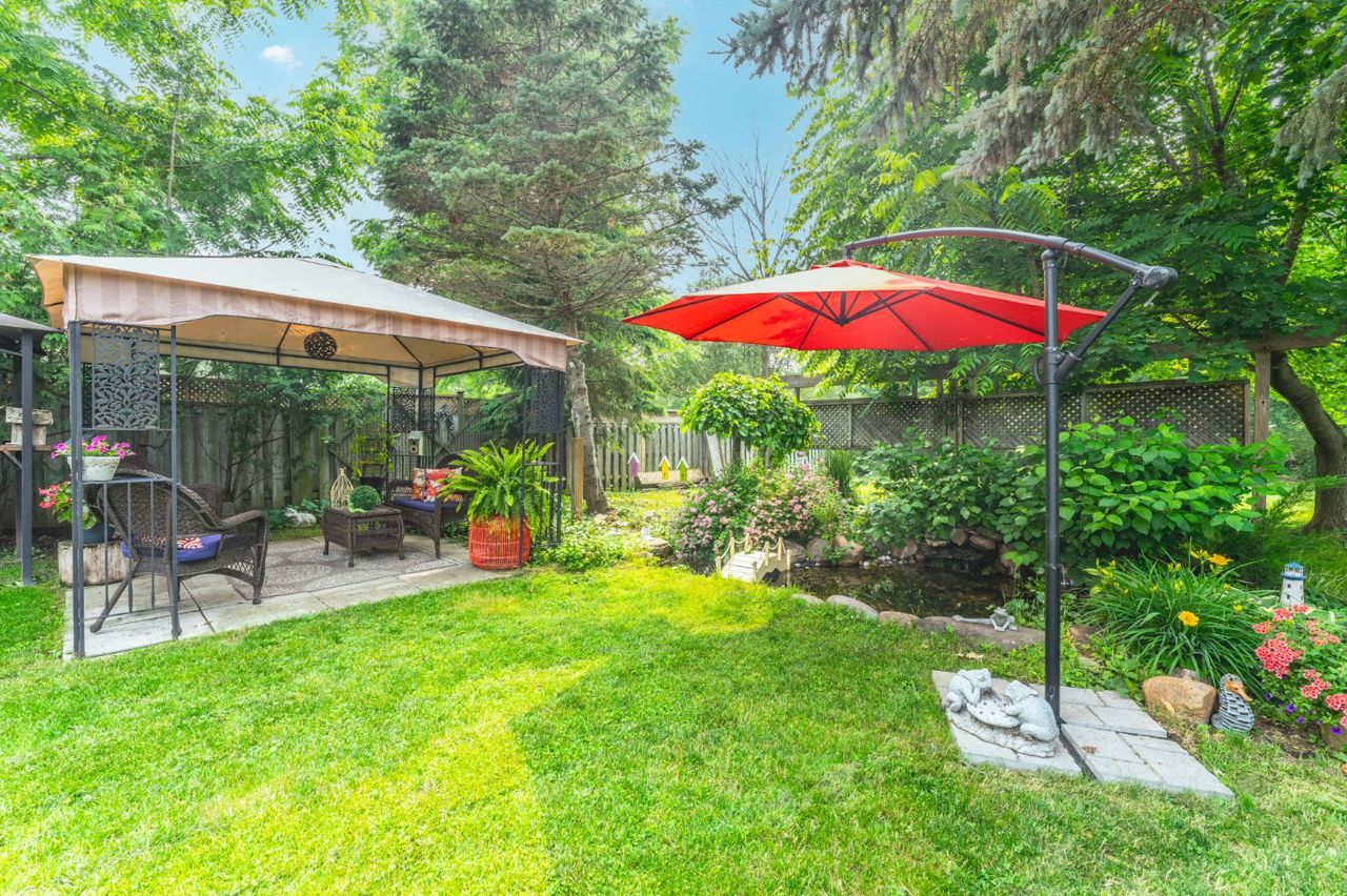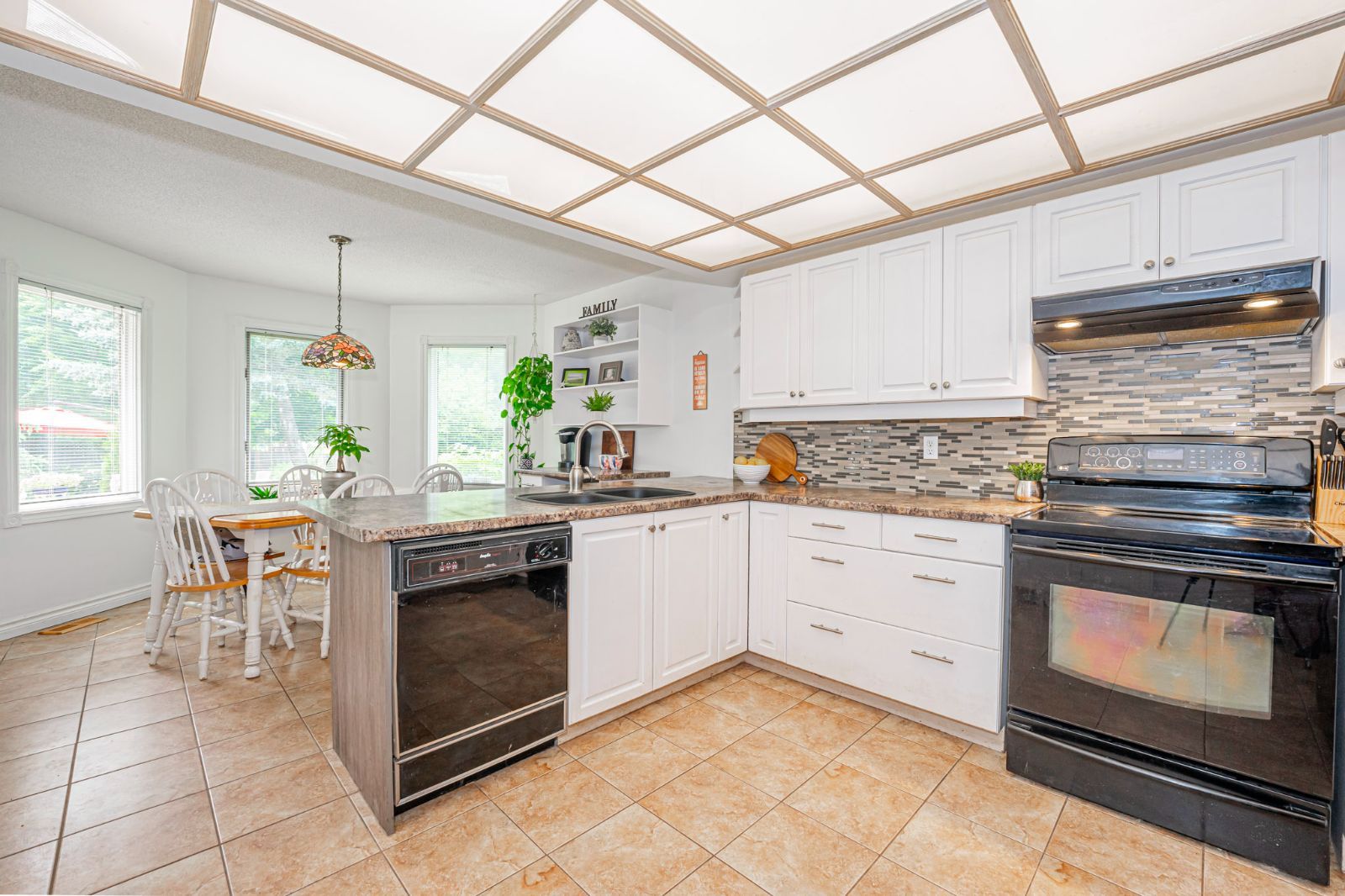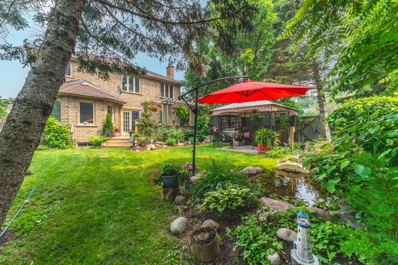 BEAUTIFULLY DESIGNED HOME IN NORTH EAST BARRIE WITH A THOUGHTFUL LAYOUT & CONVENIENT AMENITIES! Step into this stunning home through the double-door entry. The bright living room with French doors welcomes you, while the adjacent dining room creates a seamless flow for entertaining. The spacious eat-in kitchen is a haven for chefs, with abundant storage & natural light. Unwind in the cozy family room with laminate floors & a stone fireplace. The main floor offers a versatile bedroom & convenient laundry room w/ garage & outdoor access. Upstairs, the primary bedroom features a w/i closet & a luxurious ensuite. Three additional bedrooms & a shared bathroom provide comfort. The landscaped pool-sized 50'x242' lot offers an expansive deck, patio area & calming pond. Practical updates include new shingles in 2019 and a newly sealed driveway. Located in North East Barrie, close to amenities, schools, and the beach, this home embodies elegance, comfort, and functionality. #HomeToStay