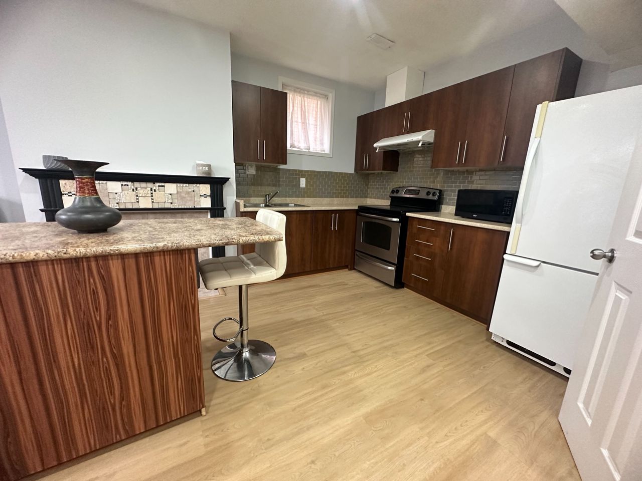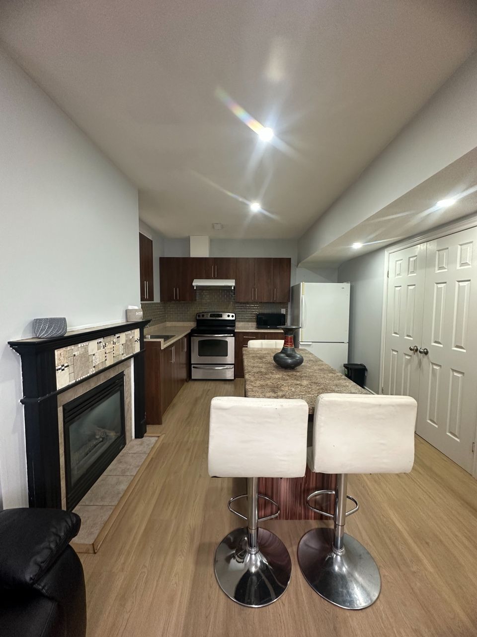 Newly professionally finished 3 bedroom basement apartment with laundry ensuite, great size kitchen with breakfast area and fireplace. Oversize windows all throughout. Plenty of storage space. 2 parking spots included in price. In demand neighborhood near amenities. Walking distance to Georgian College and Victoria Hospital.All electric light fixtures, fridge, stove, microwave, washer and dryer