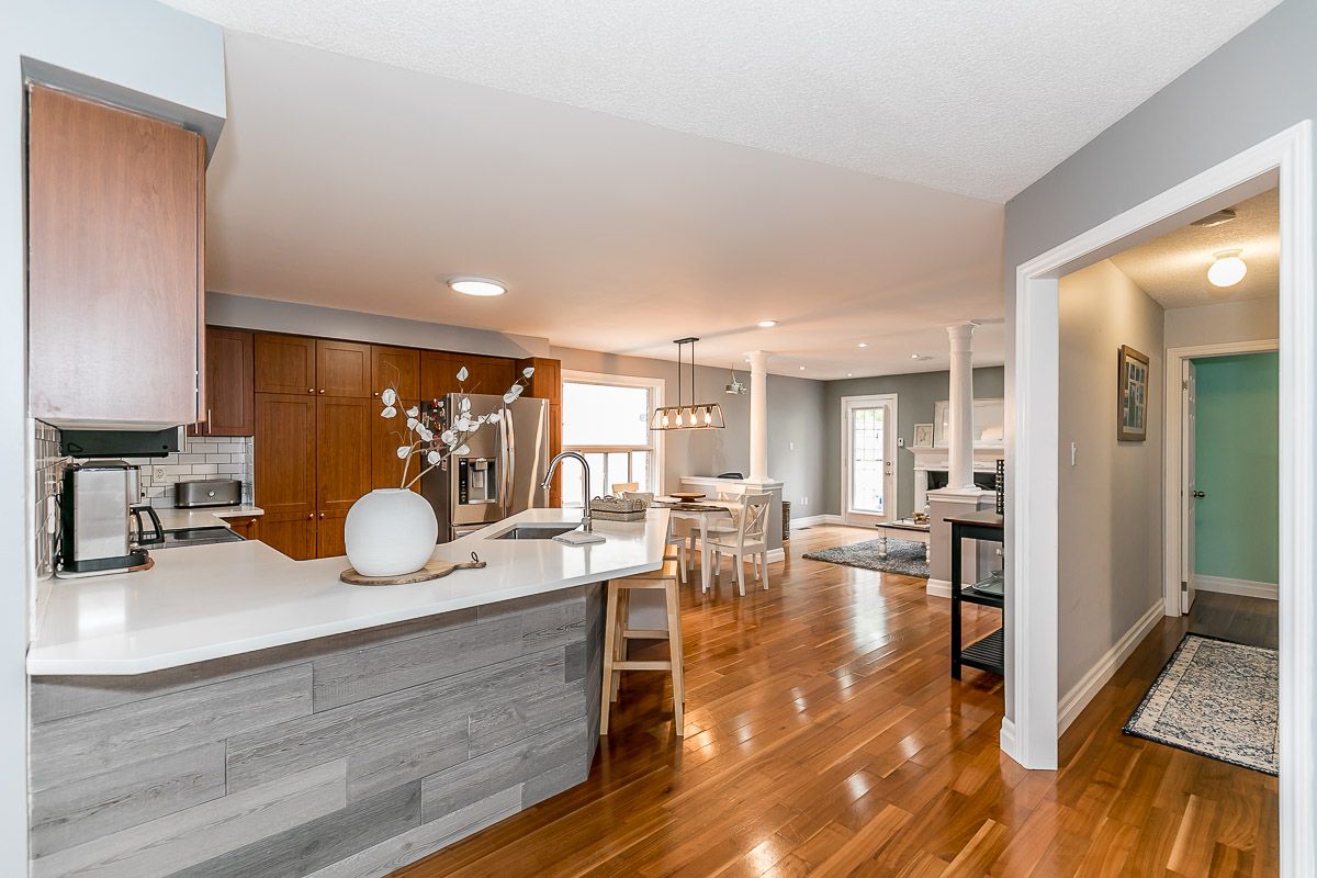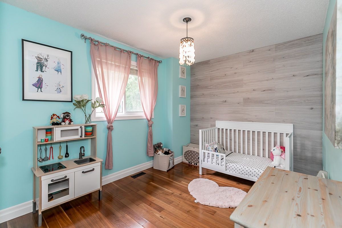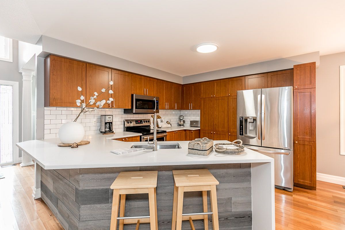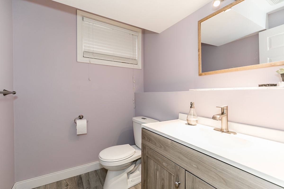This recently updated family home is nestled in a sought after Painswick South neighbourhood. Backing onto Lovers Creek, close to schools, transit, shopping & hwy 400. Large open concept kitchen & family room w/ gas f.p., french doors stepping out to private deck & fully fenced ravine lot. Kitchen boasts new quartz waterfall countertop, s.s. appliances, & dinette large enough to seat 10! Two generously sized bedrooms on the main level are serviced by a 3 pcs updated bath. The second level wows w/ master suite complete w/ a 3 pcs ensuite & walk-in closet. The finished basement offers a large rec room, 2 pcs bath, laundry room & flex space complete w/ closets which can be used for a den or 4th bedroom. Features include: hardwood floors, updated kitchen & bathrooms, lighting, gas fireplace, fully fenced ravine lot, glass shower in ensuite, washer/dryer 2022.