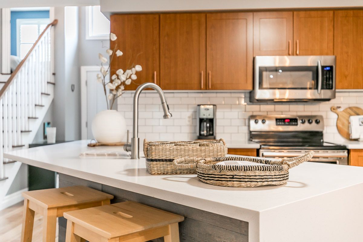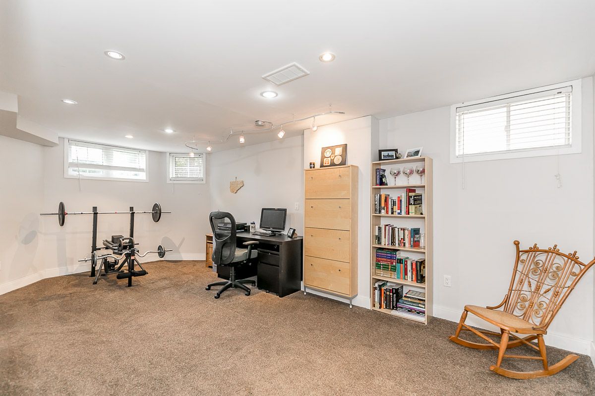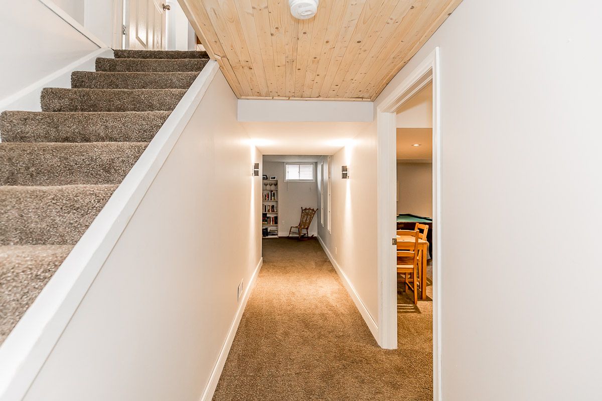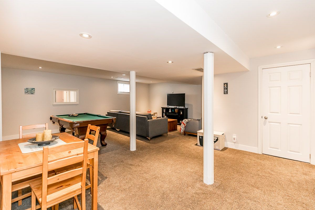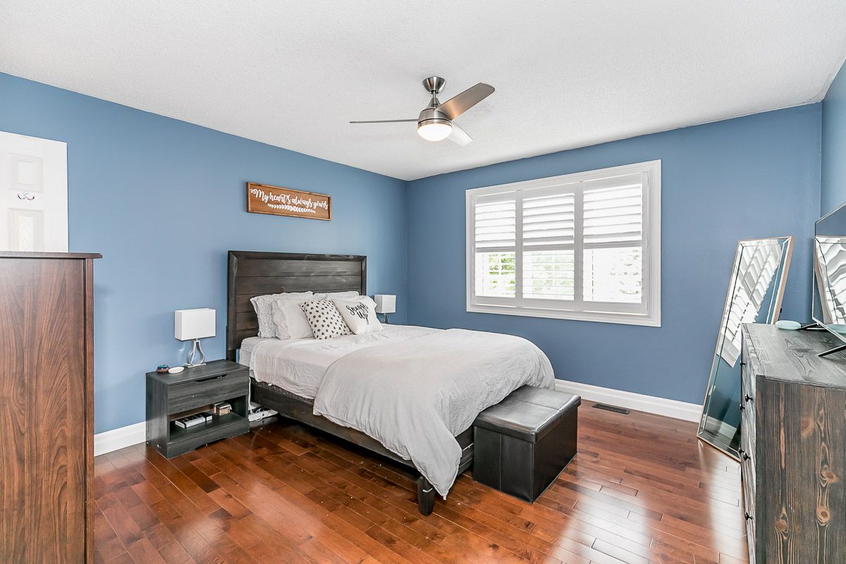 This recently updated family home is nestled in a sought after Painswick South neighbourhood. Backing onto Lovers Creek, close to schools, transit, shopping & hwy 400. Large open concept kitchen & family room w/ gas f.p., french doors stepping out to private deck & fully fenced ravine lot. Kitchen boasts new quartz waterfall countertop, s.s. appliances, & dinette large enough to seat 10! Two generously sized bedrooms on the main level are serviced by a 3 pcs updated bath. The second level wows w/ master suite complete w/ a 3 pcs ensuite & walk-in closet. The finished basement offers a large rec room, 2 pcs bath, laundry room & flex space complete w/ closets which can be used for a den or 4th bedroom. Features include: hardwood floors, updated kitchen & bathrooms, lighting, gas fireplace, fully fenced ravine lot, glass shower in ensuite, washer/dryer 2022.