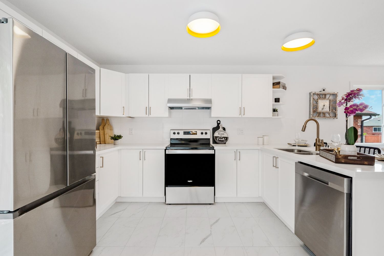 This Fully Renovated Raised Bungalow With a Finished Basement, Boasts Over 2200 sqft of Total Finished Living Space. It Is Conveniently Located In Barrie's Sought-After Southwest End. Prime Location 5-10 Min Away From Barrie's Largest Retail Hub, Parks, Beaches, Numerous Hiking Trails, And Shopping Centers. Situated At Mapleview Dr. West & Essa Rd, The Property Offers Easy Access To Hwy 400, Leading Directly To Toronto, As Well As Schools, Library, Community Center, & Costco. In Addition To Popular Attractions Like Wasaga Beach, Blue Mountain Resort, And Dozens Of Golf Clubs. This Spacious Bungalow Features 3+2 Bedrooms & 2+1 Bathrooms With A Fully Finished Basement Perfect For Use As An In-Law Suite Or For Large Families. Not To Mention A Large Fenced-In Backyard And 2 Car Garage, This Is Truly A Rare Gem In South BarrieNew S/S electric stove, hood vent, fridge&dishwasher; front load washer&dryer. New S/S Fridge, Stove&Hoodfan in Basement. New light fixtures & plumbing fixtures throughout the home. New Luxury Vinyl Plank Flooring Throughout.