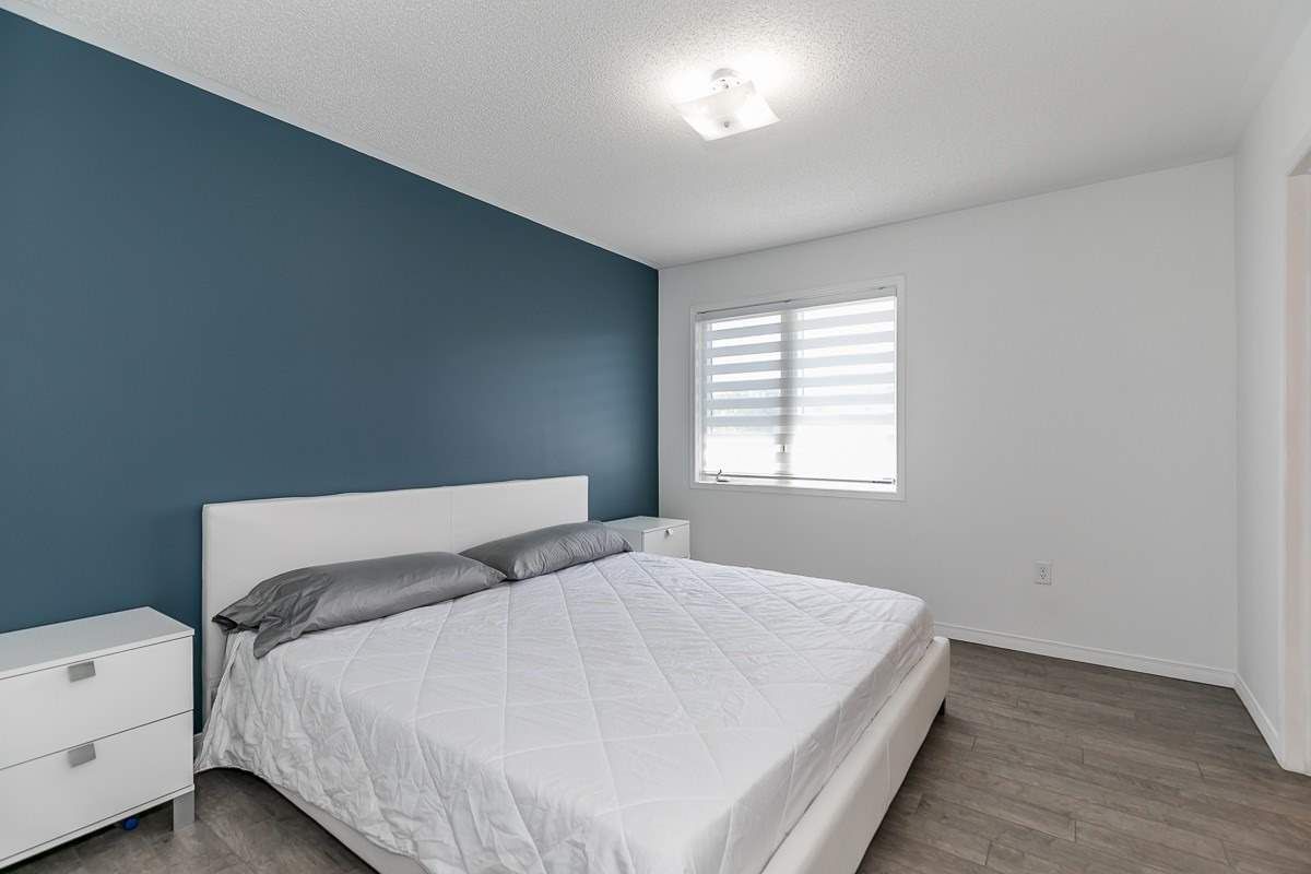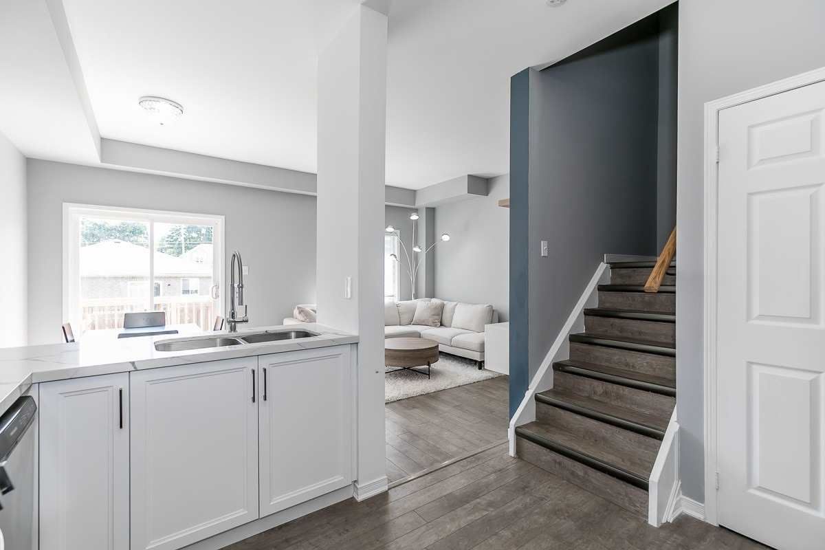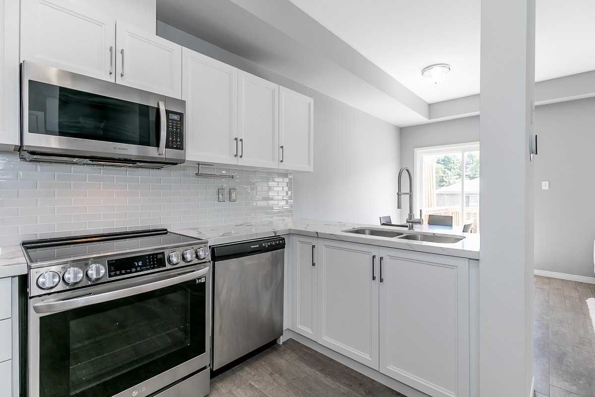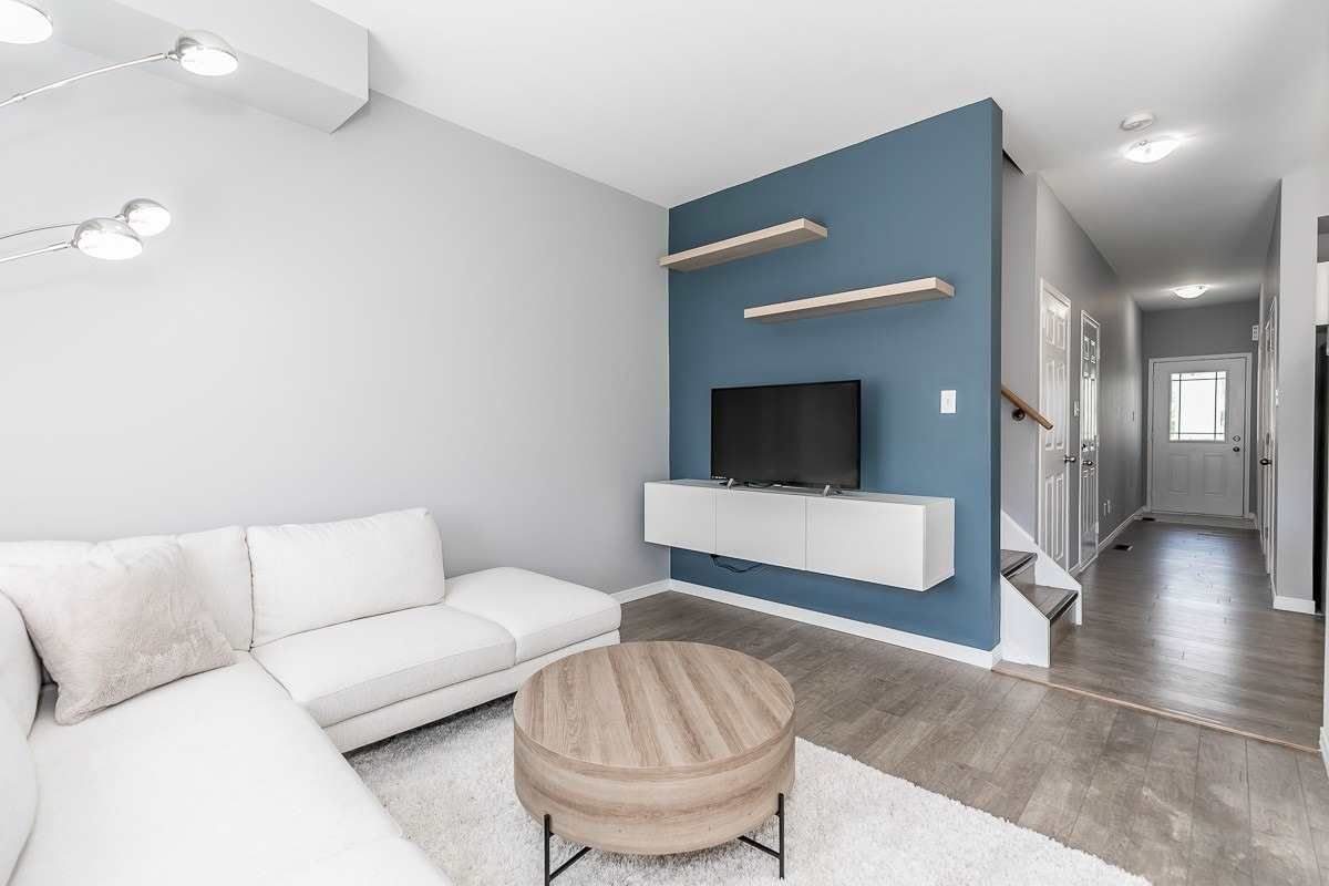Looking For A Great Place To Call Home? This Beautiful And Clean 3 Bedroom Home Will Be Easy For You To Move Right Into! Freshly Painted Throughout, Updated Laminate Floors, Modern New Kitchen And S.S. Appliances. Convenient Entry From Garage Into Home, Bright Front Den Can Be A Perfect Office If Working From Home. Spacious Powder Room On Main Floor, 2 More Washrooms Upstairs, Large Master Bdrm Fits King Bed With Side Tables, Large Closet Space, Fully Fenced Yard, Walking Distance To Mall And Other Shopping Stores, R.V Hospital And Highway 400.All Window Coverings, Appliances + Fridge in Garage, Washer/Dryer In Basement, Floating Tv Stand, Shelves In Fam. Rm, All ELF's