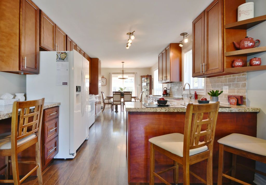 STEP IN TO TRADITIONAL COMFORT IN THIS CLASSIC ALL BRICK RAISED BUNGALOW. This welcoming Home offers lovely Curb Appeal, the Care and Maintenance is evident as you walk through the front door. Features include, Quality laminate Flooring throughout, Main Floor provides Three generous Bedrooms with 2 Full Baths, Newer Kitchen with great storage and Granite Counters, Patio Walk-Out to private yard with Above Ground Saltwater Pool, Gazebo and landscaped yard....a true Oasis! Fully Finished Lower Level features, additional Bright, Spacious, Bedroom, Full Bath and Huge Rec Room with Wet Bar, perfect In-Law Potential. Situated in a quiet West Barrie neighbourhood with close proximity to Borden, Alliston and Hwy 400. Shows 10+, super Clean. Flexible closing available. Put this one on your list to view as your #ForeverHome.