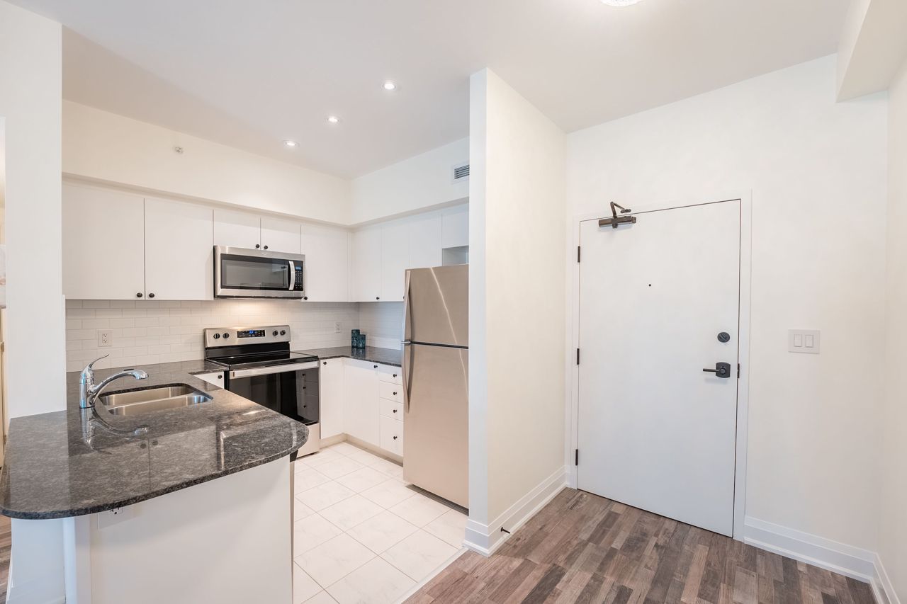 Located in highly sought-after southwest Barrie, you'll feel at home in this gorgeous 1-bedroom condo that offers 793 sq. ft. of open and sunny living space. Enjoy the luxury of TWO parking spaces - one underground with attached storage locker, the other surface level. This remarkable suite has been extensively upgraded to accommodate every desirable detail: 9' smooth ceilings, premium laminate flooring (no carpeting), granite countertops, soft-close cabinet hinges, pot lights, dazzling light fixtures, Decora switches/outlets, superior trim/baseboards/doors, fridge water line hook-up, and added bathroom storage. You will love preparing meals in the superb kitchen amongst sparkling stainless-steel appliances, including an OVR microwave. Entertain on your private balcony w/gas BBQ hook-up. Appreciate your in-suite, full-size laundry. Mins to Hwy 400, transit, shopping centres, parks, restaurants and entertainment. Don’t miss this rare opportunity to experience condo living at its finest!