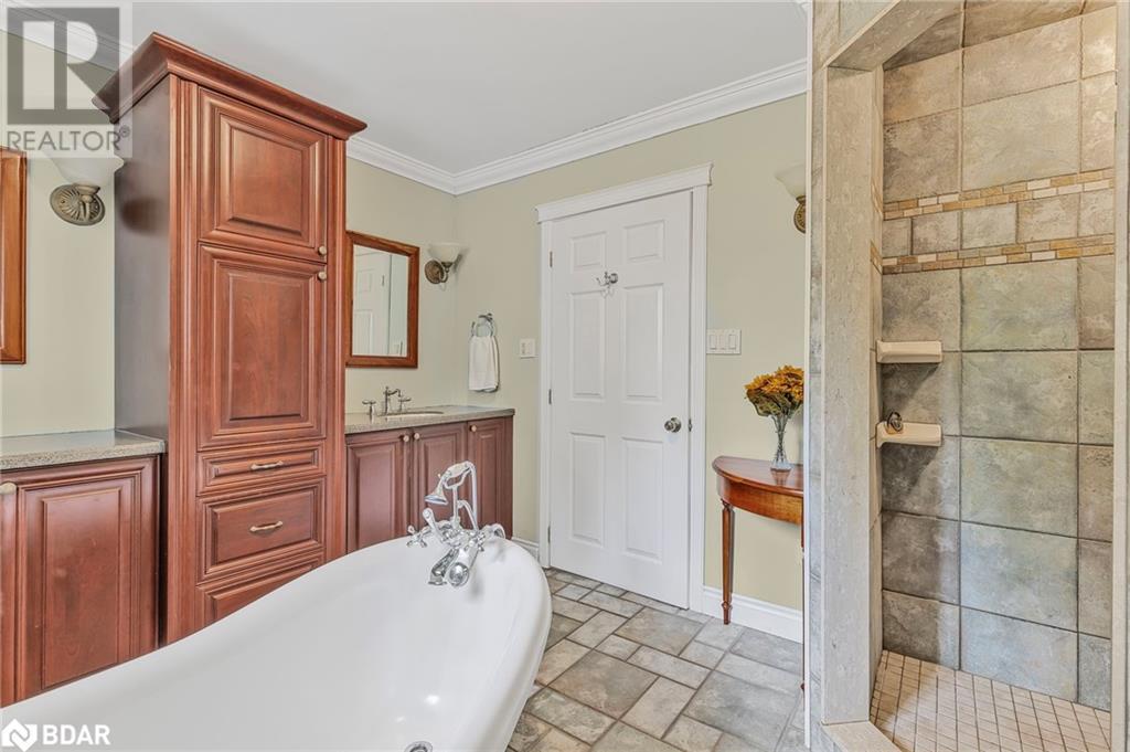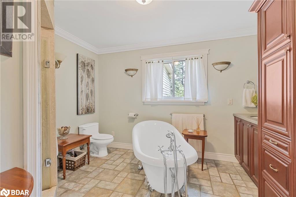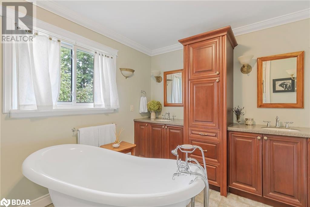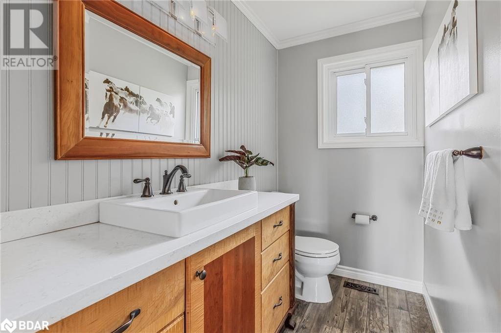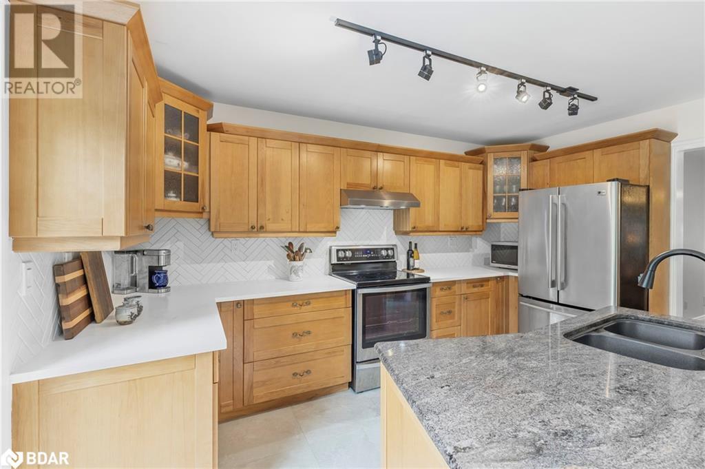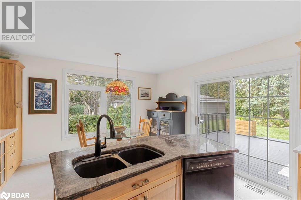 Pride Of Ownership Well Maintained Raised Bungalow, Beautiful Curb Appeal With Lush Gardens & Mature Trees Surrounding Throughout Front & Backyards For Ample Privacy. Nestled In Quiet, Family Friendly Neighbourhood Of Innis-Shore's Bayshore Estates In South East Barrie On 0.26 Acre, 75 x 150Ft Oversized Lot! Inside Boasts Upgraded Foyer With New Tile Flooring & Shiplap Accent Walls Leading To Open Concept Living Room With Hardwood Flooring Throughout & Massive Windows Overlooking Front Yard, Conveniently Combined With Dining Area, Ideal For Hosting! Spacious Kitchen With Heated Flooring, Herringbone Backsplash, Quartz Counters, Stainless Steel Appliances, Centre Island With Double Sink & Granite Countertops Overlooking Breakfast Area. Additional Counter Space Makes A Perfect Coffee Bar & Breakfast Area + Walk-Out To Backyard Oasis With Composite Deck, Gas BBQ Line, Peaceful Sounds & Views Of Mature Trees & Gardens With Tons Of Green Space For Kids To Play! Perfect For Relaxing After A Long Day, Or Hosting Family! 3 Spacious Bedrooms Each With Hardwood Flooring, Closet Space, & Large Windows. Beautifully Updated 5 Piece Bathroom Features His & Hers Sinks, Claw-Foot Soaker Tub, Walk-In Shower, & Lots Of Storage Space! Plus Additional Bonus 2 Piece Updated Bathroom For Guests To Use. Fully Finished Basement With Cozy Broadloom Flooring, Gas Fireplace, & Pot Lights. Potentially Re-Convert Back To Garage With 1 Indoor Parking Space, Or Leave As Extra Room For The Basement / Work Space! Lower Level Complete With Laundry. Prime Location Just Steps To Park, Lake Simcoe, Downtown Barrie, Park Place, Shopping, Costco, Top Schools, Restaurants, & Perfect Commuter Location Just Minutes To Yonge Street & Highway 400. Heated Floors in Kitchen '24. Composite Deck '22. All New Siding '18. Roof '11. Gutter Guards '20. Hot Water Tank Owned '22. Water Softener. Central Vac. Septic With City Sewer Connection Available. Large Driveway With Parking For All! (id:22211)