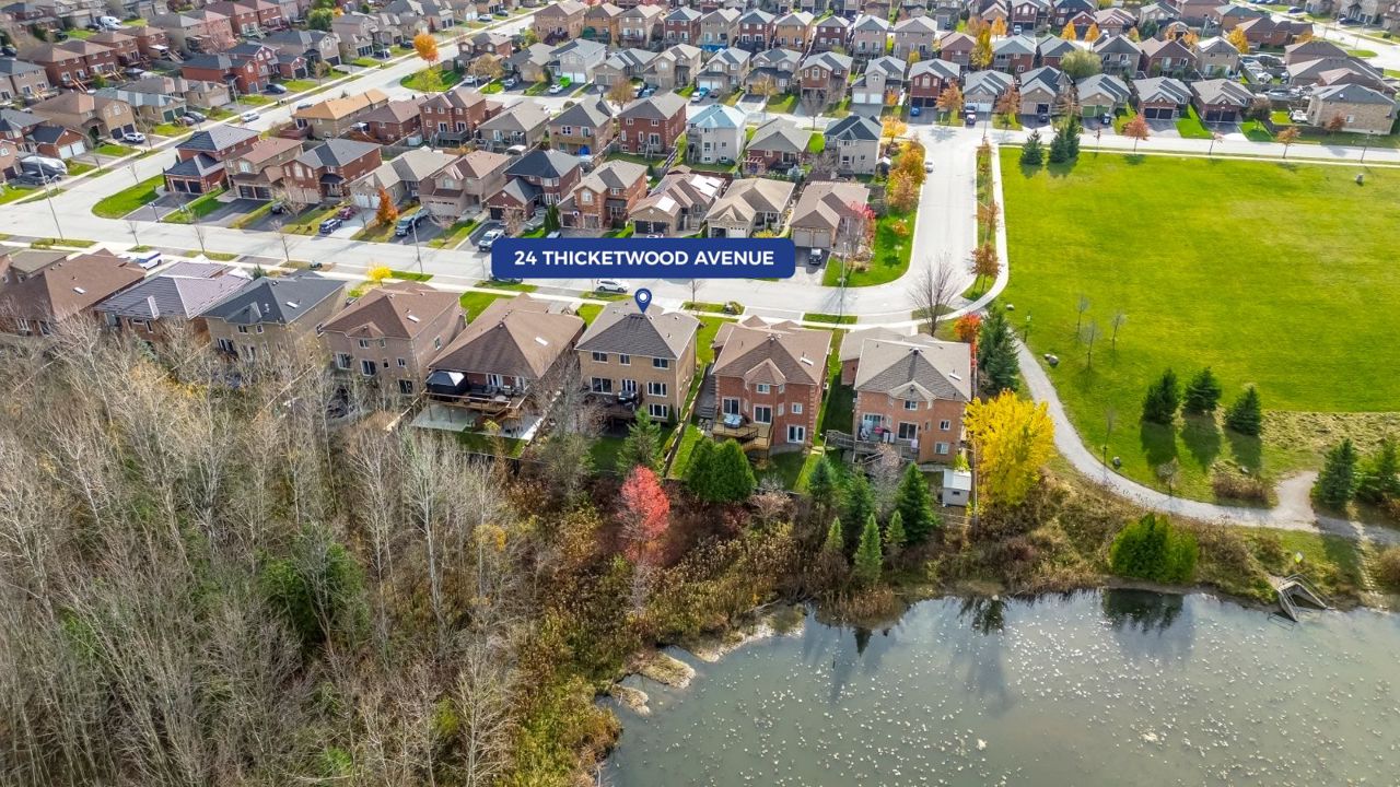 IMMACULATE GREGOR BUILT HOME WITH A PROFESSIONALLY FINISHED WALKOUT BASEMENT WITH IN-LAW POTENTIAL & BACKING ONTO EP LAND! Welcome to 24 Thicketwood Avenue. Discover your dream home on a serene, quiet street near parks and trails. Hardwood floors & 9' ceilings create an elegant, open atmosphere. The large kitchen, equipped with modern appliances & a walk-in pantry, caters to culinary enthusiasts. Step outside to a deck overlooking a peaceful pond & sprawling backyard. The upper-level office can easily be converted into a fourth bedroom. The professionally finished w/o basement (2013) extends the living space, offering in-law potential or a versatile entertainment zone with high ceilings & a functional layout. Updates include new shingles (2023), a sump pump (2020), stamped concrete patio & pathways (2022) & a deck with glass railings for unobstructed views. Two gas BBQ hookups make it an entertainer's paradise. Security is ensured with a whole-home security system. #HomeToStay