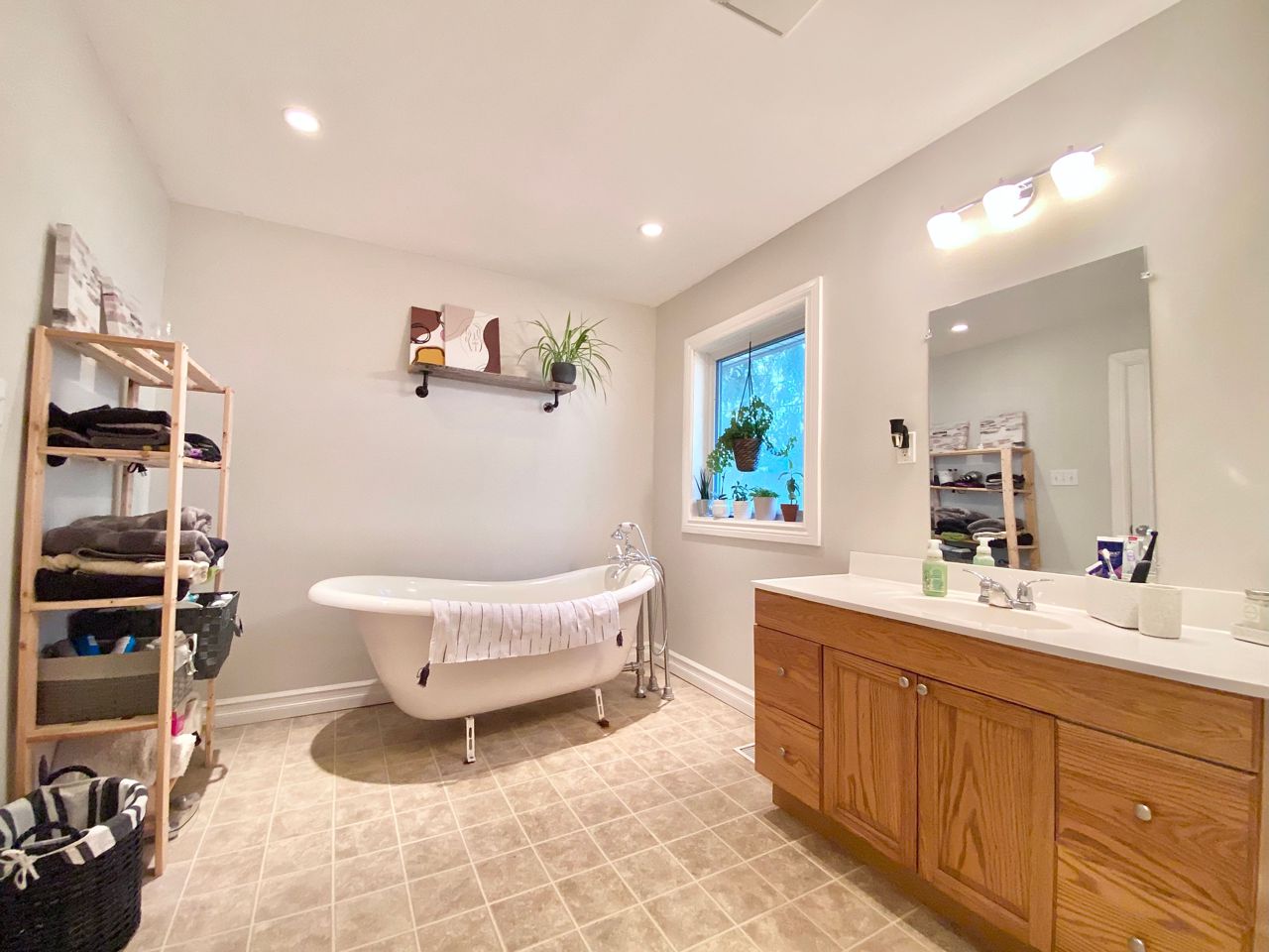 Introducing A Charming Aasis Nestled In The Back Unit Of A Bungalow. Featuring 2 Remarkably Spacious Bedrooms, 1 Full Bathroom Equipped With Soaker Tub. The Living Space Is Truly Massive, Accompanied By A Dining Area And An Expansive Open Concept Kitchen. Step Outside Onto The Endless Deck Space, Where You Can Bask In The Serenity Of The Breathtaking Views Overlooking The Expansive Backyard. With A Private Entrance And Complete Separation From The Front Unit Tenants, You'll Enjoy A Sense Of Exclusivity And Privacy. Additionally, This Property Offers A Generous Unfinished Basement, Providing Ample Space For Your Personal Use Or Storage Needs. Located In The Highly Sought-After South End Barrie! Close To Shopping Plazas, Restaurants, Schools, Public Library, Allandale Rec Centre, Hwy 400 & Barrie South Go Station, Several Parks, Downtown Barrie & Waterfront! Tenants Will Have Exclusive Use Of One Side Of The Driveway Which Can Park Up To 3 Cars.Stove, Fridge, Dishwasher, Washer & Dryer. The Utilities Are Split Between The Front Unit And Back Unit Tenants. The Tenant Is Responsible For The Back Yard Lawn Care.